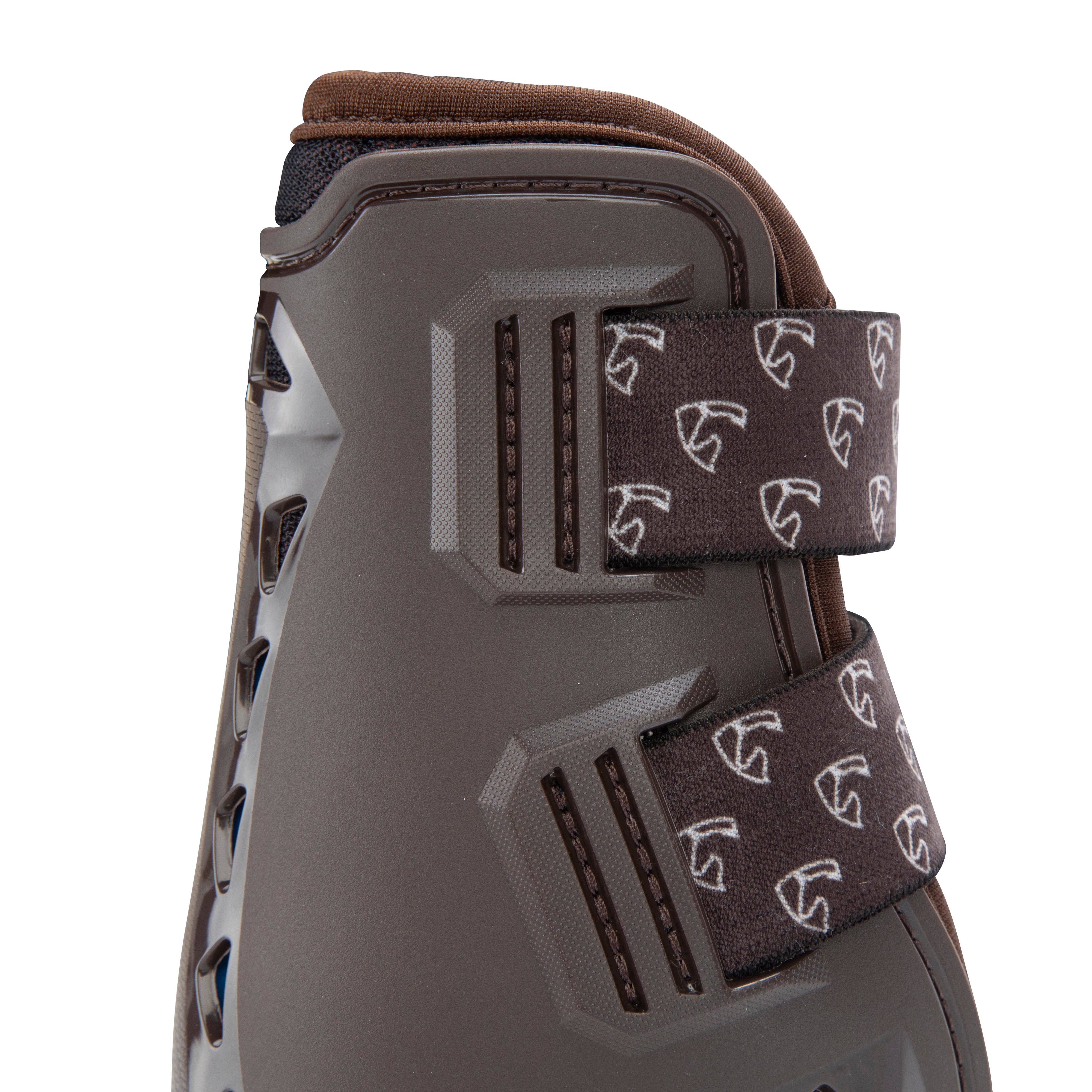 ARMA Carbon open fronted pro fetlock boots meet professional performance with a design that offers next level protection to the most vulnerable areas whilst still allowing the horse to feel their way. TRIPLE IMPACT SUPPORT SYSTEM: Strong TPU outer, resistant to abrasion and dirt. Honeycomb foam centre absorbs impacts. Breathable COOLMAX® lining is engineered to keep hardworking legs cool and dry. MAX VENTILATION: Strategically placed mesh vents increase airflow around the tendons, reducing heat build up and maximising ventilation. FLEX FIT: The ergonomically shaped TPU shell defends against impact yet the flexible structure moves with the horse to facilitate peak athleticism. Double lock touch close fastenings for a quick, secure fit.