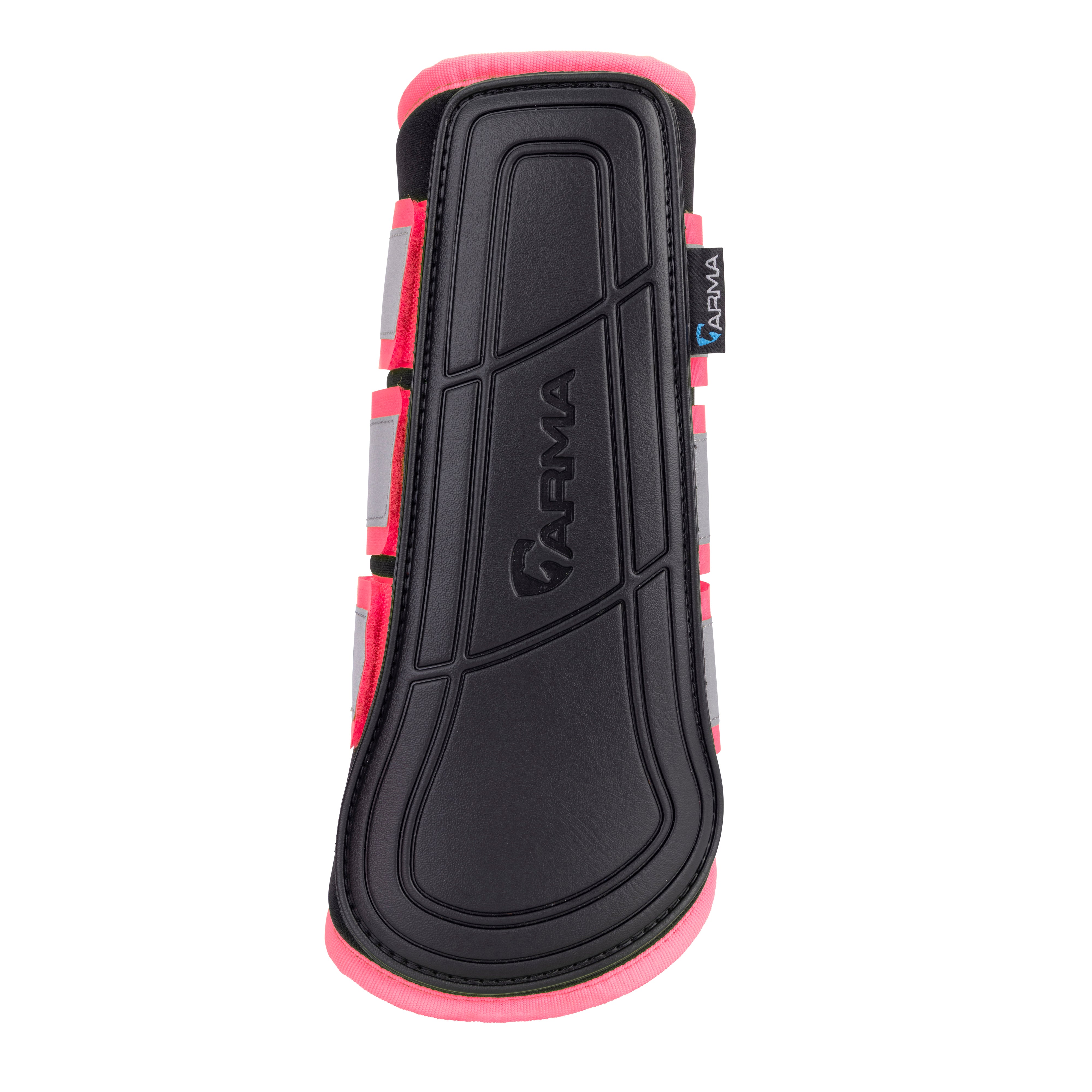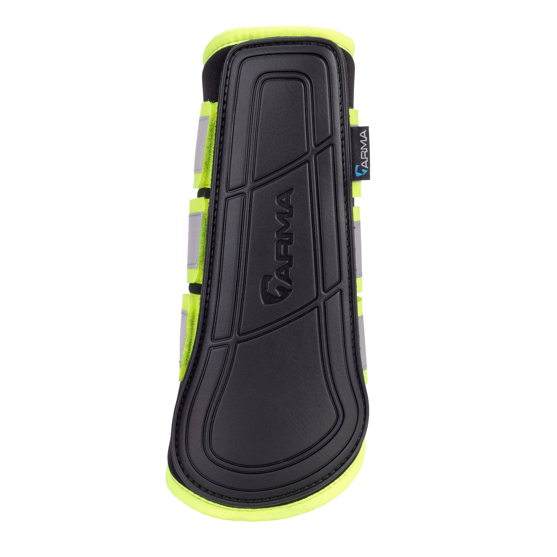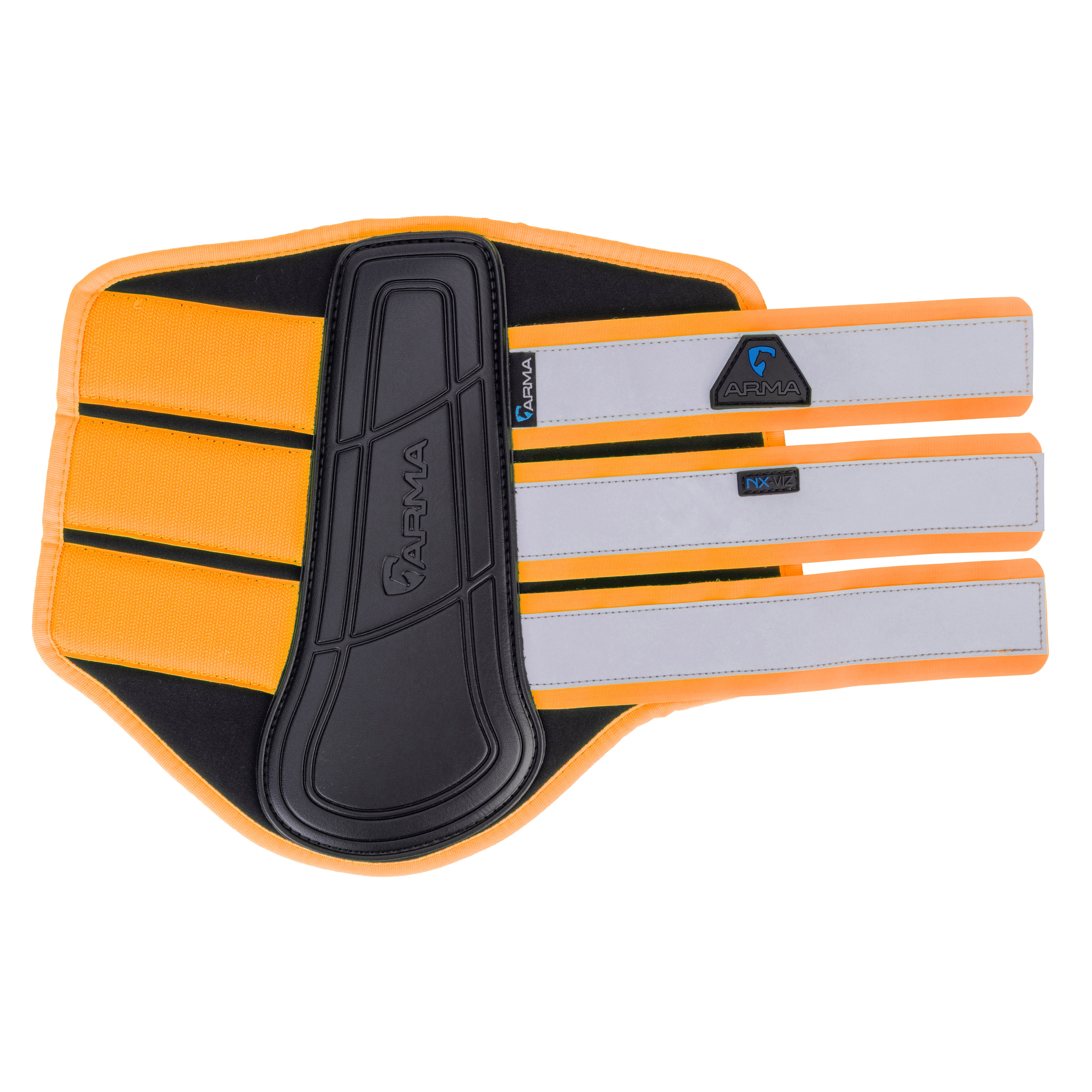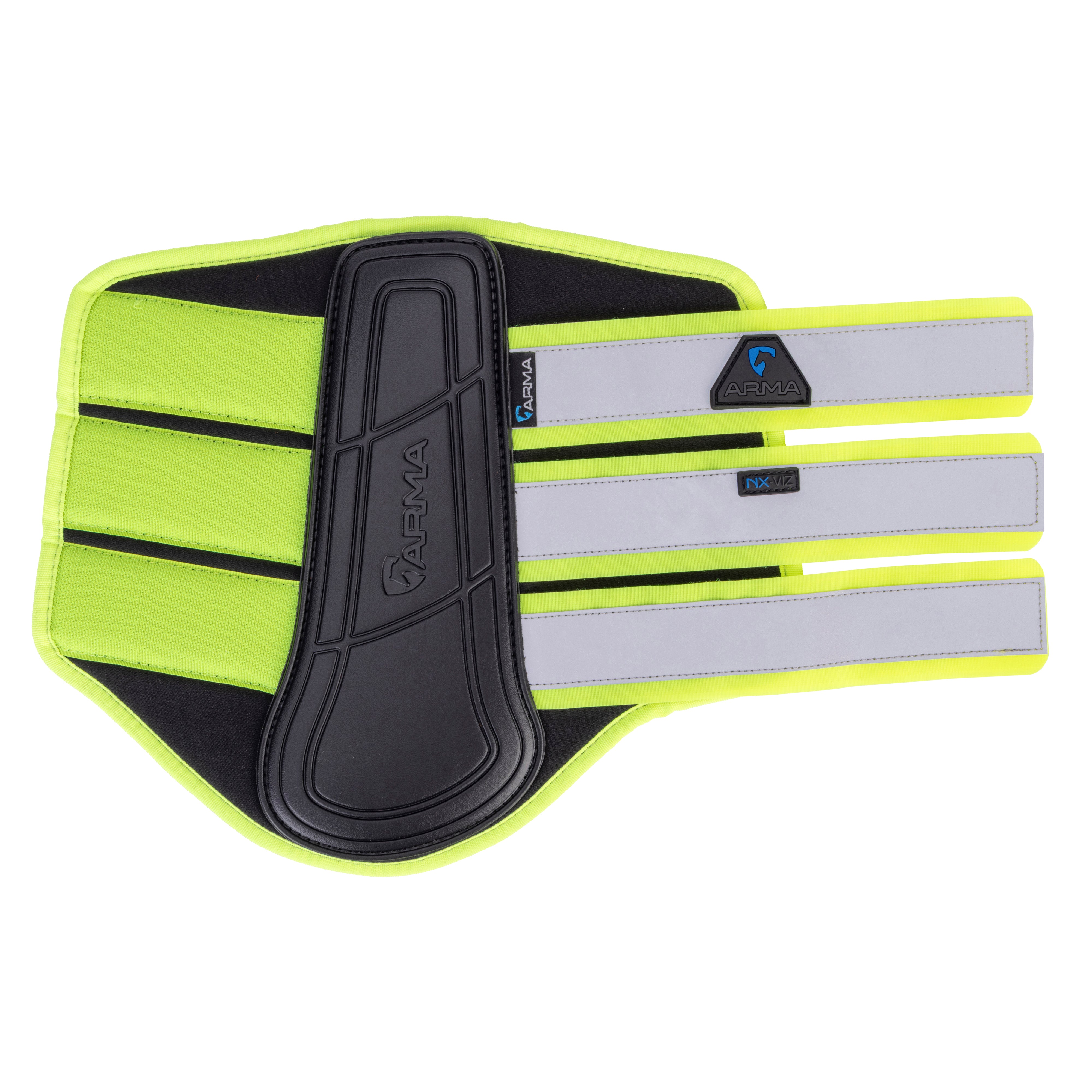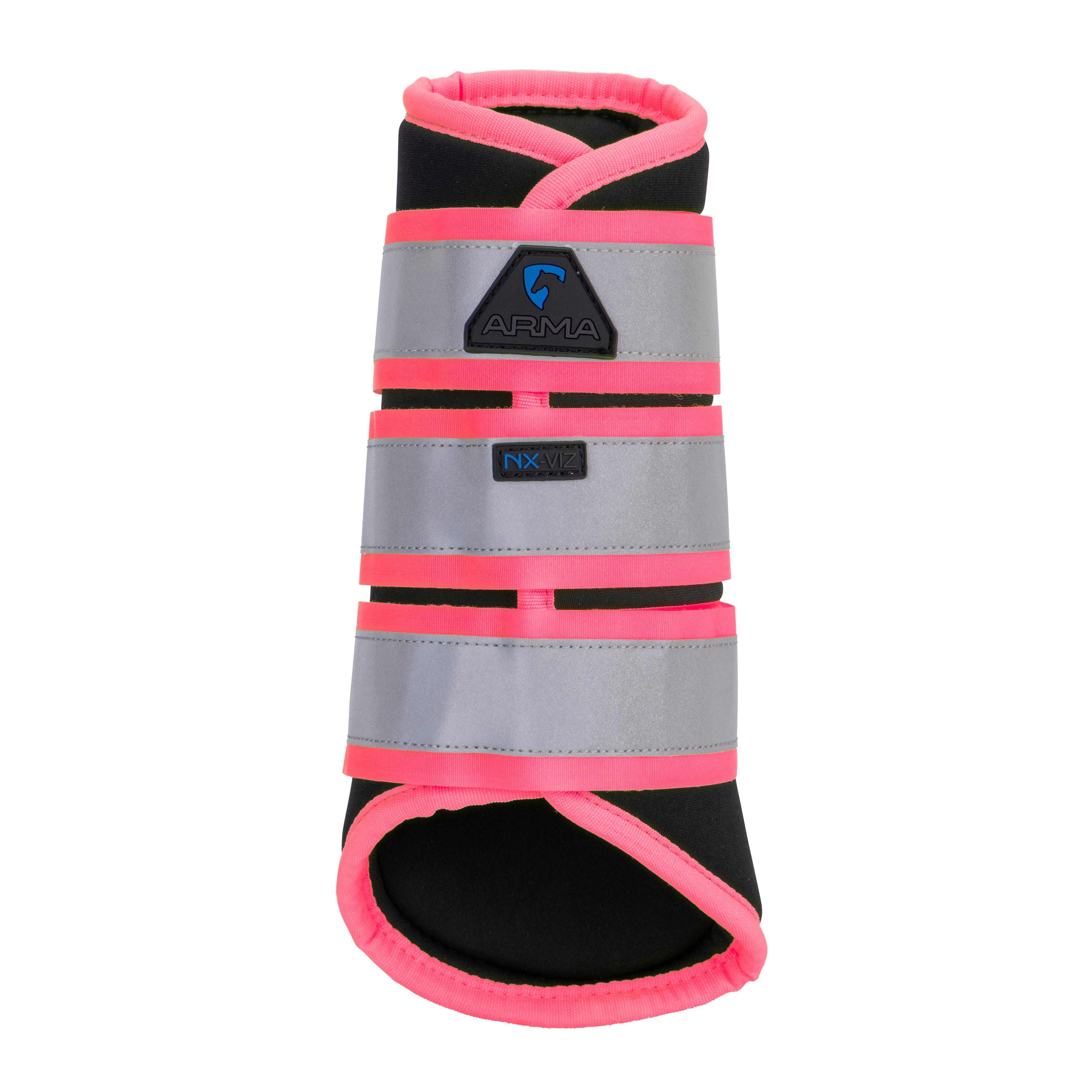 ARMA NX-VIZ neoprene brushing boots feature a dense, flexible outer which supports the leg and absorbs shocks. Bright colours are more visible from further away during daylight, in lower light conditions the boots have a bright reflect to keep rider and horse safer. Fabric covered for a smooth finish, the edges are bound for durability and comfort with recessed stitching to resist wear and tear. Tough moulded ARMA strike resistant pads defend the inner leg against knocks and brushing injuries. Reflective straps feature touch close fastening for adjustability and to secure the boots.