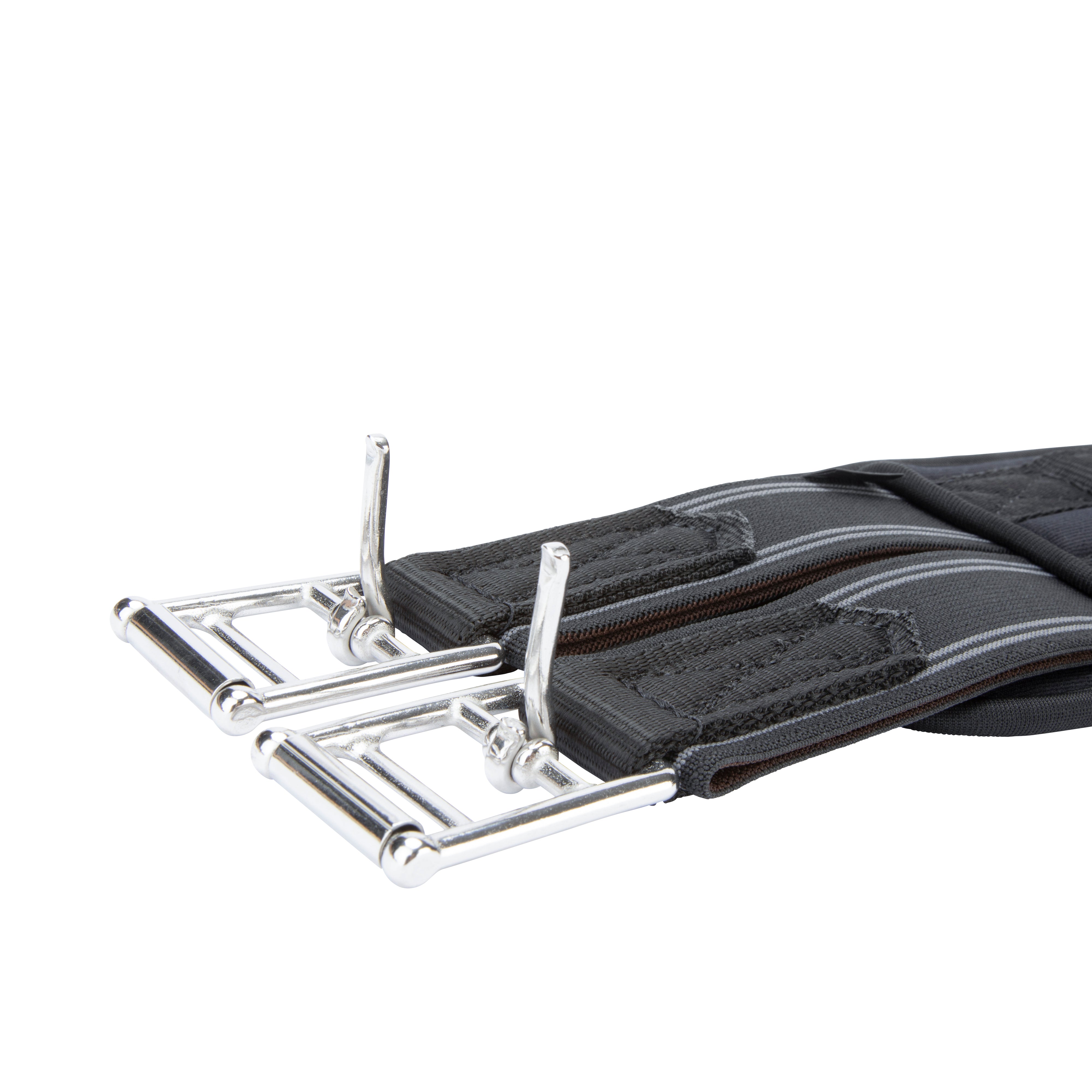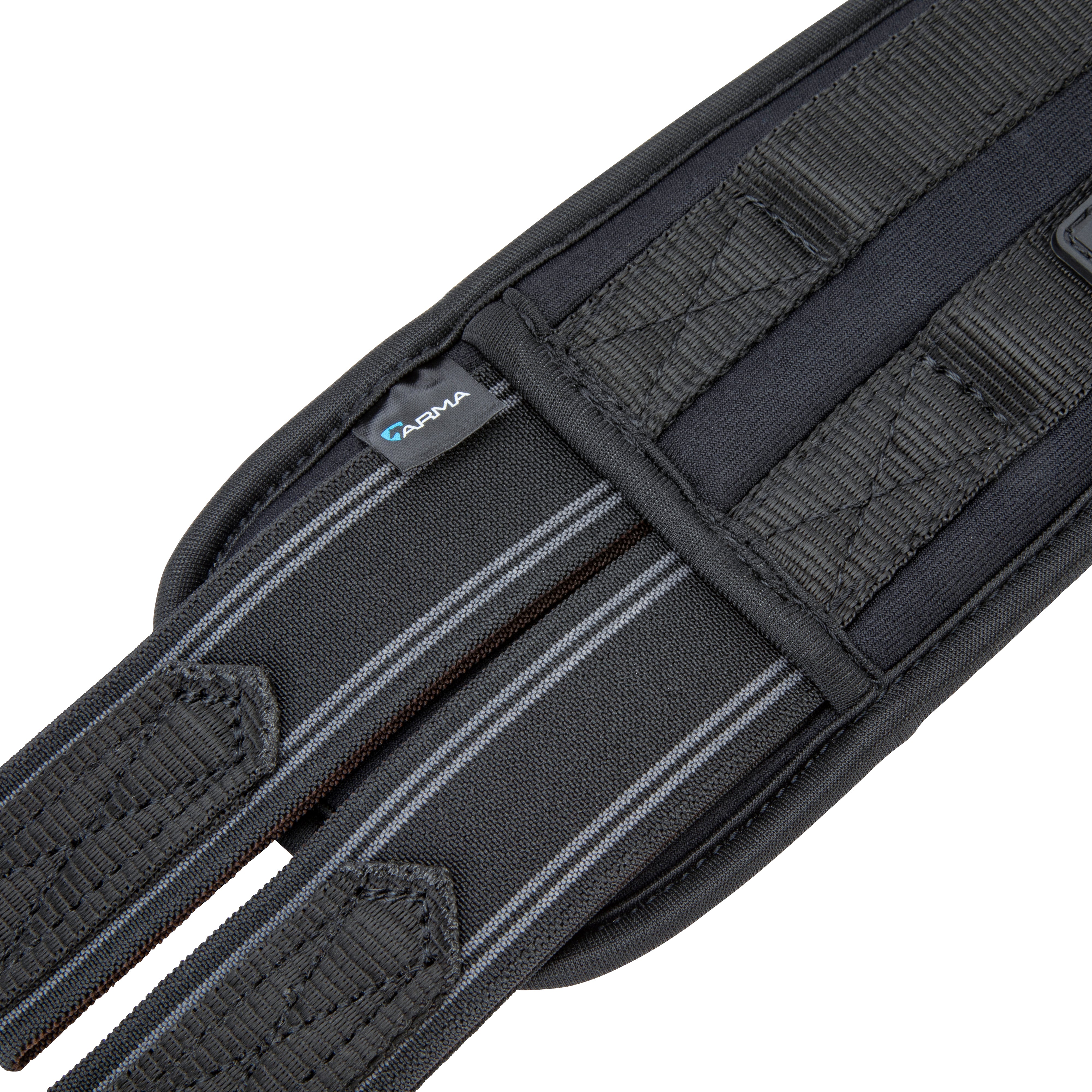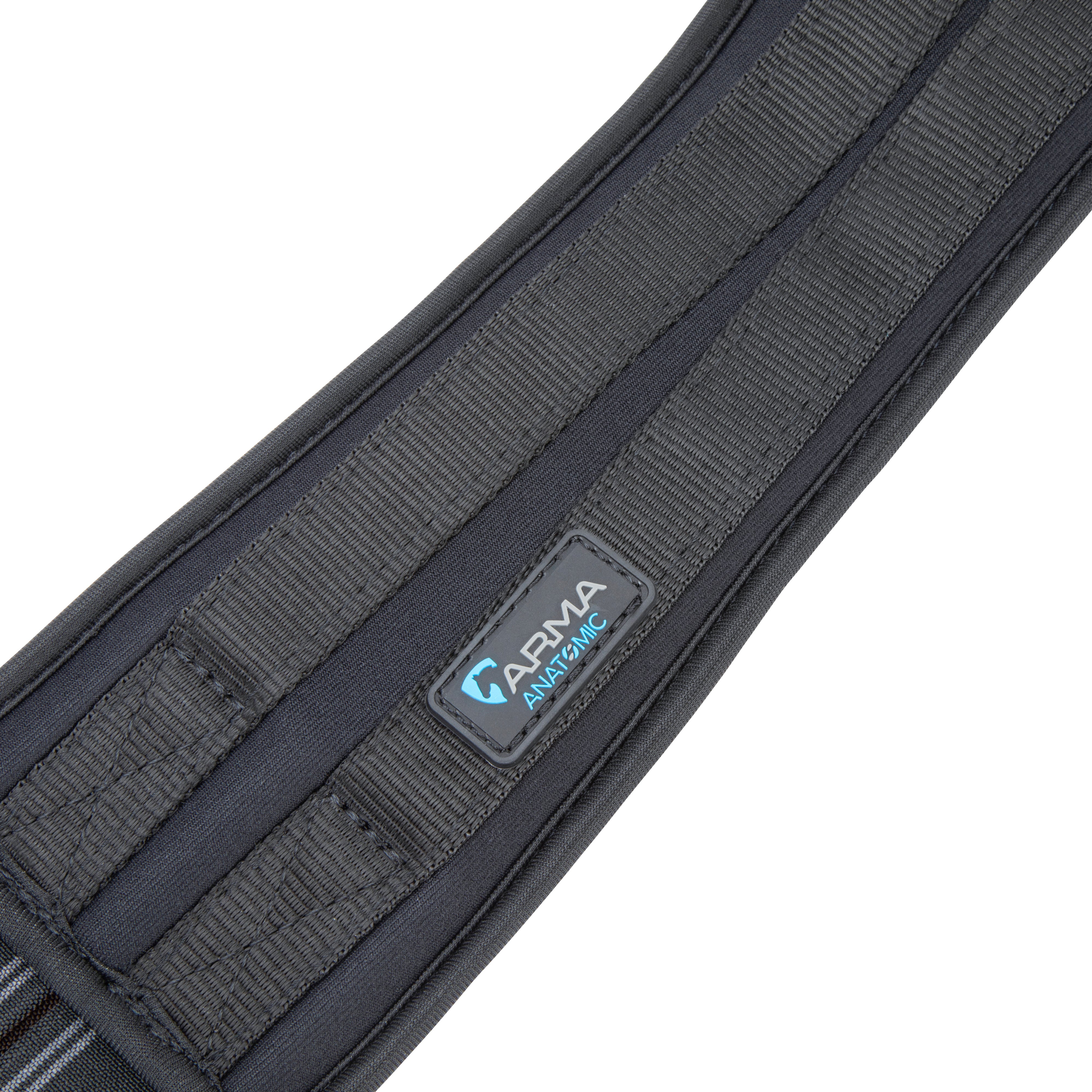 Shaped to provide enhanced comfort for the horse, the ARMA memory foam anatomical girth offers body mapping, responsive and soft shock absorbing support for long lasting comfort. Cut back at the elbow to avoid interference of movement through the shoulder. The large surface area of the girth ensures pressure is spread evenly across the chest muscles which can allow the horse to move more freely and with greater comfort. Heat responsive memory foam moulds to the body for a bespoke fit. Flexible and reinforced with non-stretch nylon webbing. Pressure alleviating elastic inserts at both ends. Stainless steel roller buckles and fittings for long lasting performance.