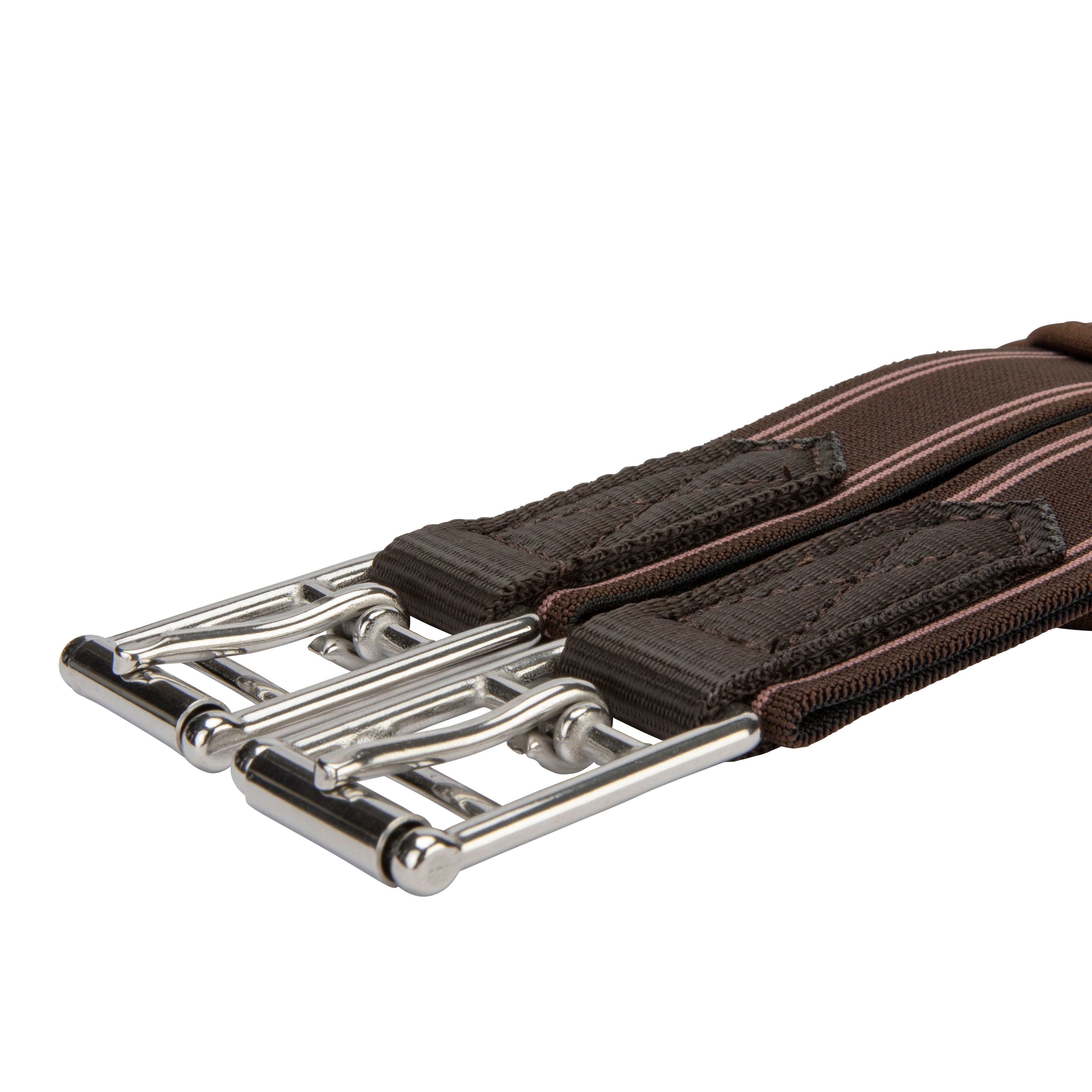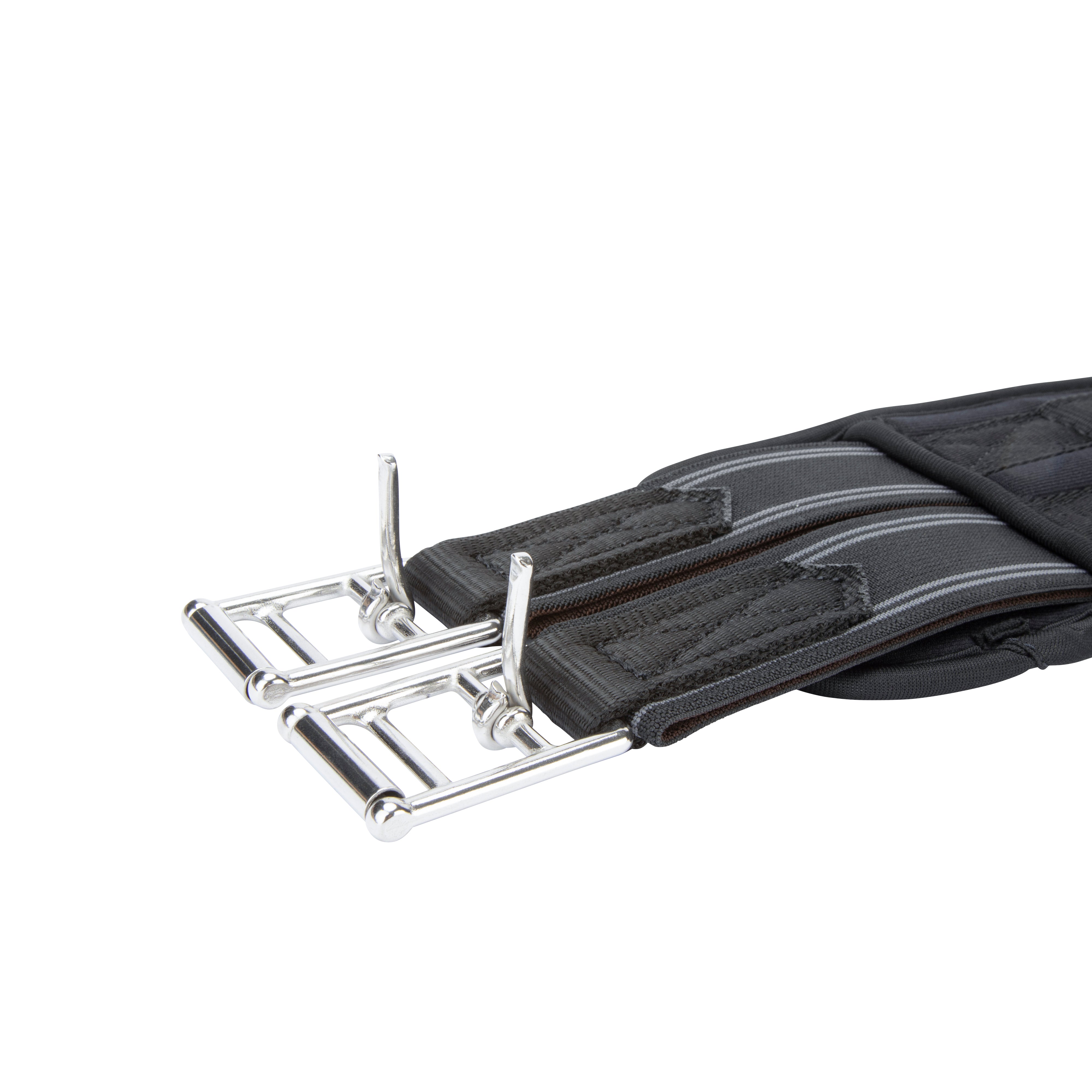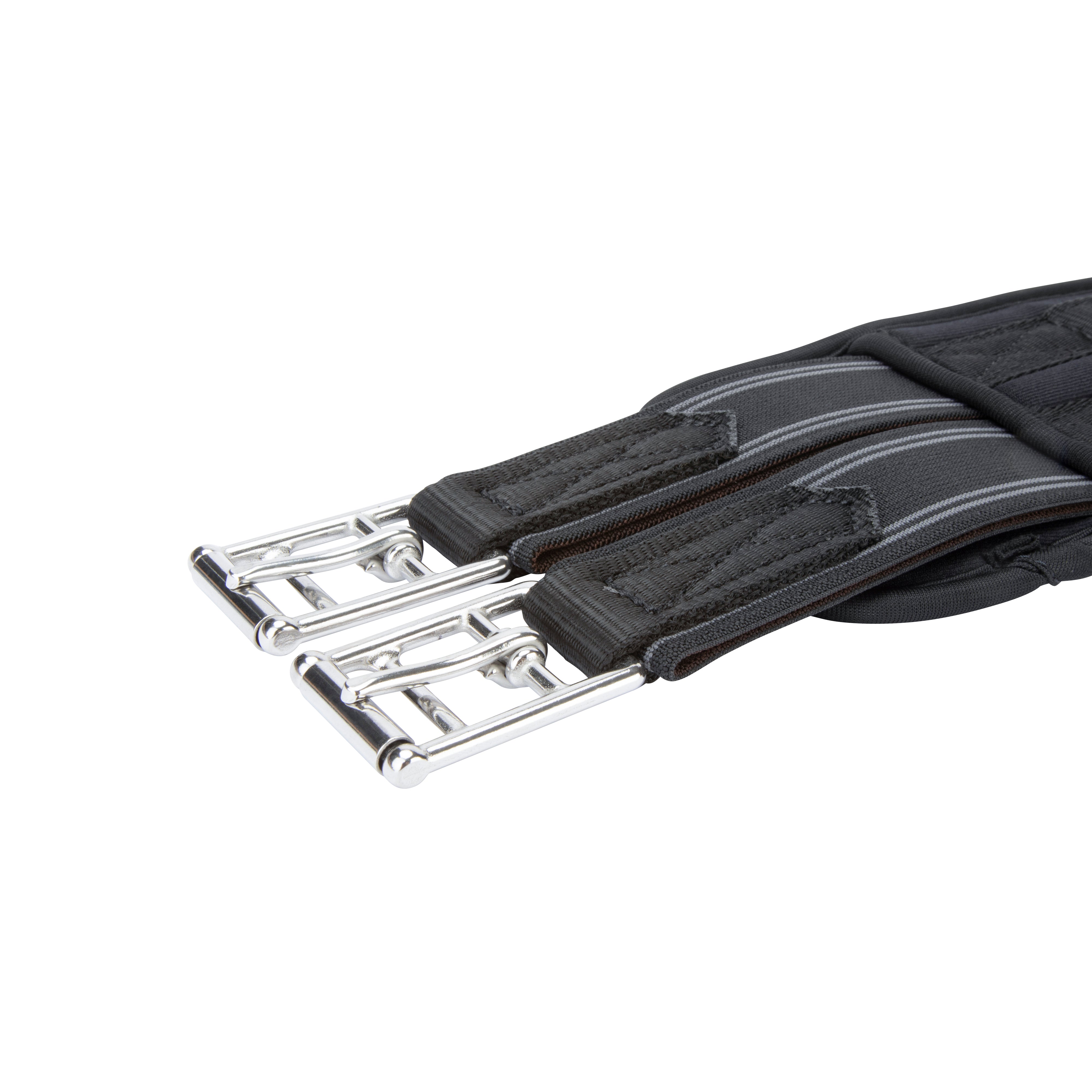 Shaped to provide enhanced comfort for the horse, the ARMA memory foam anatomical girth offers body mapping, responsive and soft shock absorbing support for long lasting comfort. Cut back at the elbow to avoid interference of movement through the shoulder. The large surface area of the girth ensures pressure is spread evenly across the chest muscles which can allow the horse to move more freely and with greater comfort. Heat responsive memory foam moulds to the body for a bespoke fit. Flexible and reinforced with non-stretch nylon webbing. Pressure alleviating elastic inserts at both ends. Stainless steel roller buckles and fittings for long lasting performance.