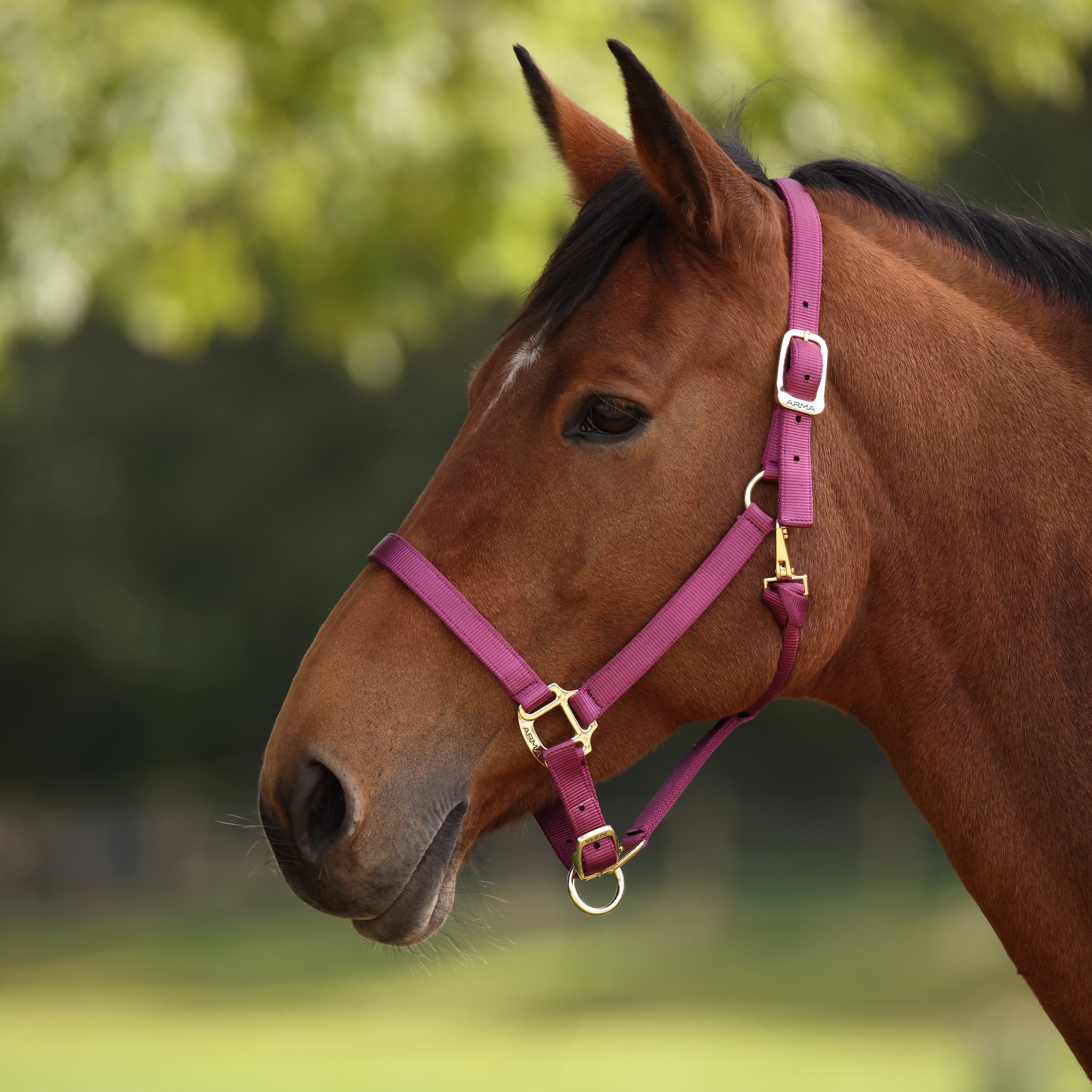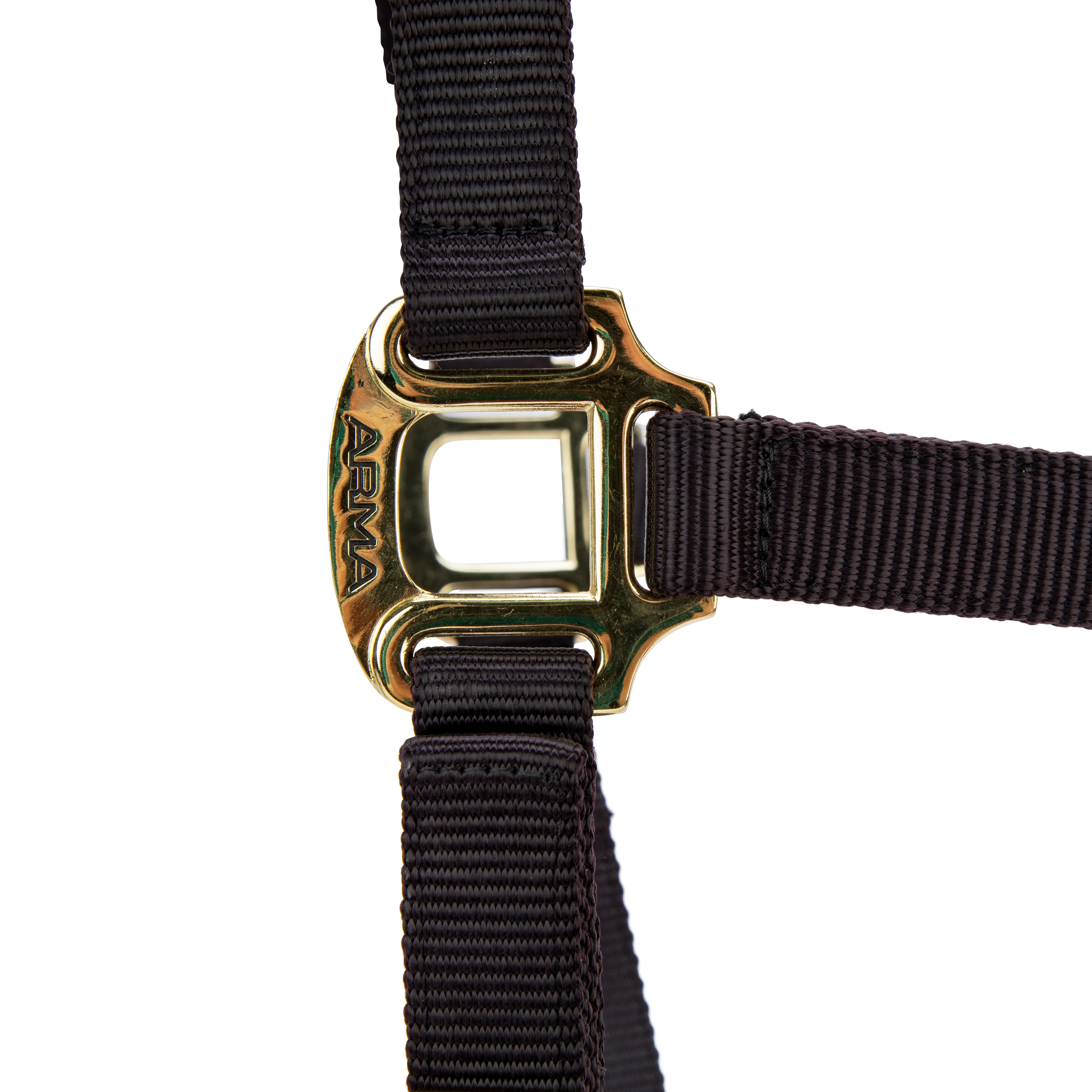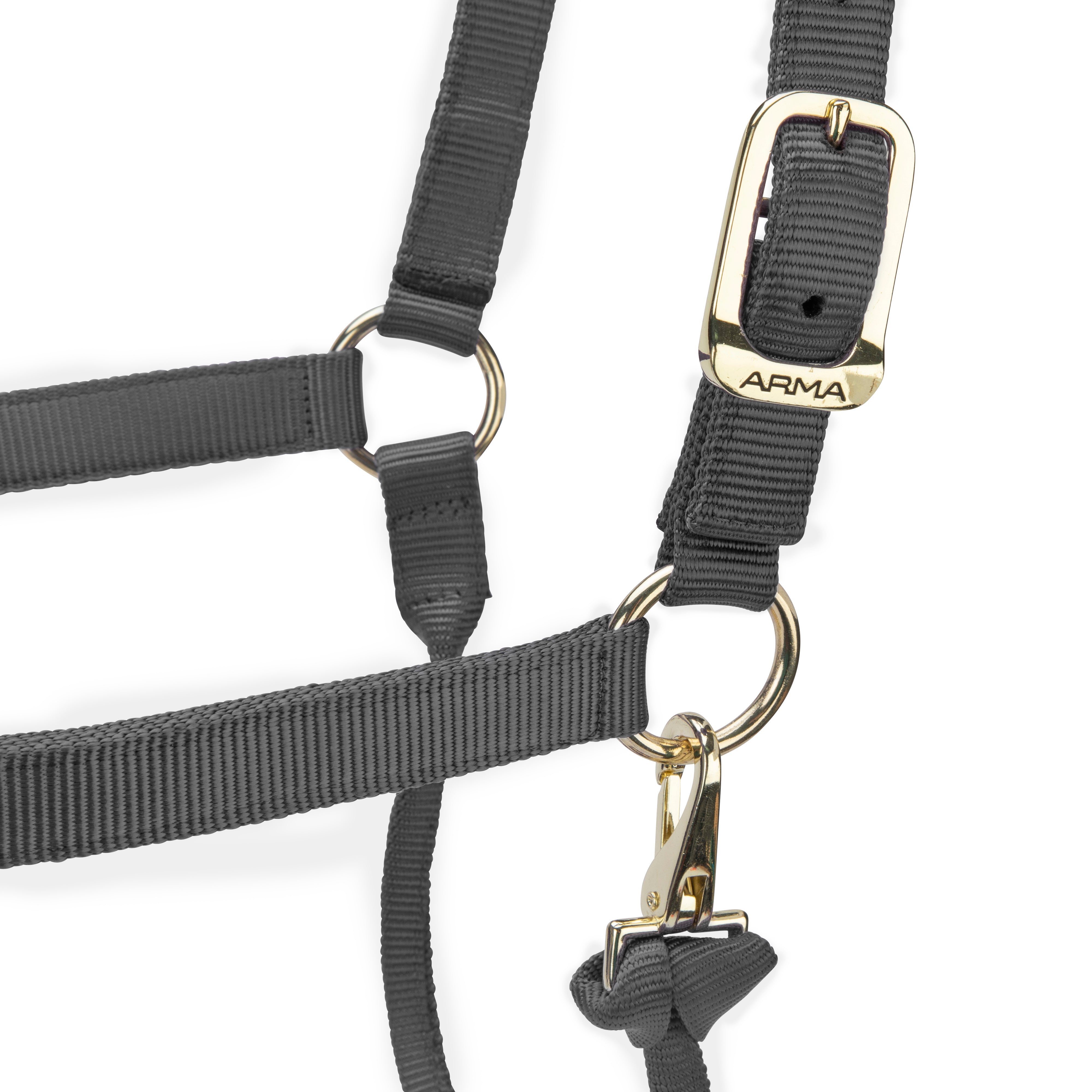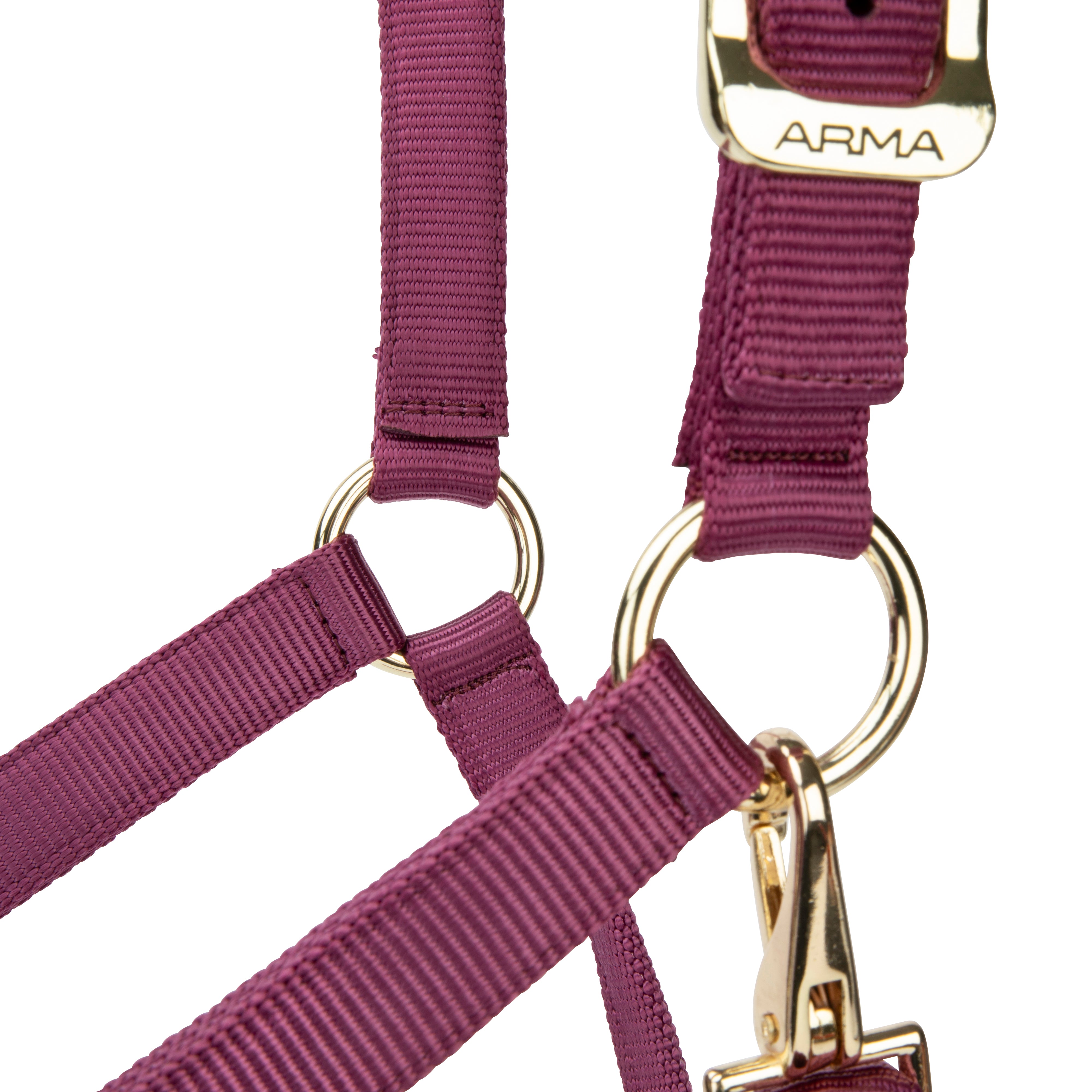 Built for strength in premium web, the ARMA SmoothFit adjustable headcollar looks smart with high shine polished bras...