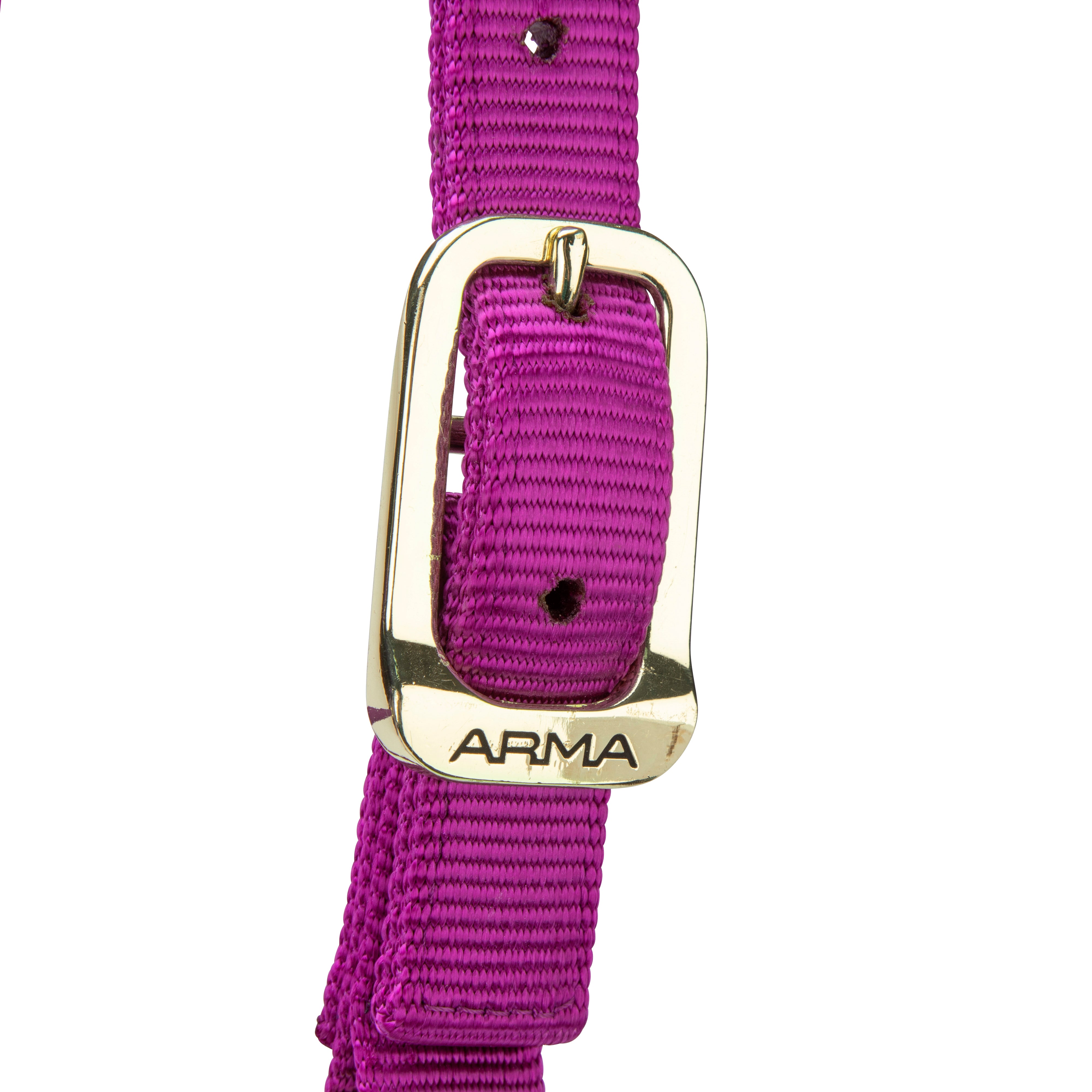 Built for strength in premium web, the ARMA SmoothFit adjustable headcollar looks smart with high shine polished brass colour fittings. Fully adjustable at the head and nose, with a clip on throatlash. The stylish web pops with colour, the smooth finish and rolled backstay allow a high level of comfort for the horse.