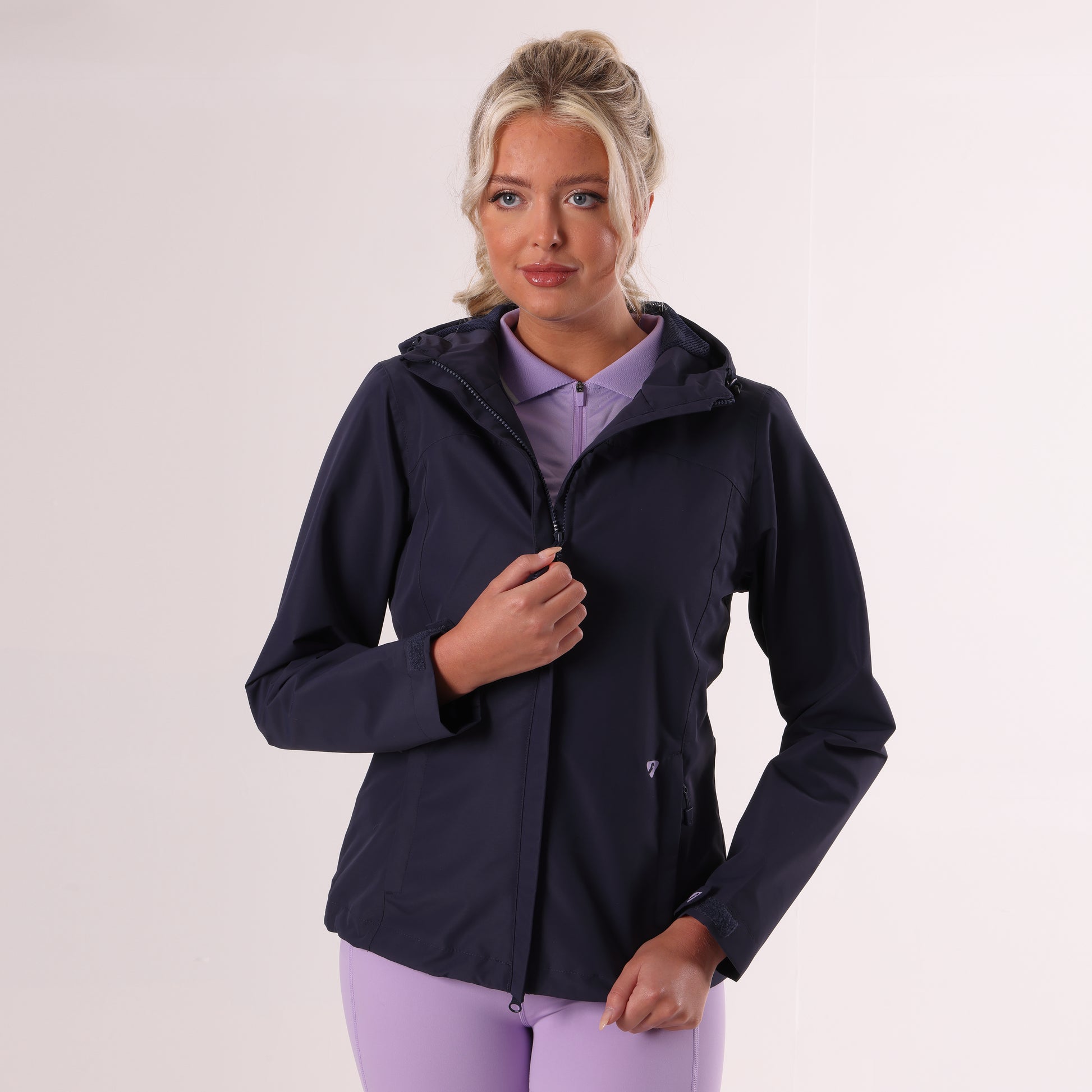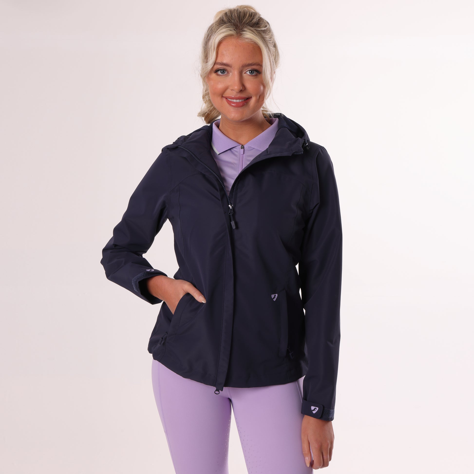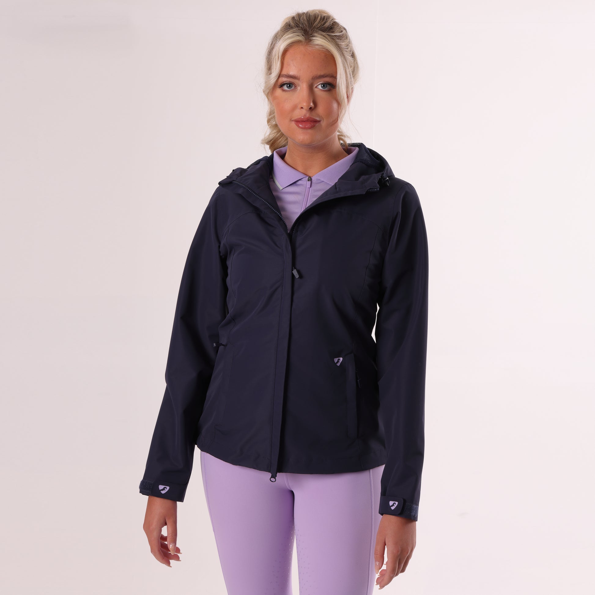 For all weather riding comfort, the Cloudburst raincoat achieves waterproof breathability with plenty of added features. Made with a matt finish outer, the contour shape flatters, a two way front zip offers flexibility when seated and two outer zip pockets keep essentials safe. A DWR coating prevents water saturation and the high waterproof/breathability ratings keep the rider comfortable. Further detail: waterproof & breathable, taped seams, contoured shape, high neck, roomy hood with bungee adjusters, dipped hem with bungee adjusters, two way front zip with inner storm flap, chin guard, touch close wrist adjusters, two zip outer pockets, mesh lining. Outer fabric waterproof rating: 5000mm with breathability rating 5000g/m2/24h. DWR (durable water repellent) finish causes moisture to shed, bead up and roll off the outer surface of the garment to help maintain breathability.