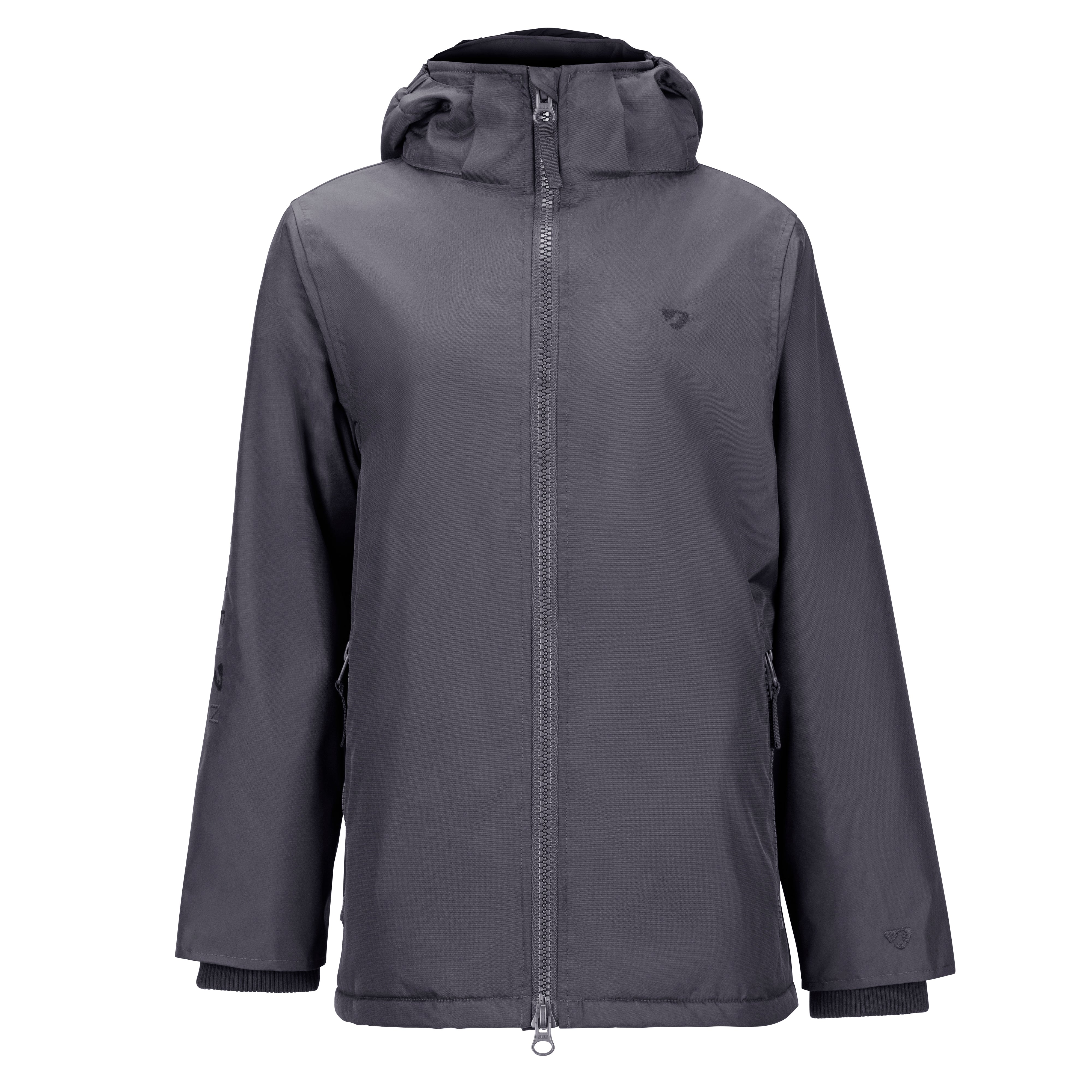 Built for an equestrian life, beat the weather with protection from wind, cold and rain in the Aubrion Original all weather jacket. Durable from the outside with great waterproof credentials and a tough polyester weave to resist abrasion, wear and tear. On the inside, deep pile fleece lining is cosy, insulating and breathable. Versatile for all year useability whether you’re layering up for the yard duties or staying active in the saddle. When its windy or cold keep out the chill with stretch wrist cuffs, highline neck, fleece lined hood and longer length. Rider enhanced benefits include hem opening zip, rear and side rider vents for seated comfort, and a removable hood for rider preference. Practical features: robust zips, easy grip zipper pulls, fleece lined zip pockets, inner zip pocket, inner wrist cuffs, elasticated hood, highline neck, chin guard, taped seams, fabric hanging loop. Waterproof to 10,000mm, Breathable to 5000g/m2. Durable Waterproof Repellent (DWR) prevents saturation - water beads on the fabric and runs off. Made with Bionic-Finish® Eco: fluorine-free water repellent technology. Styled with self-colour embroidered Aubrion logos. Great for teams as embroidery can be added via a hidden zip in the lining.
