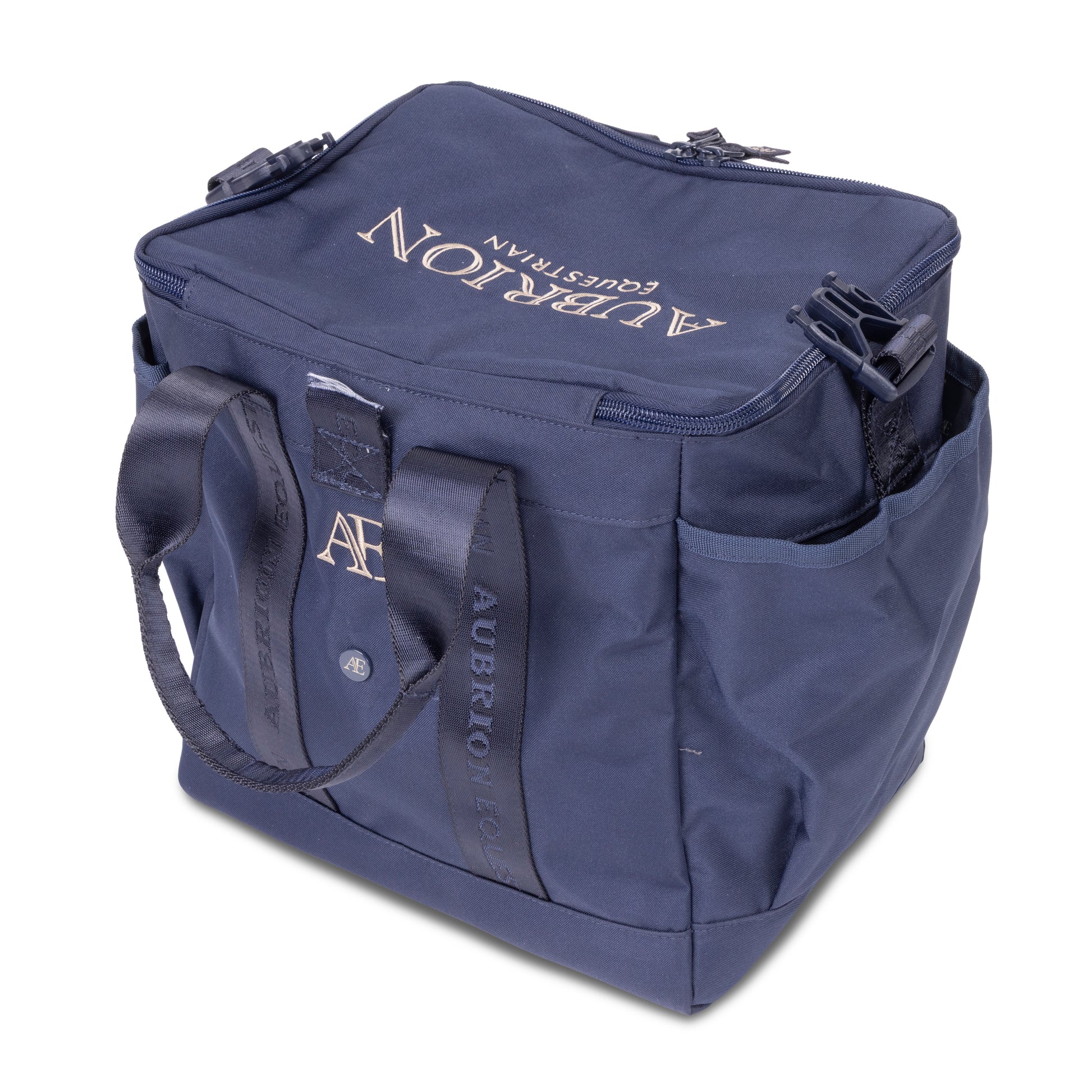 Keep all of your grooming essentials tidy and organised in the classically styled Aubrion Equestrian large grooming bag. An adjustable and removable shoulder strap and twin handles offer multiple carry options, the zip opening lid secures contents while on the move. Inside, two spacious wipe clean storage areas ensure contents can be kept organised and hygienic, multiple outer pockets organise smaller items. Accented by the signature web and smart embroidery. Further detail: two inner compartments, multiple outer pockets, two way zip lid, twin carry handles, detachable and adjustable shoulder strap, hardwearing feet, durable woven outer, signature web and Aubrion embroidered logo. Dimensions: W.30cm x H.28cm x D.23cm. From the Aubrion Equestrian horse & rider luggage range.