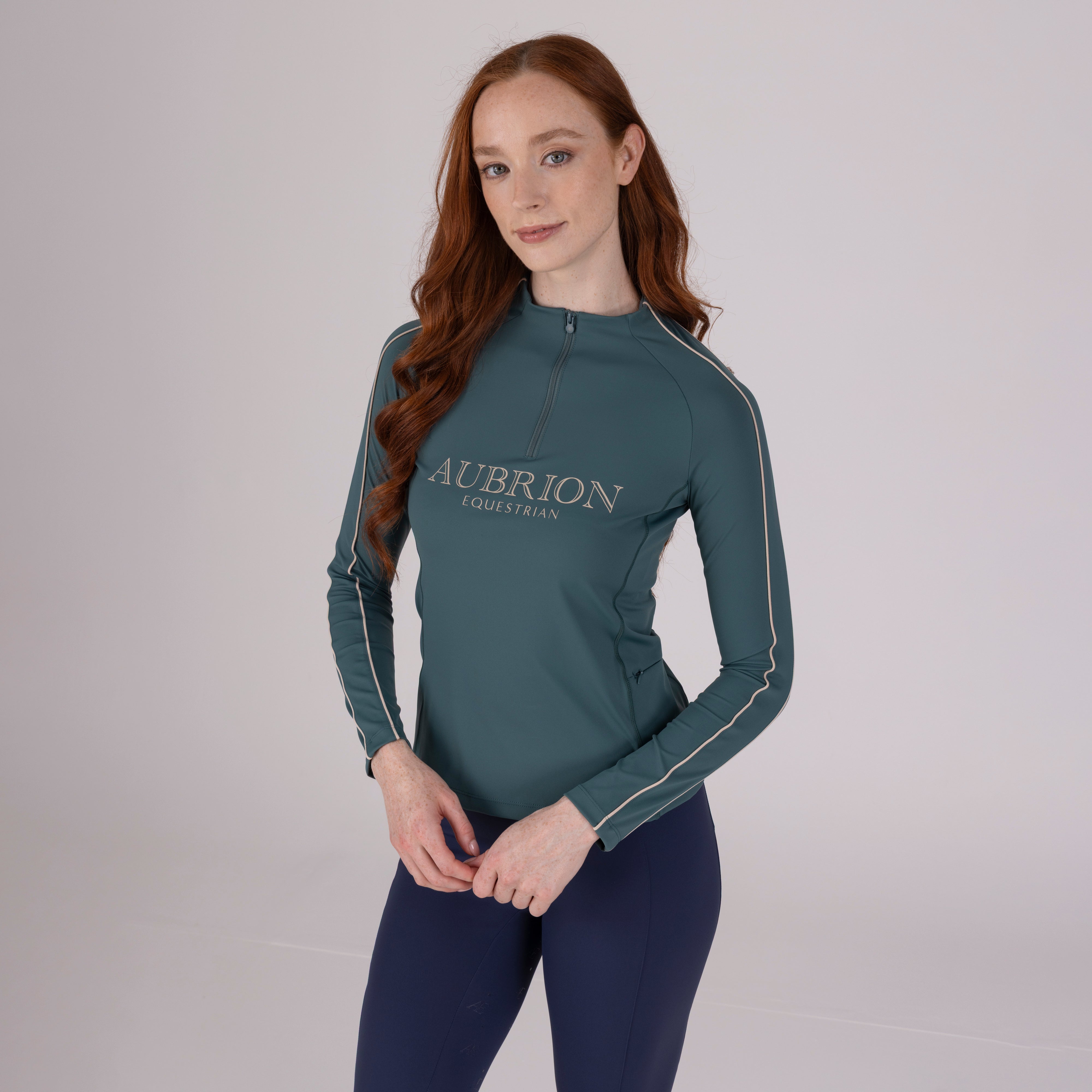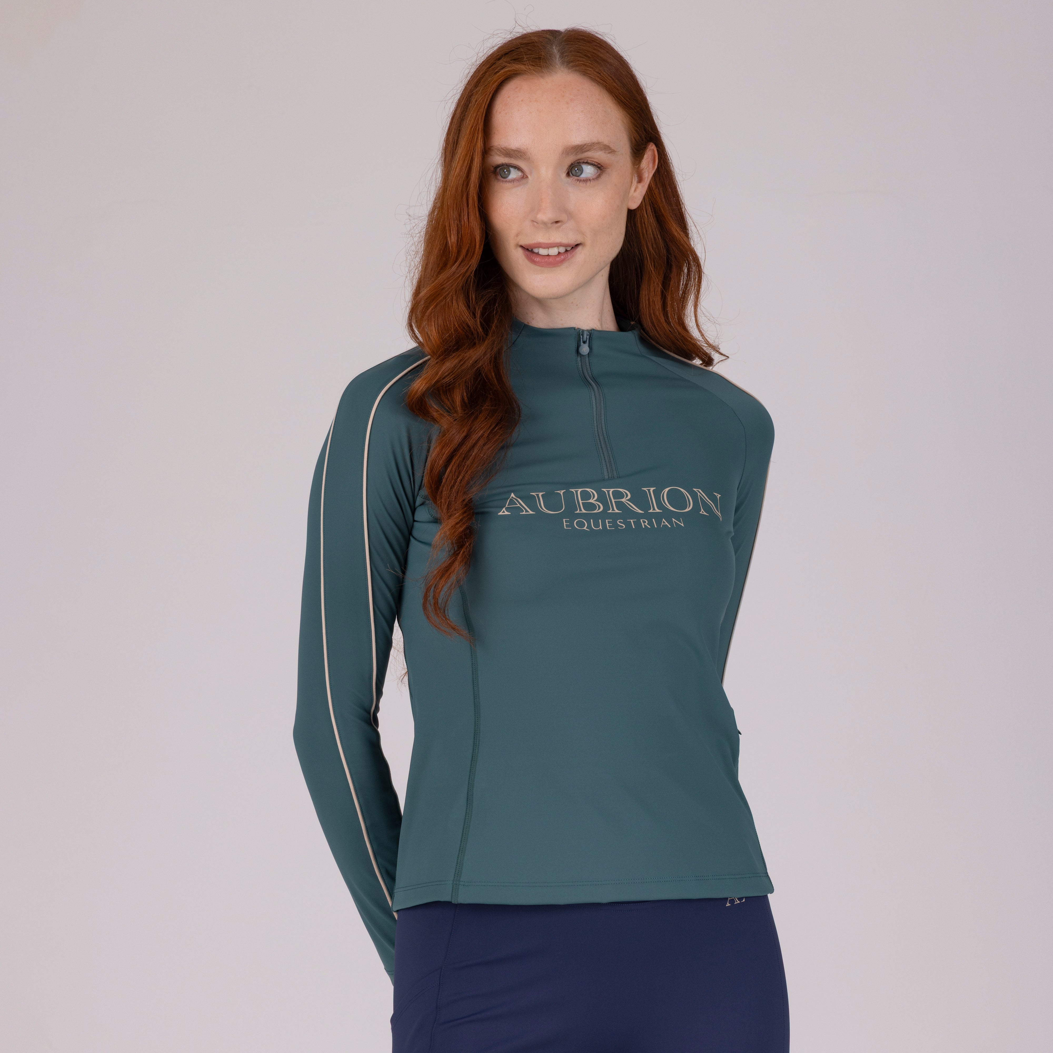 Thoughtfully designed for in the saddle, the Aubrion Equestrian long sleeve base layer offers the perfect blend of elegance and high performance. Made to move effortlessly with you, it’s crafted from 4-way stretch fabric with a supportive feel and body fit. For a smart finish, the base layer has contrast piping, a concealed front zip and shaped neckline. Key features: moisture wicking fabric, 4-way stretch, shaped neckline, concealed front zip, concealed side zip pocket.
