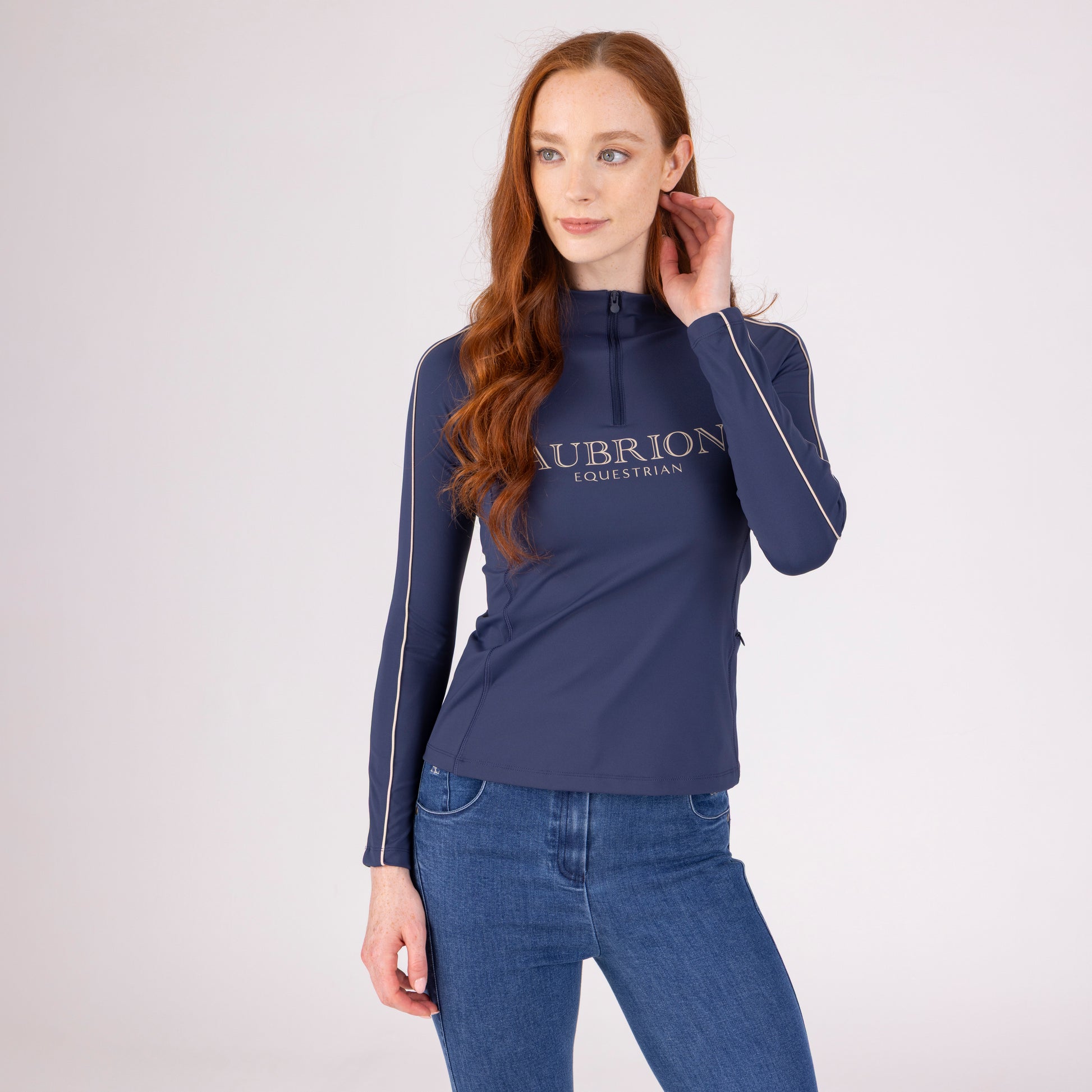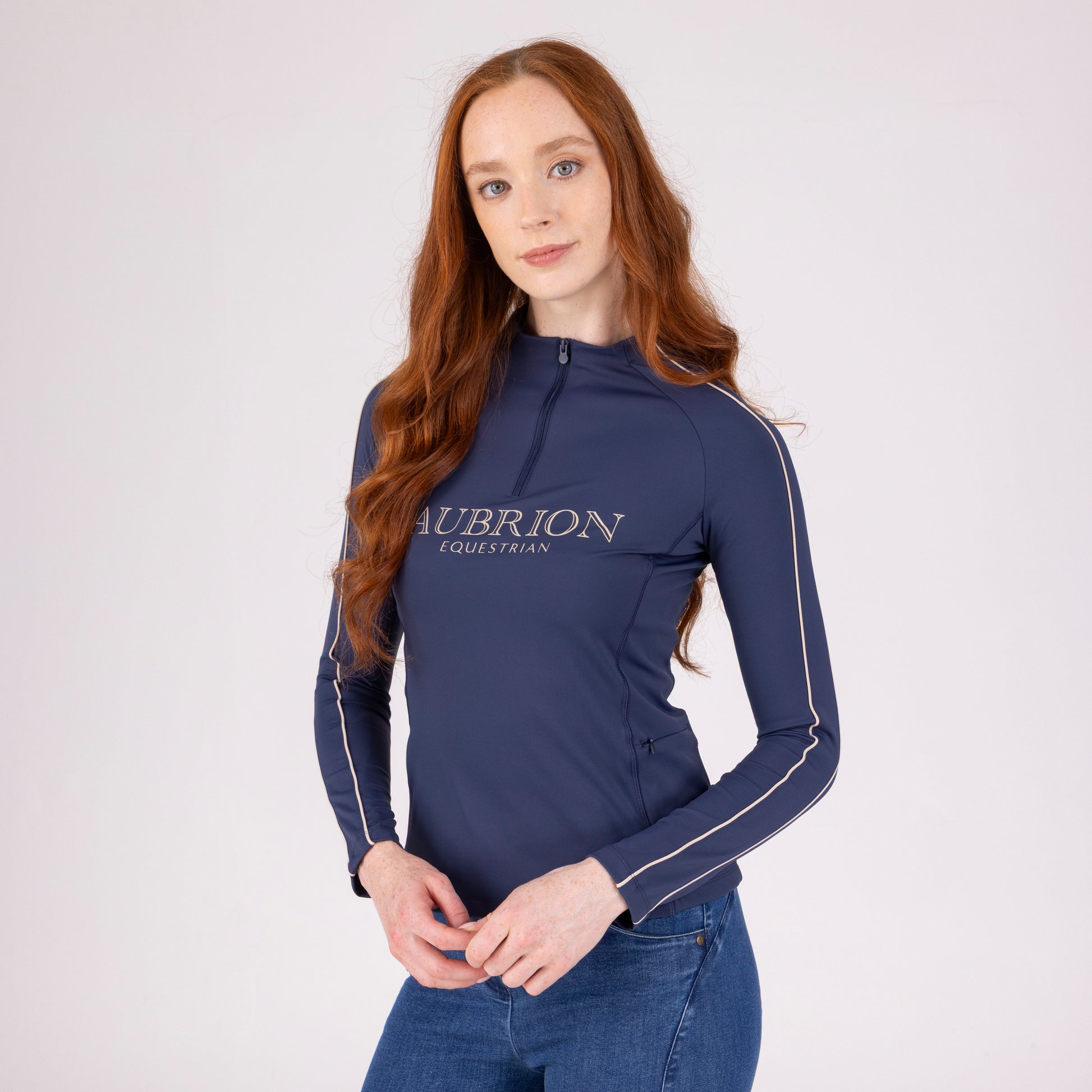 Thoughtfully designed for in the saddle, the Aubrion Equestrian long sleeve base layer offers the perfect blend of elegance and high performance. Made to move effortlessly with you, it’s crafted from 4-way stretch fabric with a supportive feel and body fit. For a smart finish, the base layer has contrast piping, a concealed front zip and shaped neckline. Key features: moisture wicking fabric, 4-way stretch, shaped neckline, concealed front zip, concealed side zip pocket.