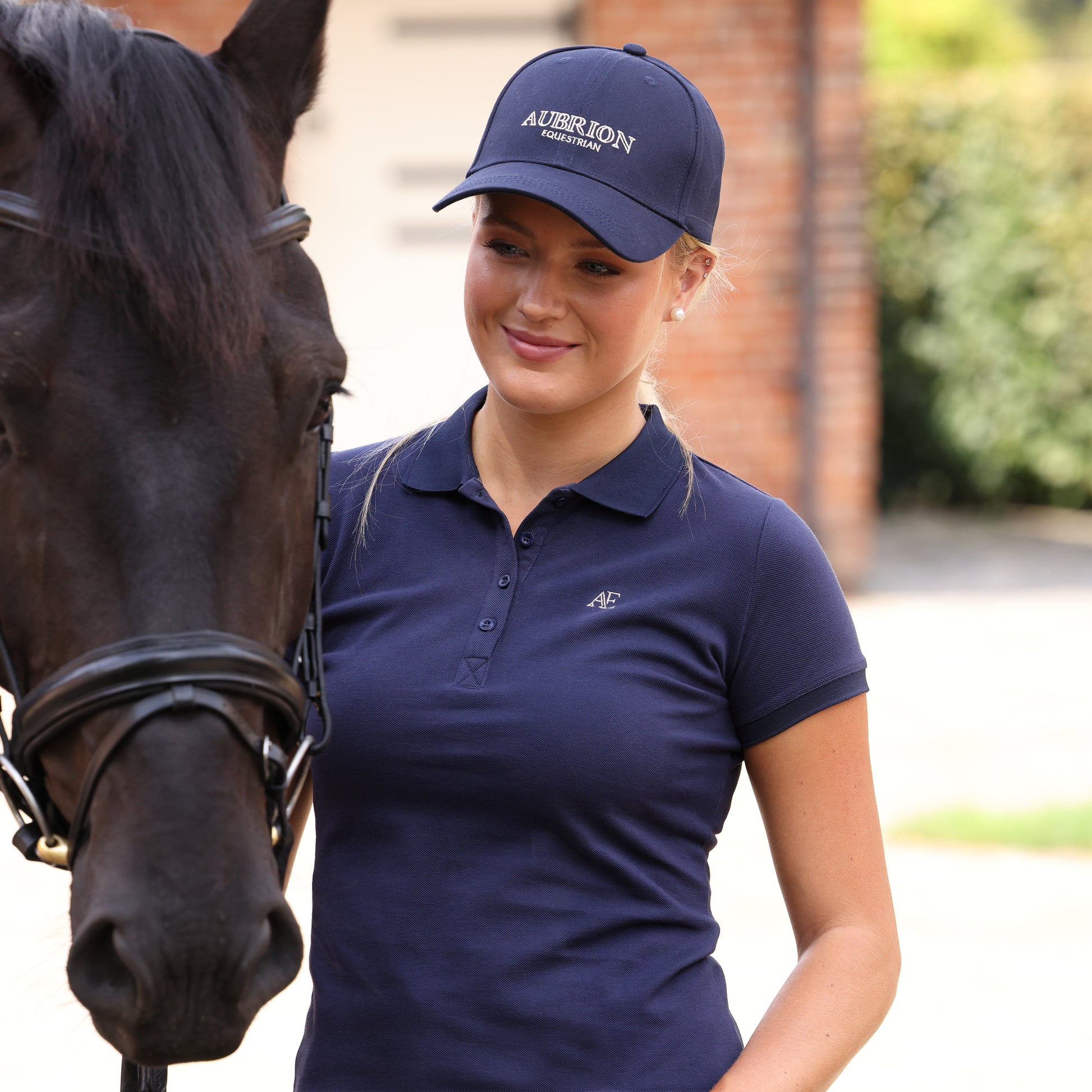 The Aubrion Equestrian short sleeve polo top is made for everyday styling. Crafted from soft cotton, it features a smart, tailored fit with a ribbed collar and contrast embroidered branding. Available in two colourways that pair effortlessly with jeans or riding breeches. Key features: 100% cotton, pique knit structure, ribbed collar and cuffs, side splits in hem band, embroidered Aubrion Equestrian logos.