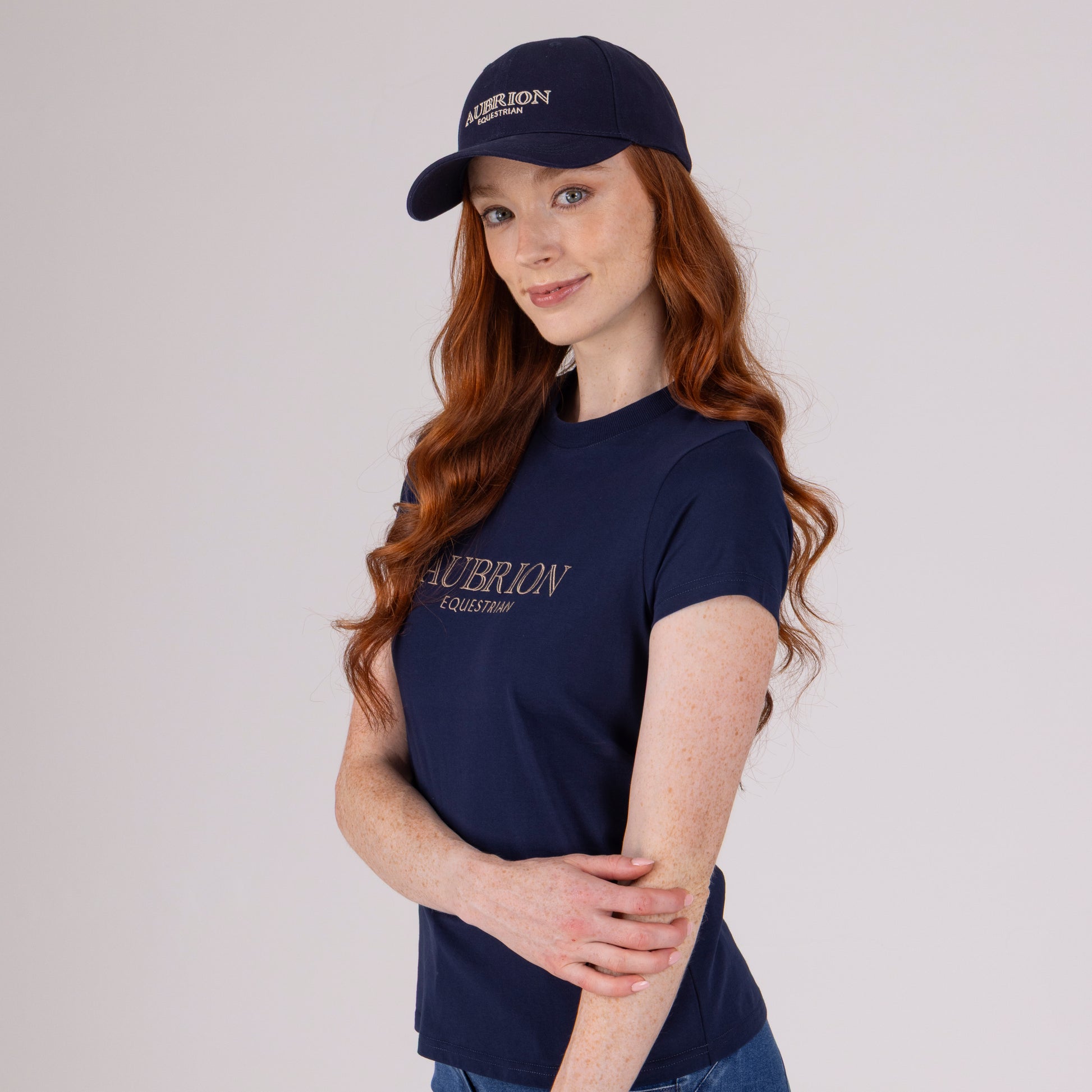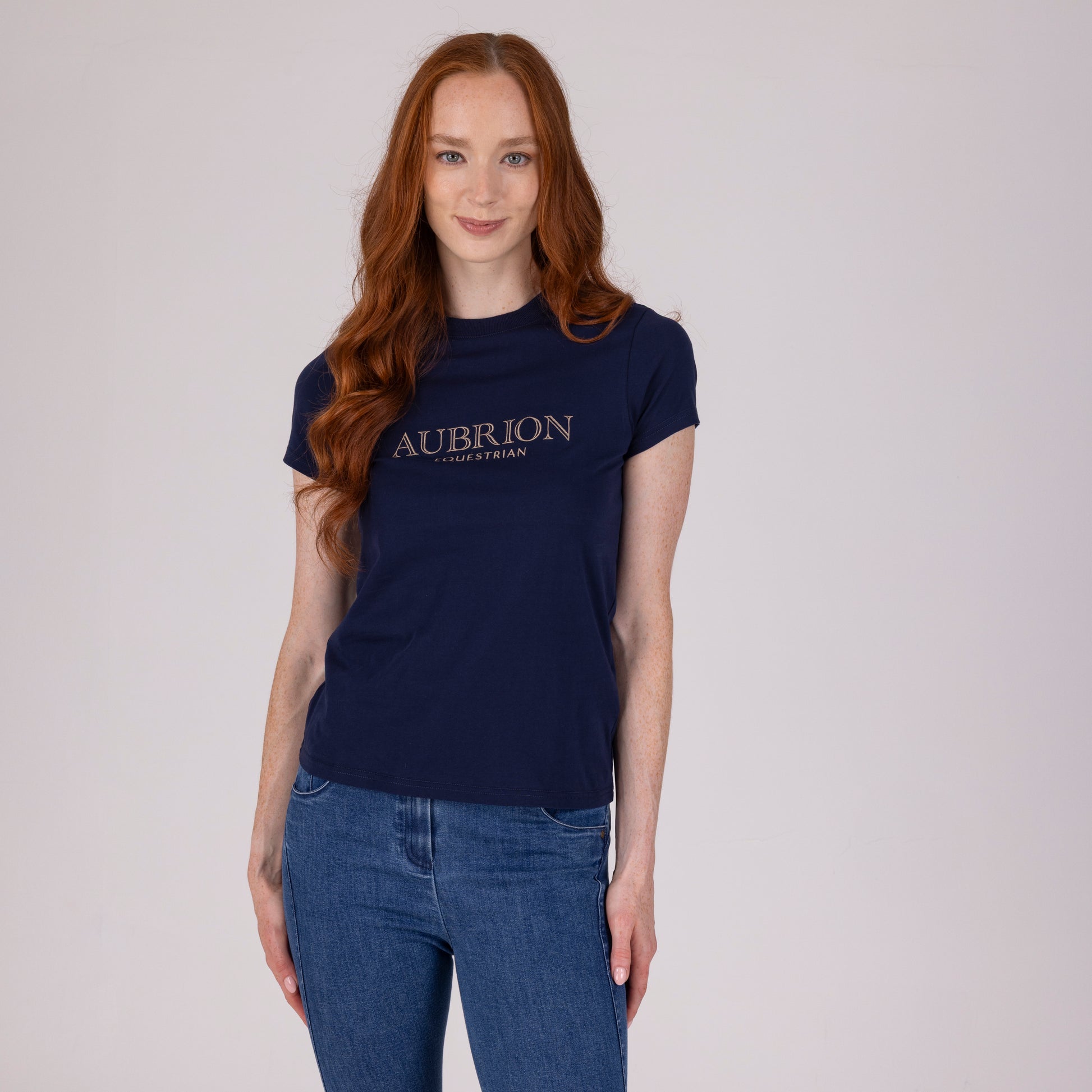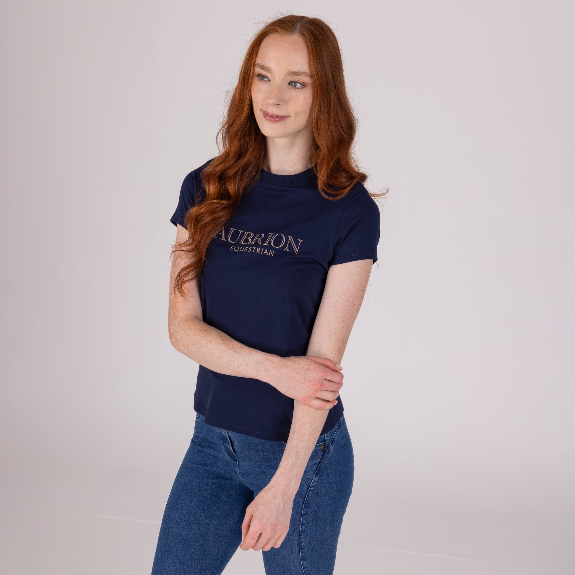 Crafted from soft organic cotton, the Aubrion Equestrian t-shirt adds comfort and a relaxed feel to your everyday riding wardrobe. The classic crew neckline has a ribbed finish that gives a close, comfortable fit. This T-shirt comes in Midnight and is finished with contrast embroidered branding. Key features: 100% cotton, regular fit, crew neck, embroidered Aubrion Equestrian logos.