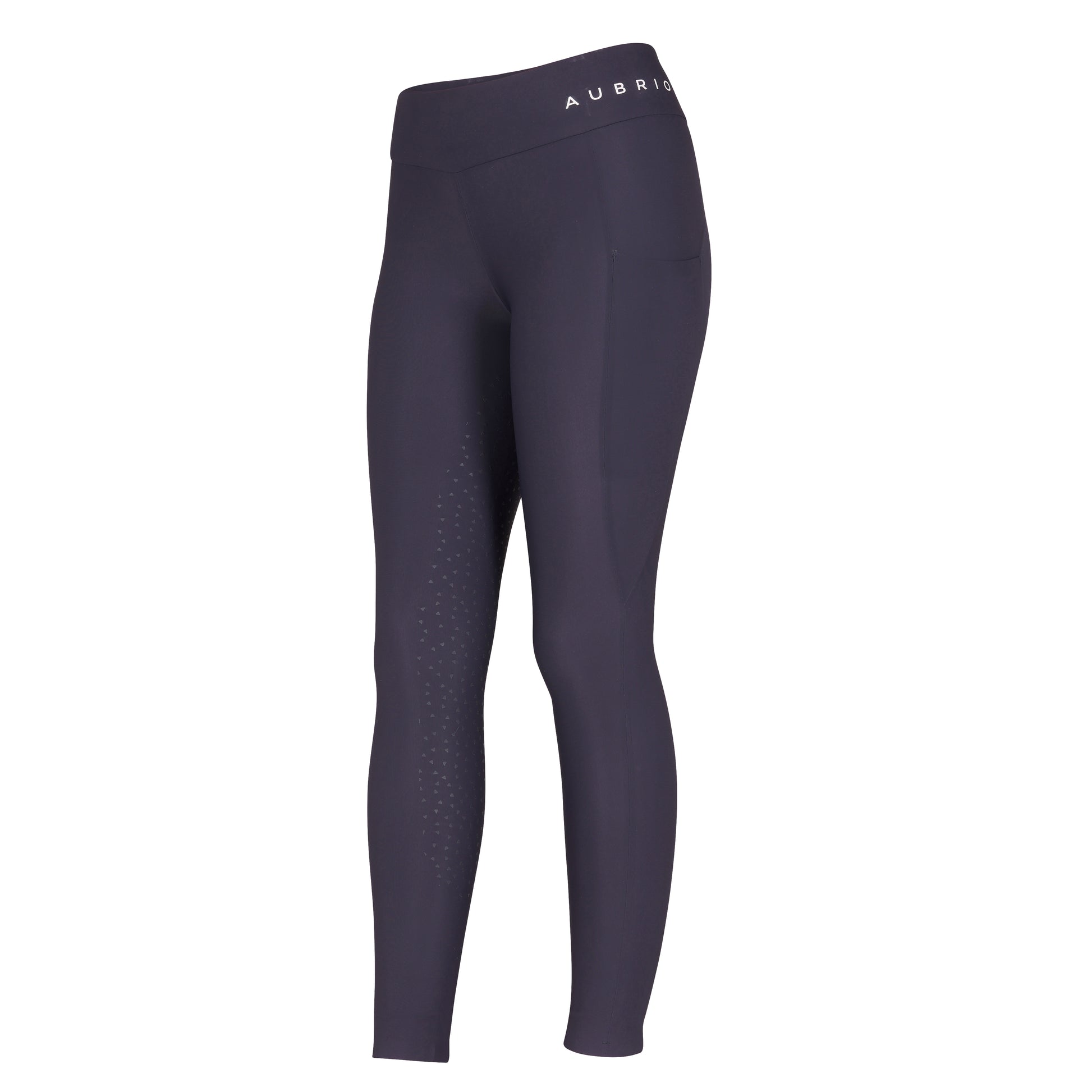 Offering a lightweight feel, the Aubrion laminated riding tights provide comfort and flexibility with great shape retention. Sportactive moisture management and quick drying to keep the skin feeling fresh. Laminated seams create a smooth feel that offers comfort and zero bulk at creases. Further detail: moisture management, quick drying, 4-way stretch excellent shape retention, two thigh phone pockets, matte silicone full seat grips, smooth comfort seams, Aubrion prints.