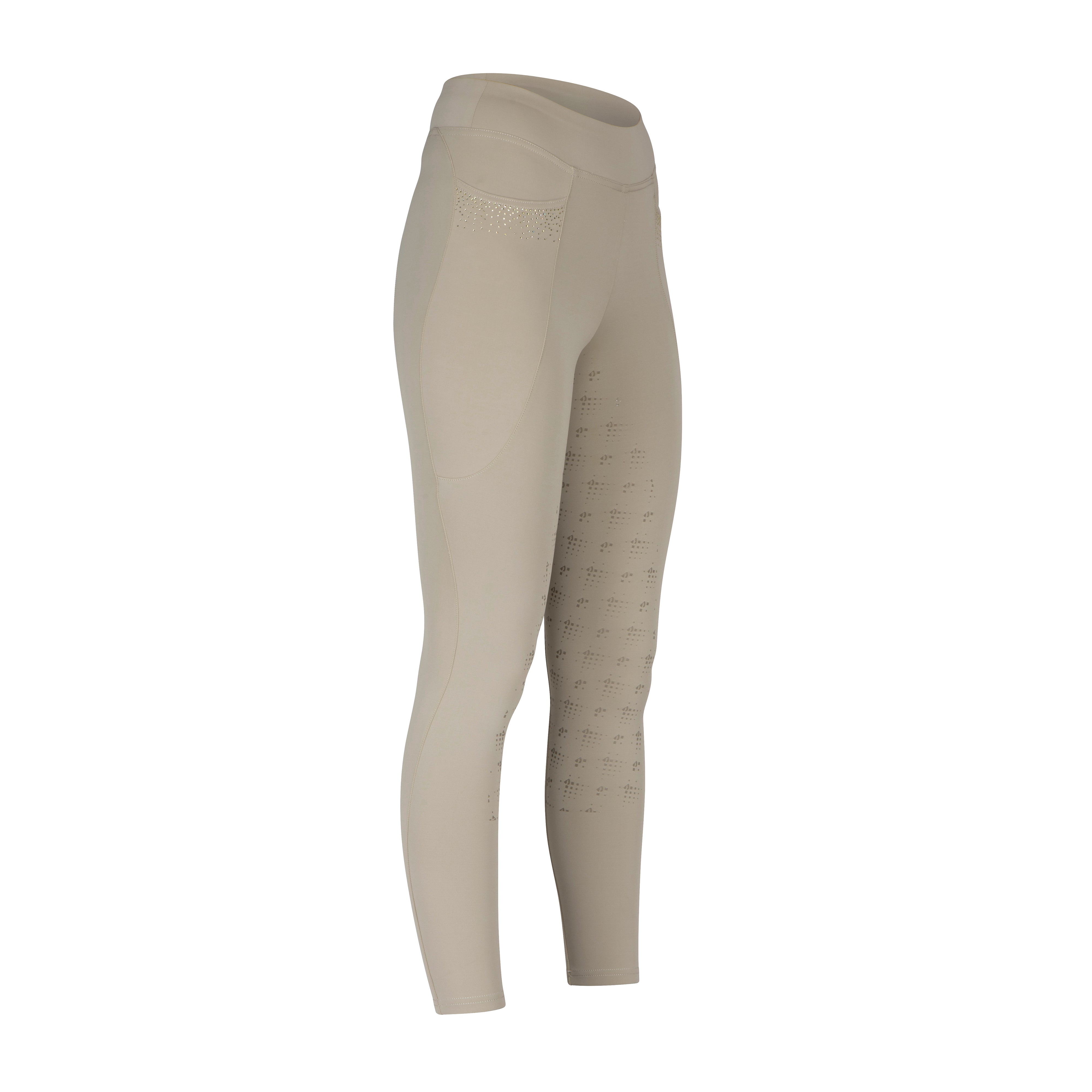 Aubrion Optima riding tights are created for elite competition performance using modern design technology and innovative fabrics, appealing to riders who demand excellence whilst training or competing. Bringing an ultimate freedom feel, they're perfect choice for enhanced in-saddle comfort. Contemporary GX features tonal diamante scattered above the pockets to catch the light with every movement. Cleverly engineered 360º contour support and excellent moisture management revitalise though all levels of activity. A flexible high waisted style offers core support for added confidence. The contour seat has a gloss silicone print for in-saddle security. Neatly finished with a self-colour Aubrion logo at the leg, adding a subtle nod to elevated equestrian design. Further detail: discrete phone pockets on both legs, supportive high waist, belt loops, contour seat, full silicone transparent grips, moisture wicking, quick drying, comfort seams, Aubrion logo print. Designed to comply with GB affiliated competition rules.