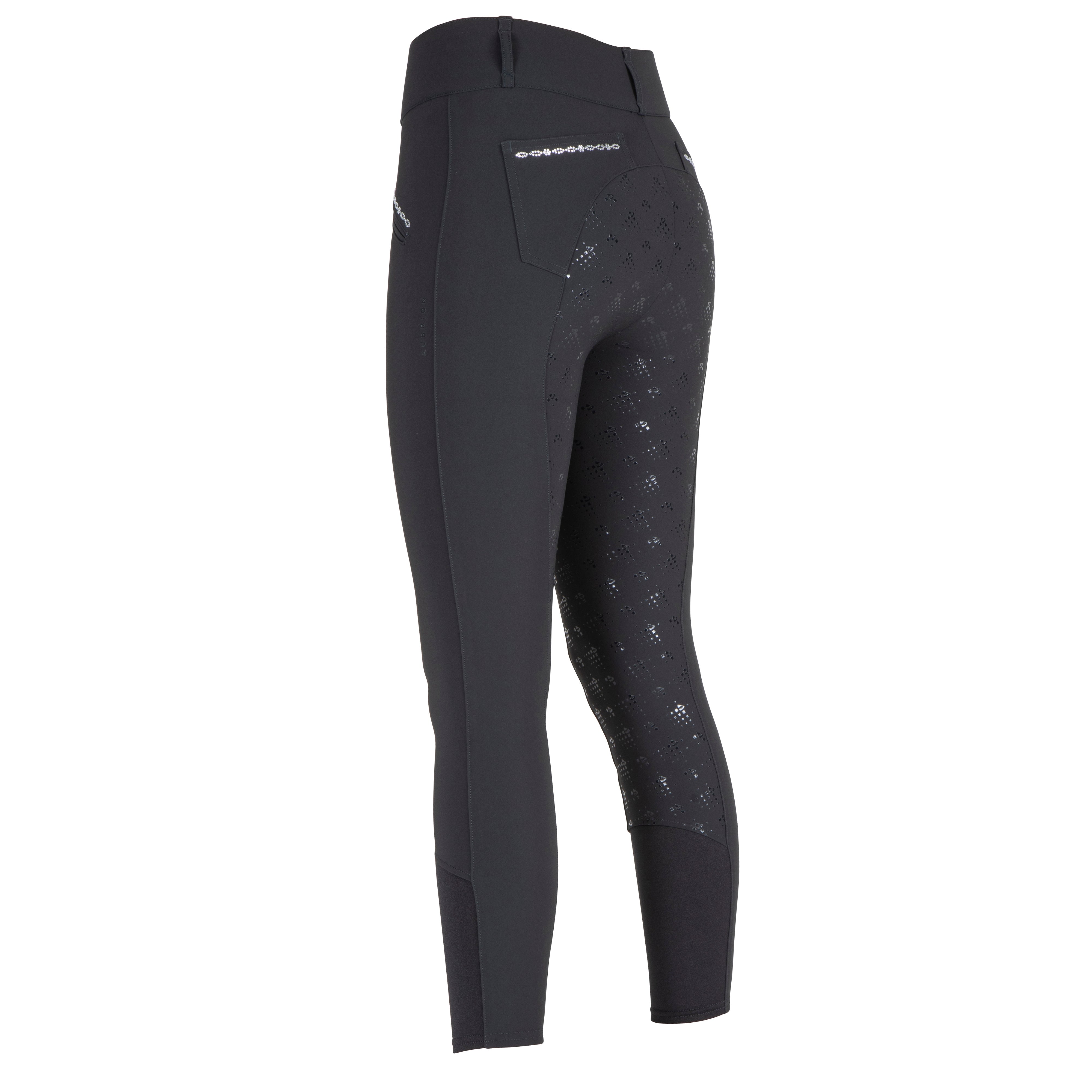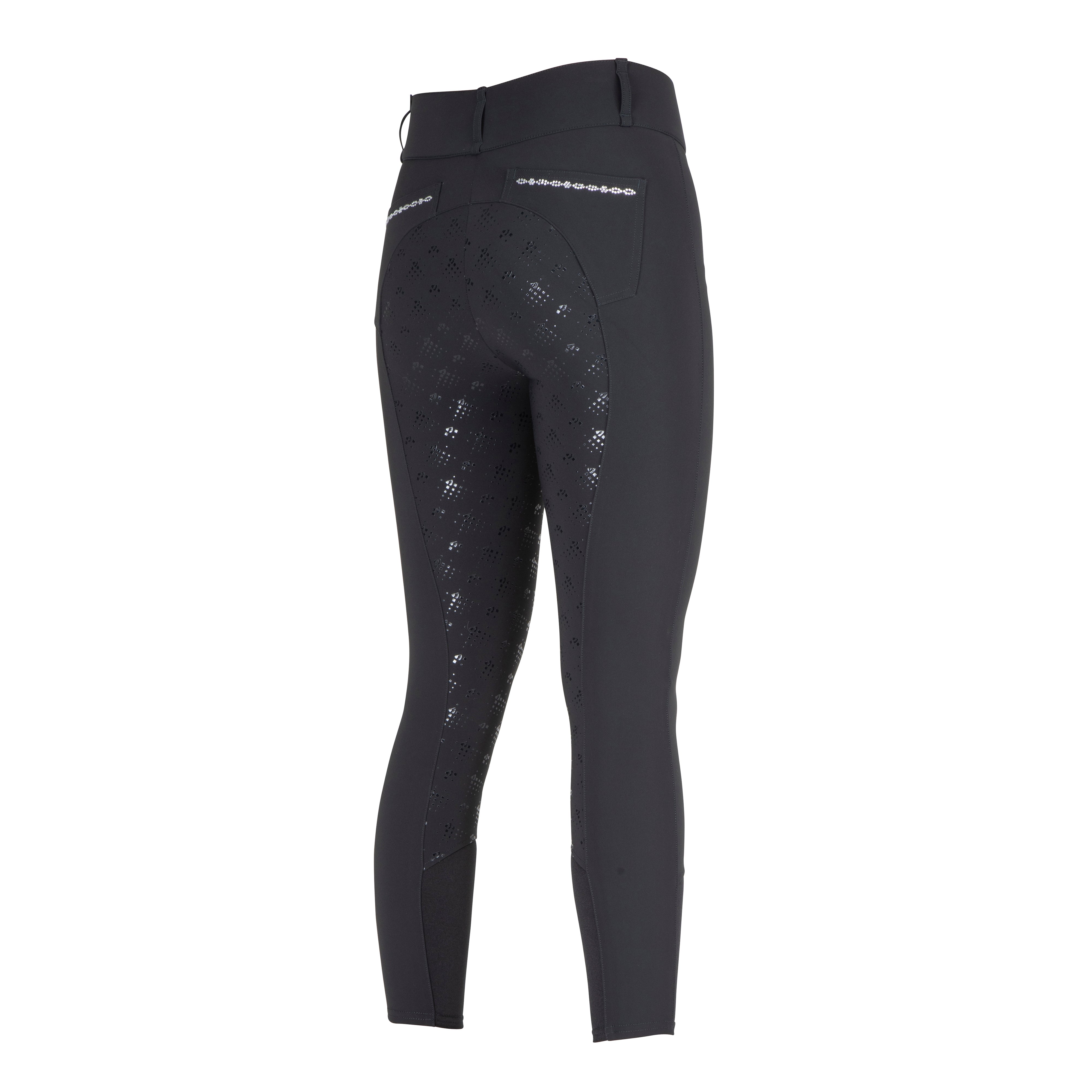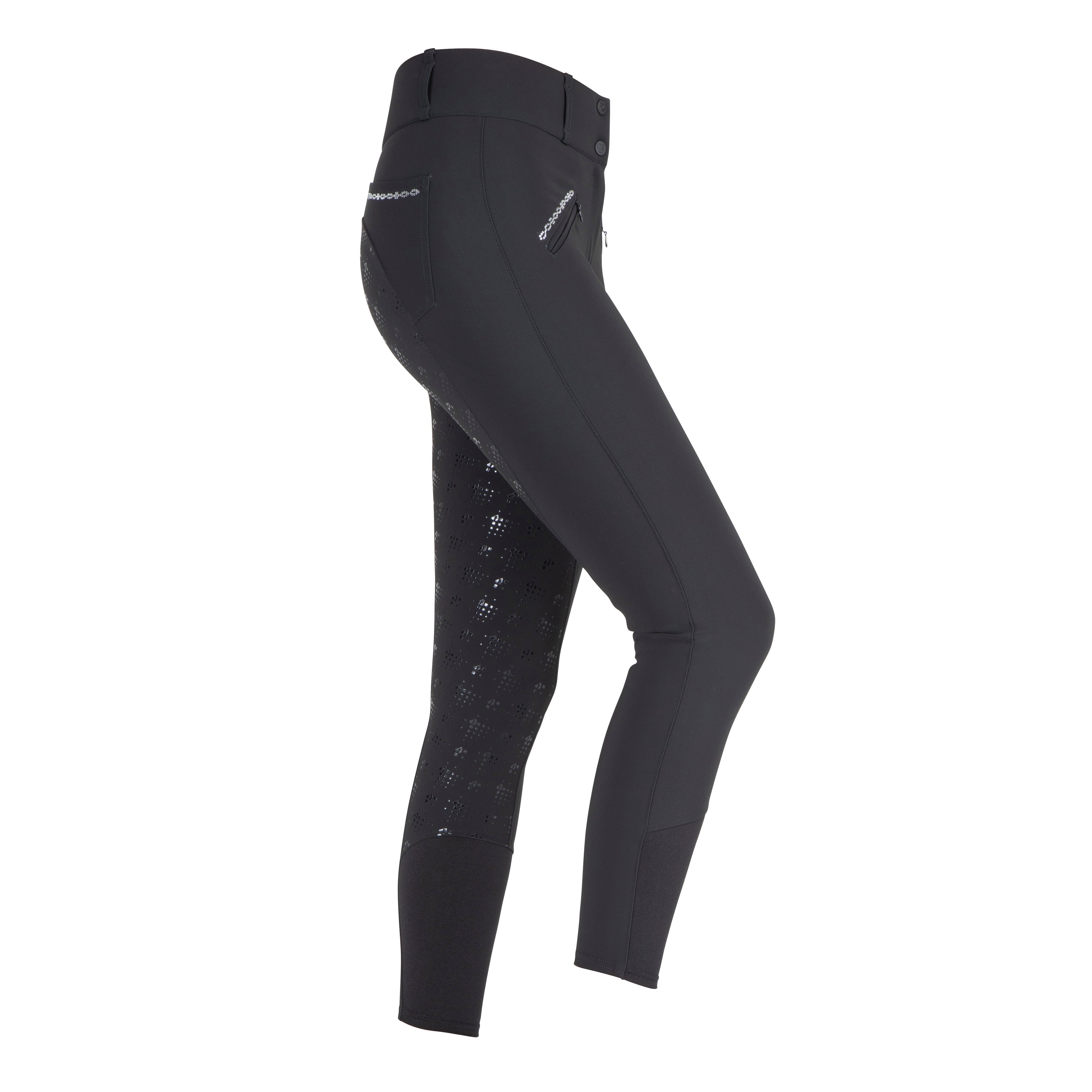 Aubrion Optima breeches are created for elite competition performance using modern design technology, innovative fabrics, and championship ready styling, appealing to riders who demand excellence whilst training or competing. Anatomically cut for the best athletic fit, moisture wicking technology is incorporated into superior figure-enhancing fabric that yields with the rider whilst maintaining a polished, competition-ready look. Sleek LX streamlines detail to draw attention to its standout feature: eye-catching iridescent diamante chains, interlinked and set at the pocket edges for a sophisticated, radiant finish. The legs taper to low profile cuffs for a smooth fit under long riding boots. Neatly finished with a self-colour Aubrion logo at the leg, adding a subtle nod to elevated equestrian design. Further detail: diamante chain embellishment at the pockets, practical zip pockets, rear functional patch pockets, mid rise, twin slide fastenings, zip fly, belt loops, contour seat, full seat silicone grips, high stretch leg cuffs, moisture wicking, quick drying, Aubrion logo print. Designed to comply with GB affiliated competition rules.