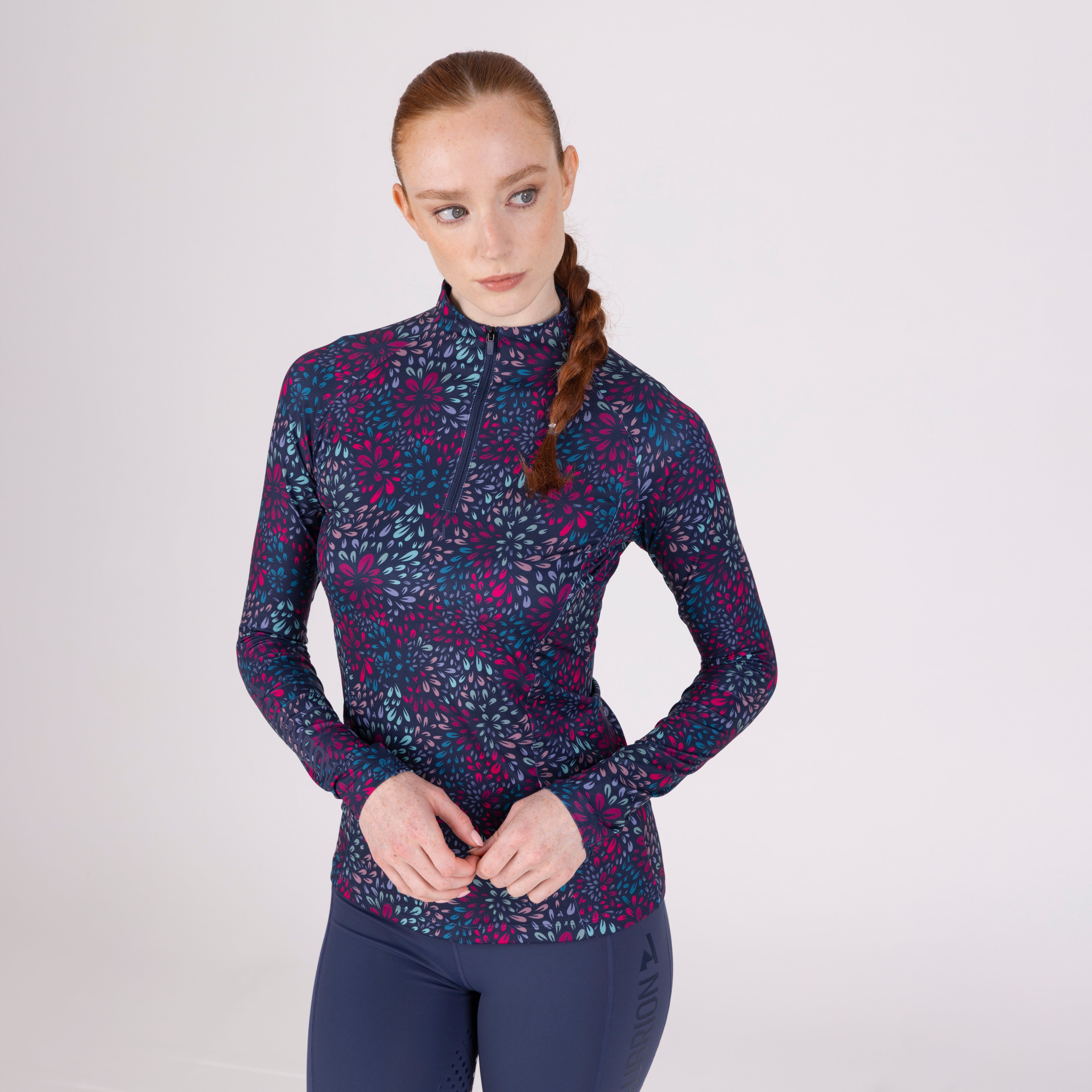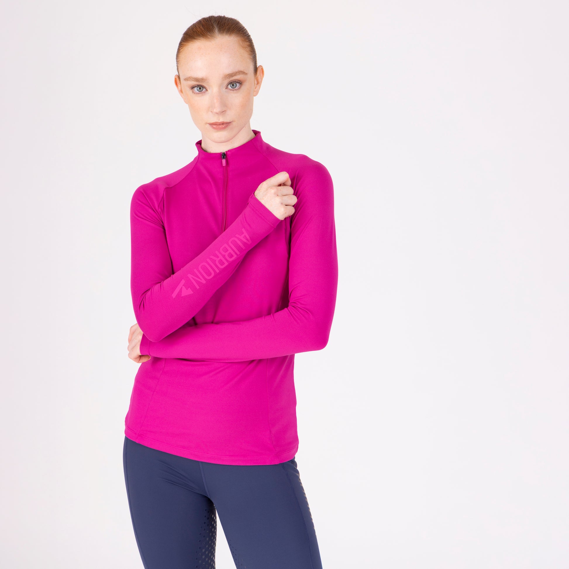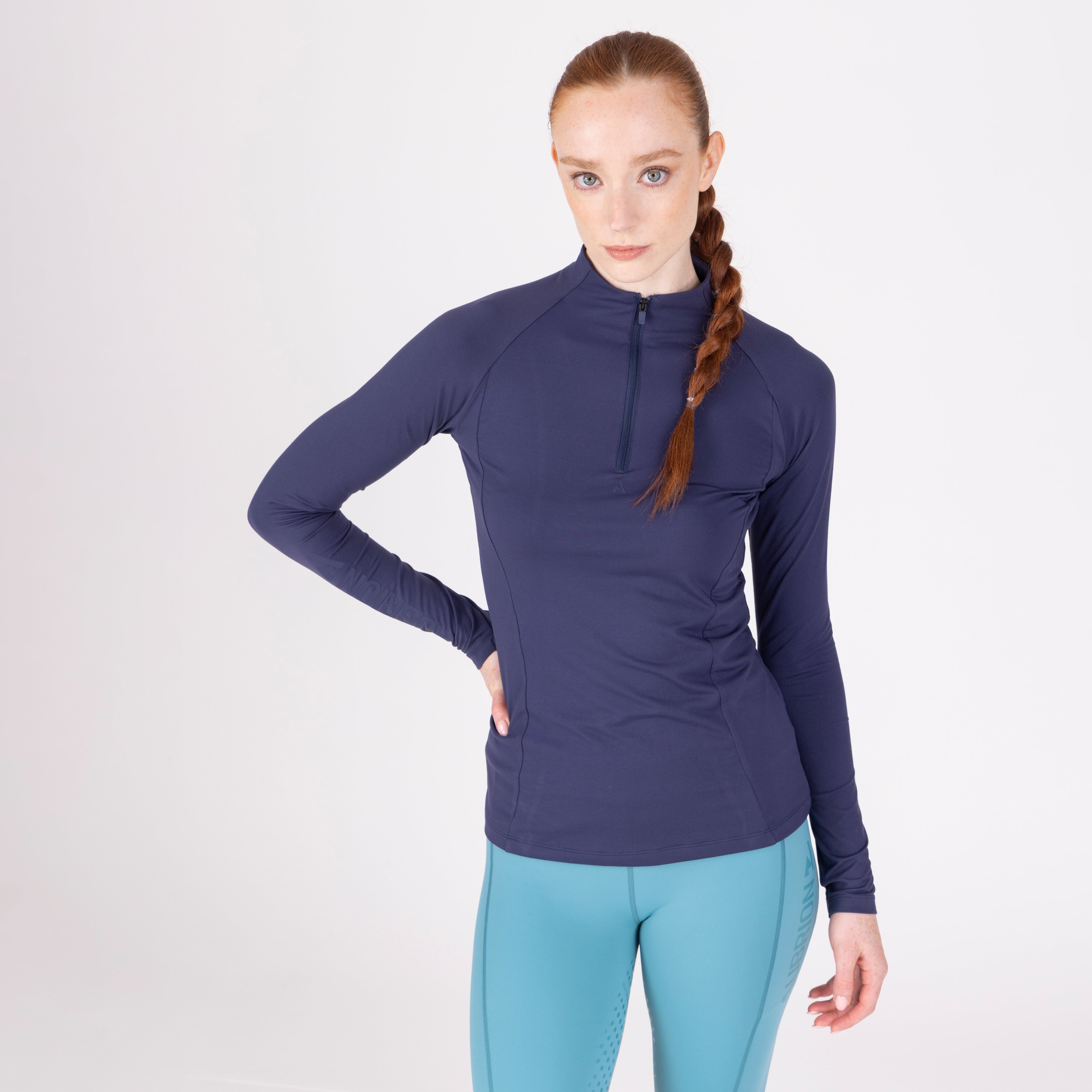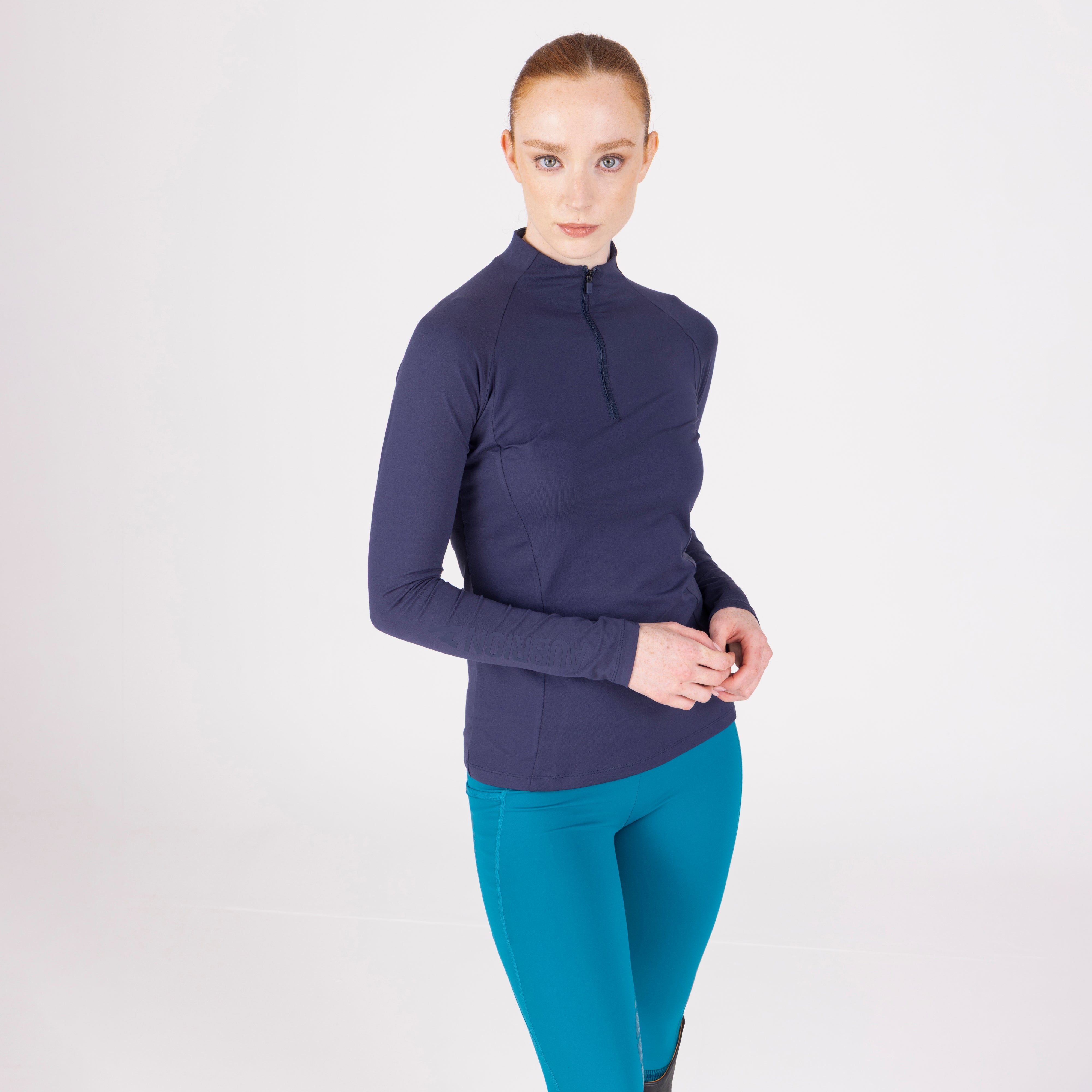 For comfort and coverage, the Aubrion React long sleeve base layer offers climate control and performance support to the active rider. Body fit for a lightweight second-skin feel, core panel construction allows increased motion range without restriction. Moisture management technology ensures a dry, comfortable feel against the body, the 1/4 zip neck increases ventilation when required. Attractively finished with self-colour matt prints. Key features: UPF50+ main fabric, 4-way stretch, rapid-dry moisture management, ¼ zip, chin guard, body fit, monogram brand tab, Aubrion React logo prints.