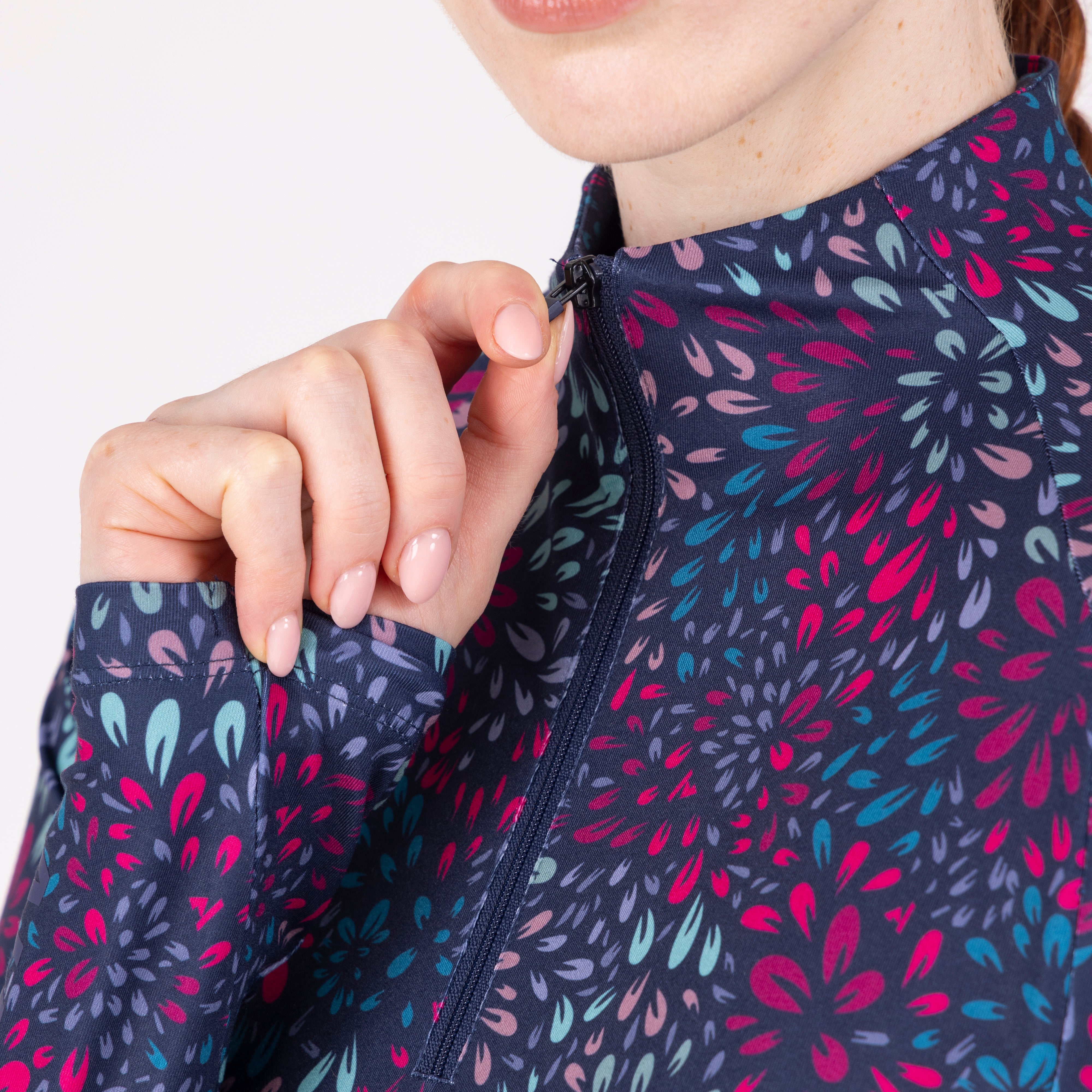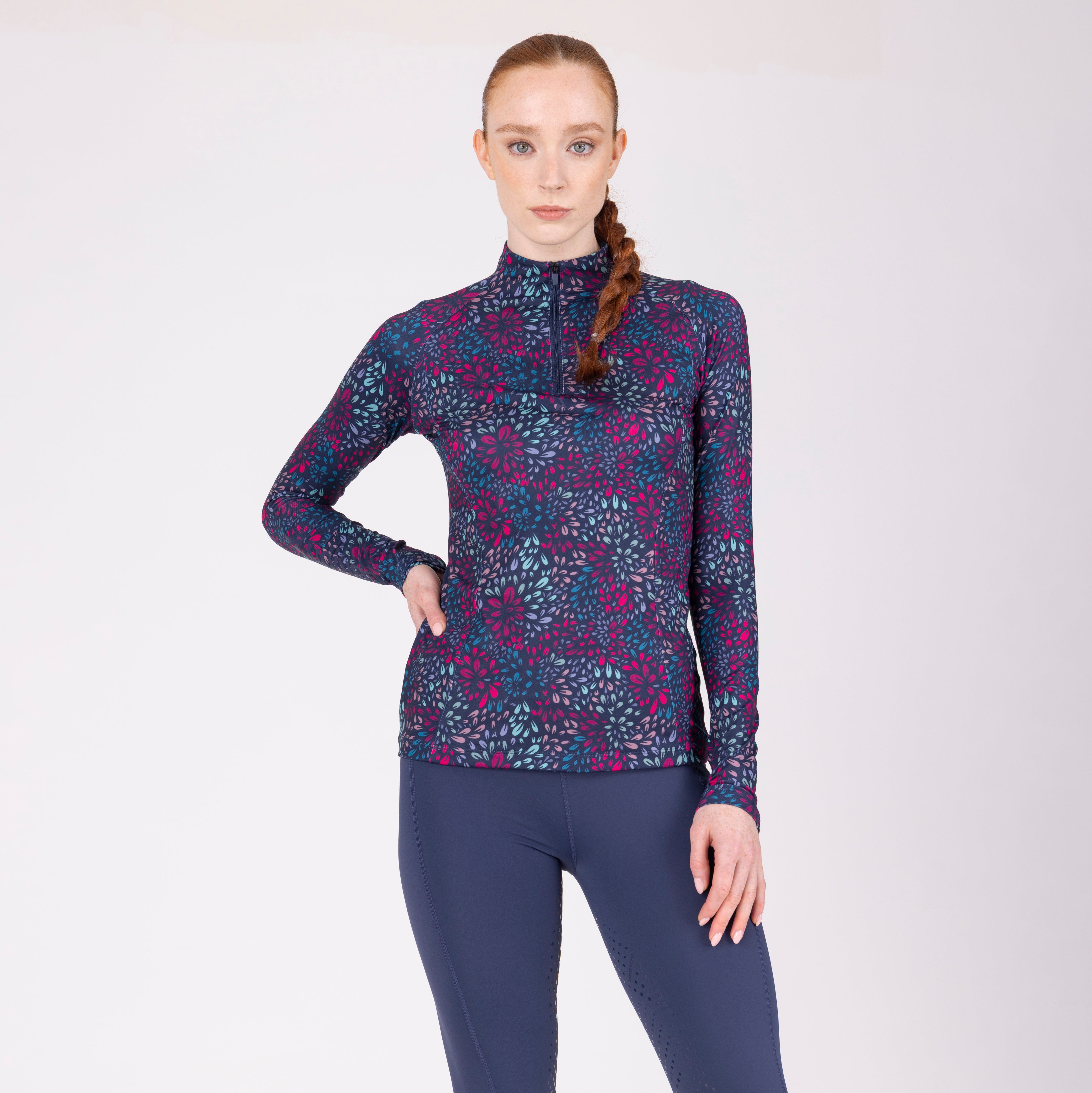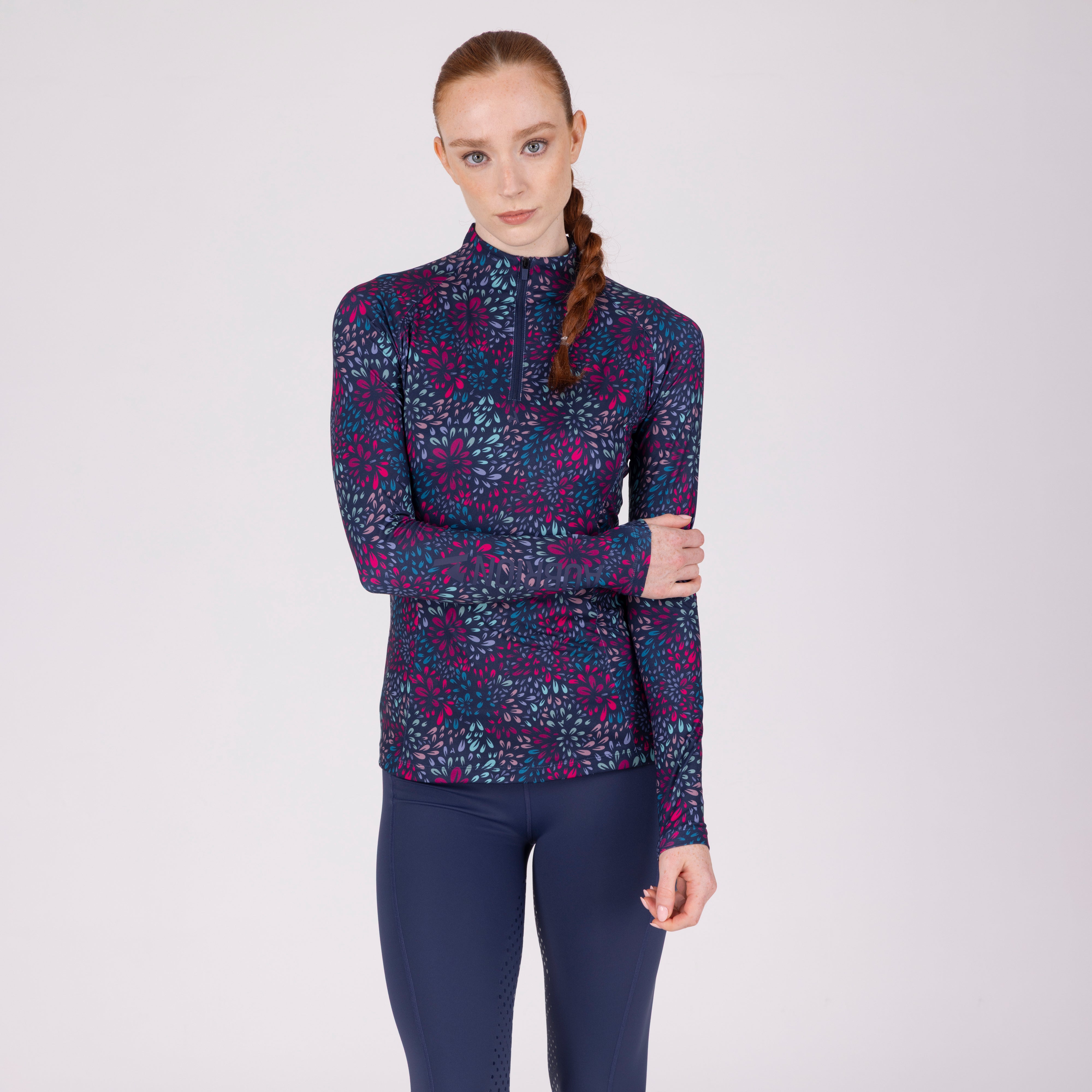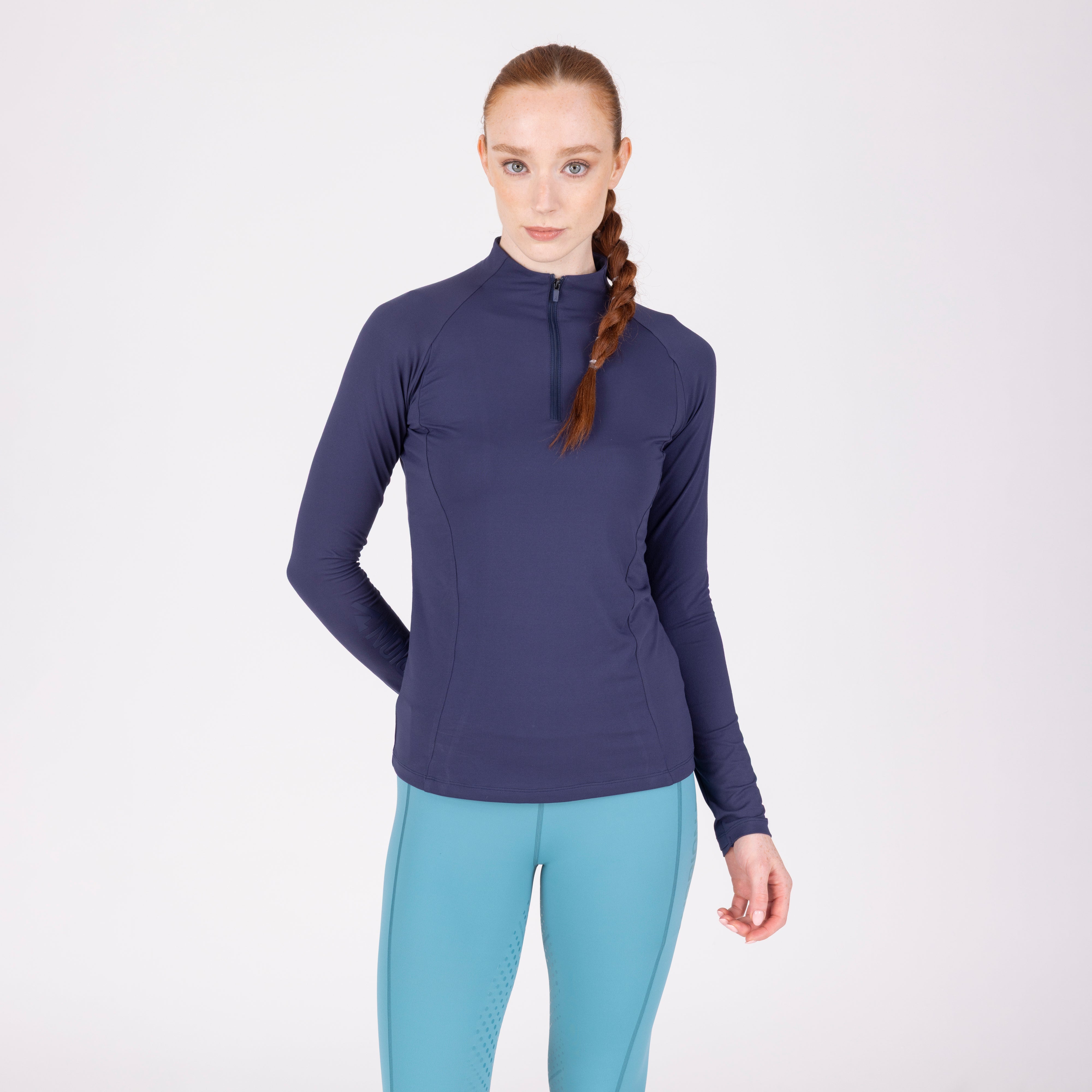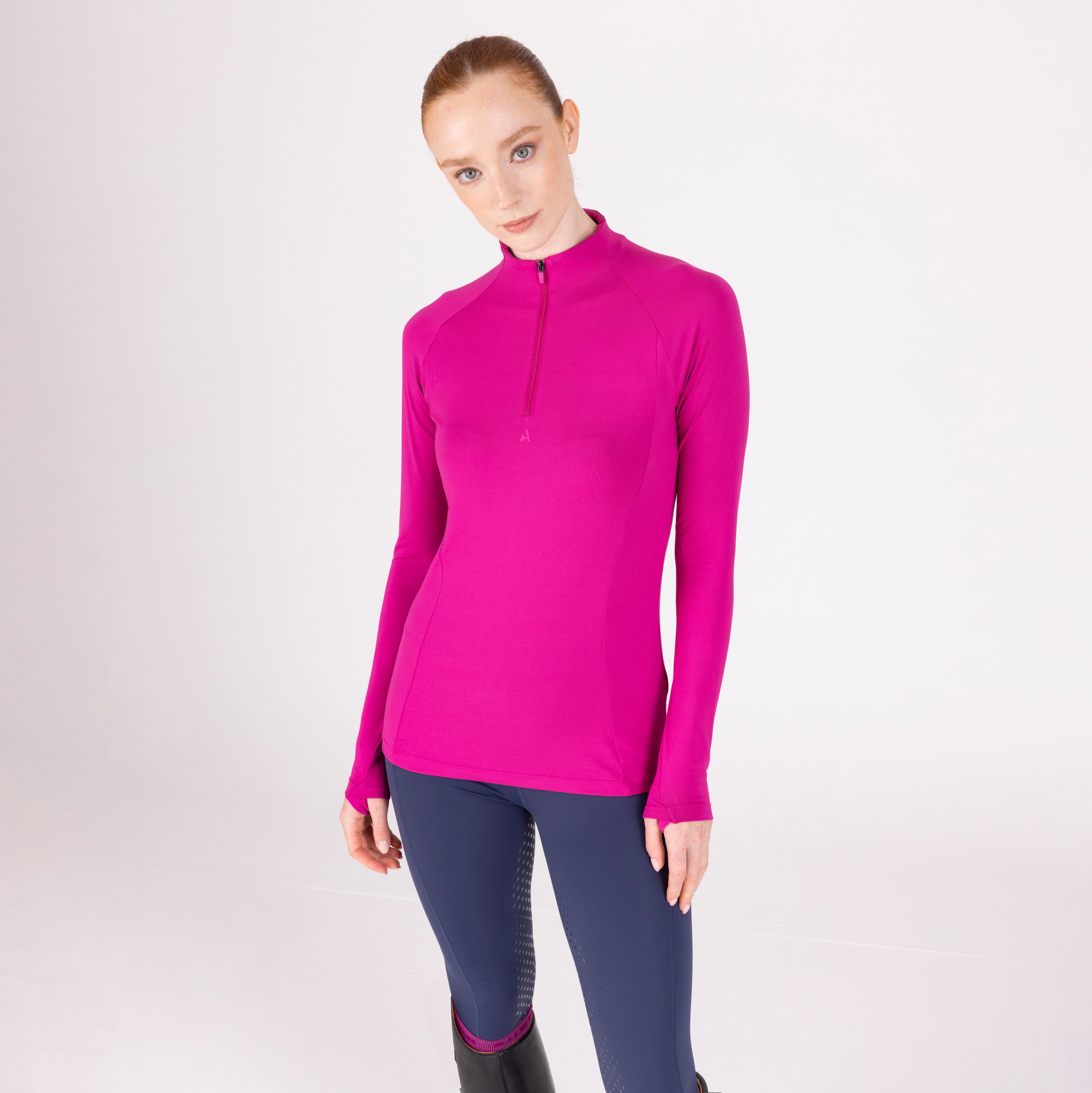 For comfort and coverage, the Aubrion React long sleeve base layer offers climate control and performance support to the active rider. Body fit for a lightweight second-skin feel, core panel construction allows increased motion range without restriction. Moisture management technology ensures a dry, comfortable feel against the body, the 1/4 zip neck increases ventilation when required. Attractively finished with self-colour matt prints. Key features: UPF50+ main fabric, 4-way stretch, rapid-dry moisture management, ¼ zip, chin guard, body fit, monogram brand tab, Aubrion React logo prints.