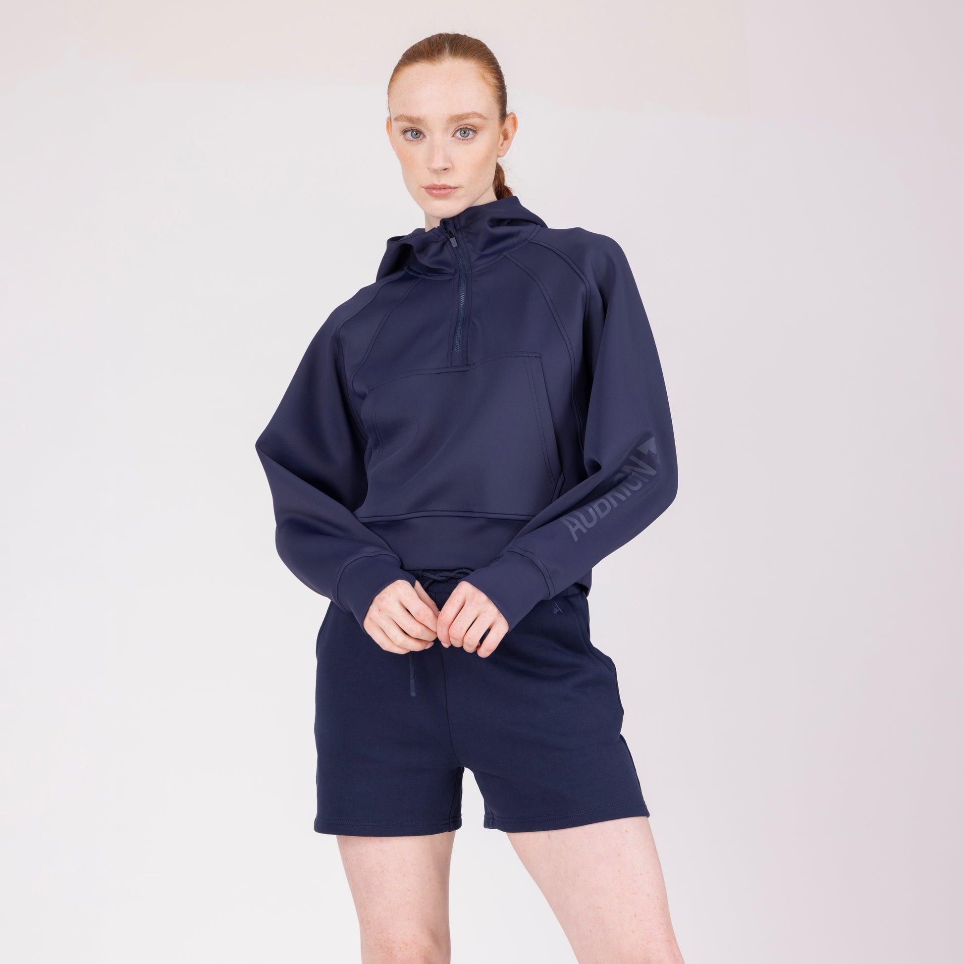 Pull on Aubrion React sweat shorts and you’ll be in full relaxation mode. Horse rider or athlete will appreciate these instantly stylish, easy to wear, easy-care pieces. Slightly oversized, the shorts are styled for a roomy fit in breathable cotton French terry jersey. The elasticated waist features our signature drawcord for adjustability, the side pockets add function. An embroidered logo and the Aubrion woven monogram tab finish the look. Pair with the React sweater or hoodie. Key features: 100% cotton French terry, elasticated waist, adjustable drawcord, relaxed fit, side pockets, monogram brand tab, embroidered Aubrion React logo.