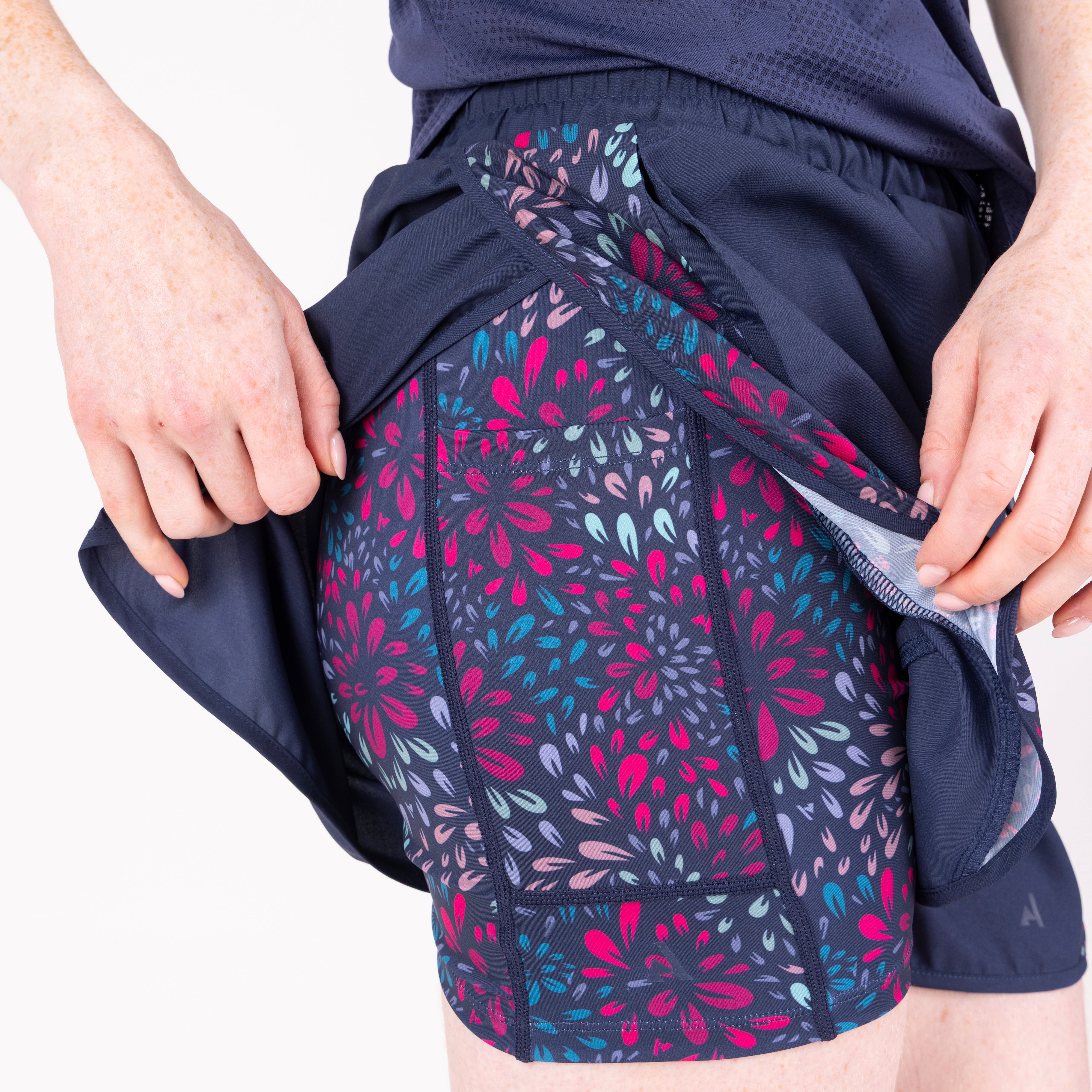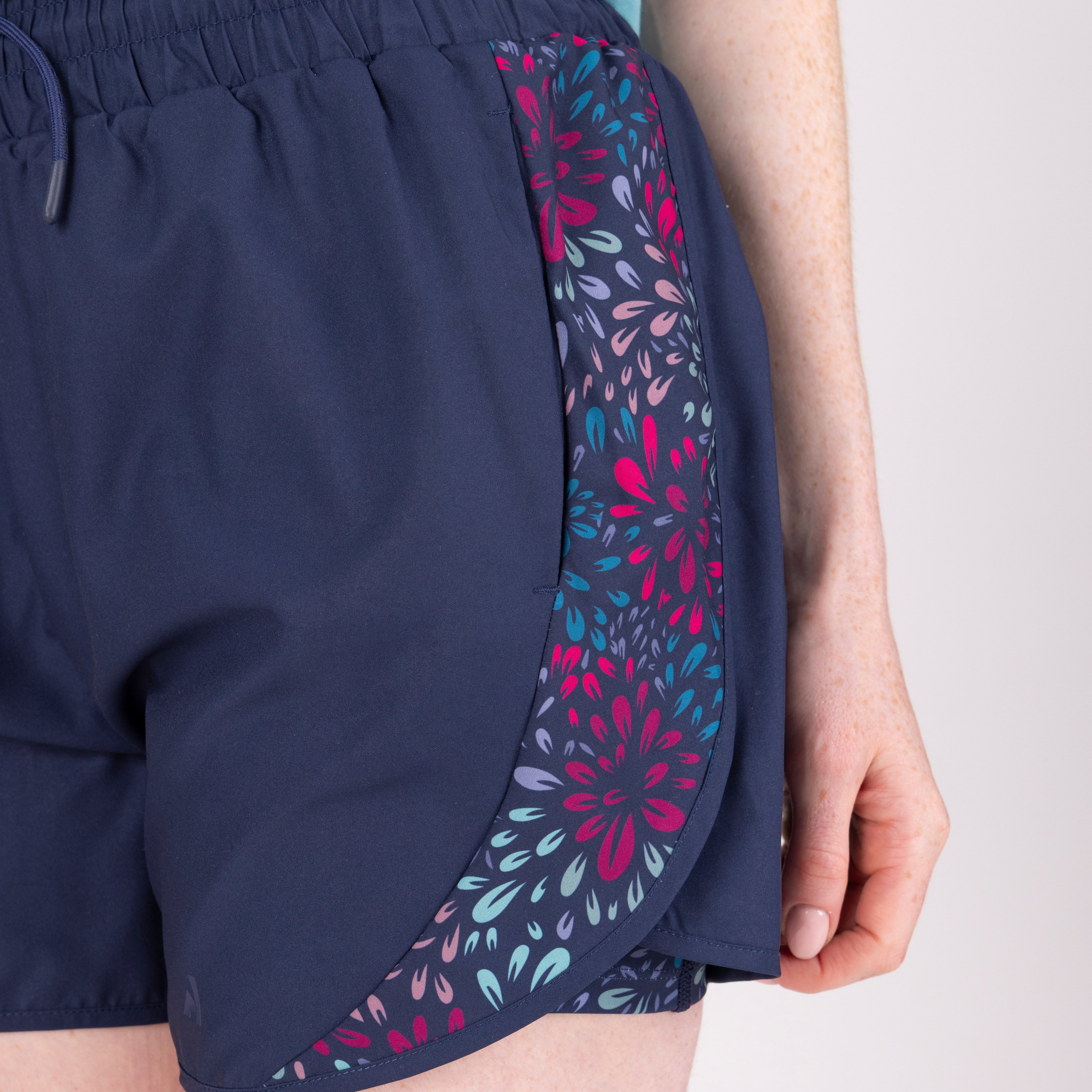 High on comfort with an active sporty style, Aubrion React tech shorts stay comfortable during high intensity training. Flattering outer loose-fitting shorts are layered over close fitting under shorts which have a fluid second-skin feel. Rapid-dry stretch fabric wicks moisture away from the skin to maintain a fresh feel. A thigh phone pocket on the inner shorts offers convenience. Ideal for out of the saddle hybrid-training and warm weather fitness. Key features: loose outer shorts, stretch inner shorts, deep supportive waistband with drawcord, thigh phone pocket, rapid-dry moisture management, comfort seams, Aubrion React logo prints.