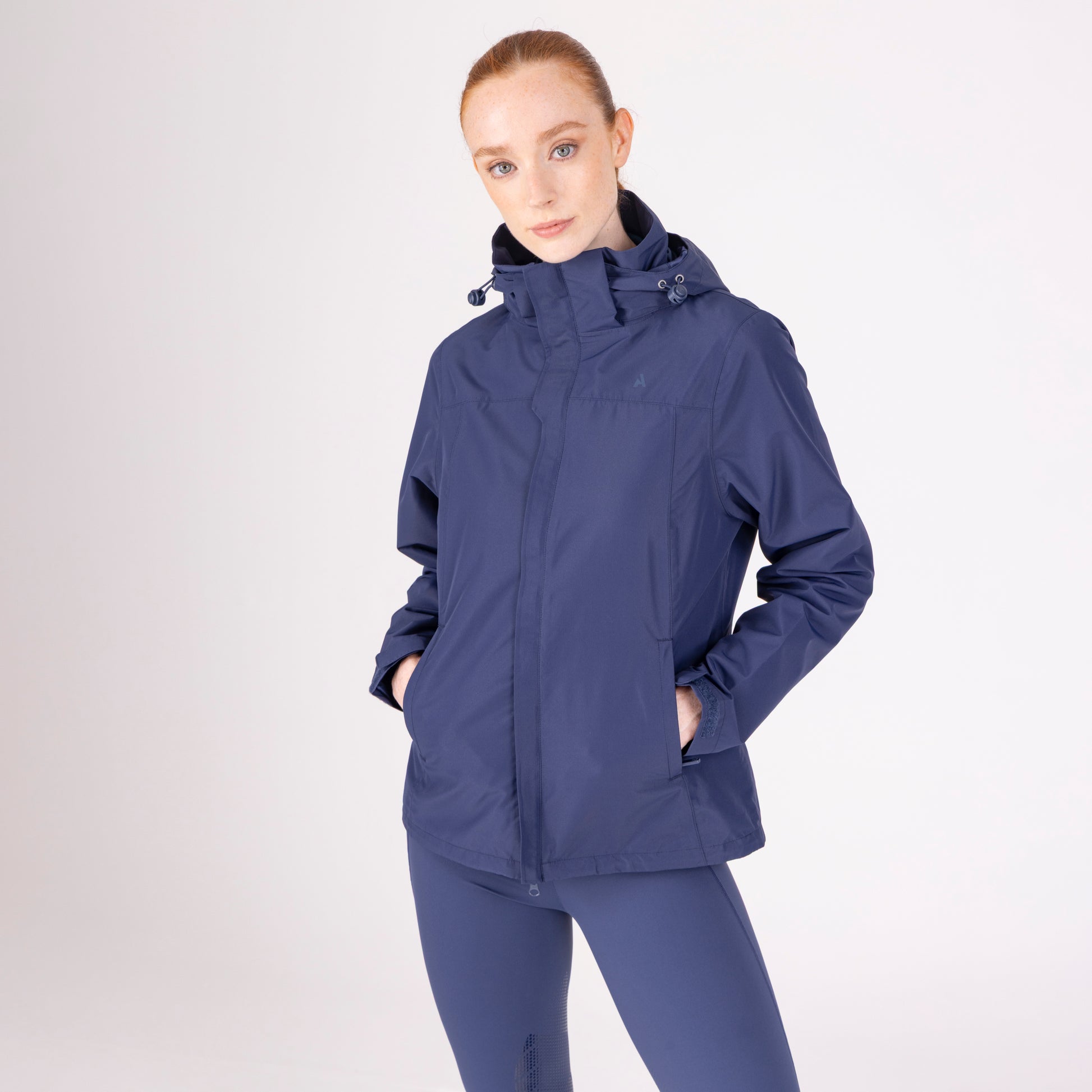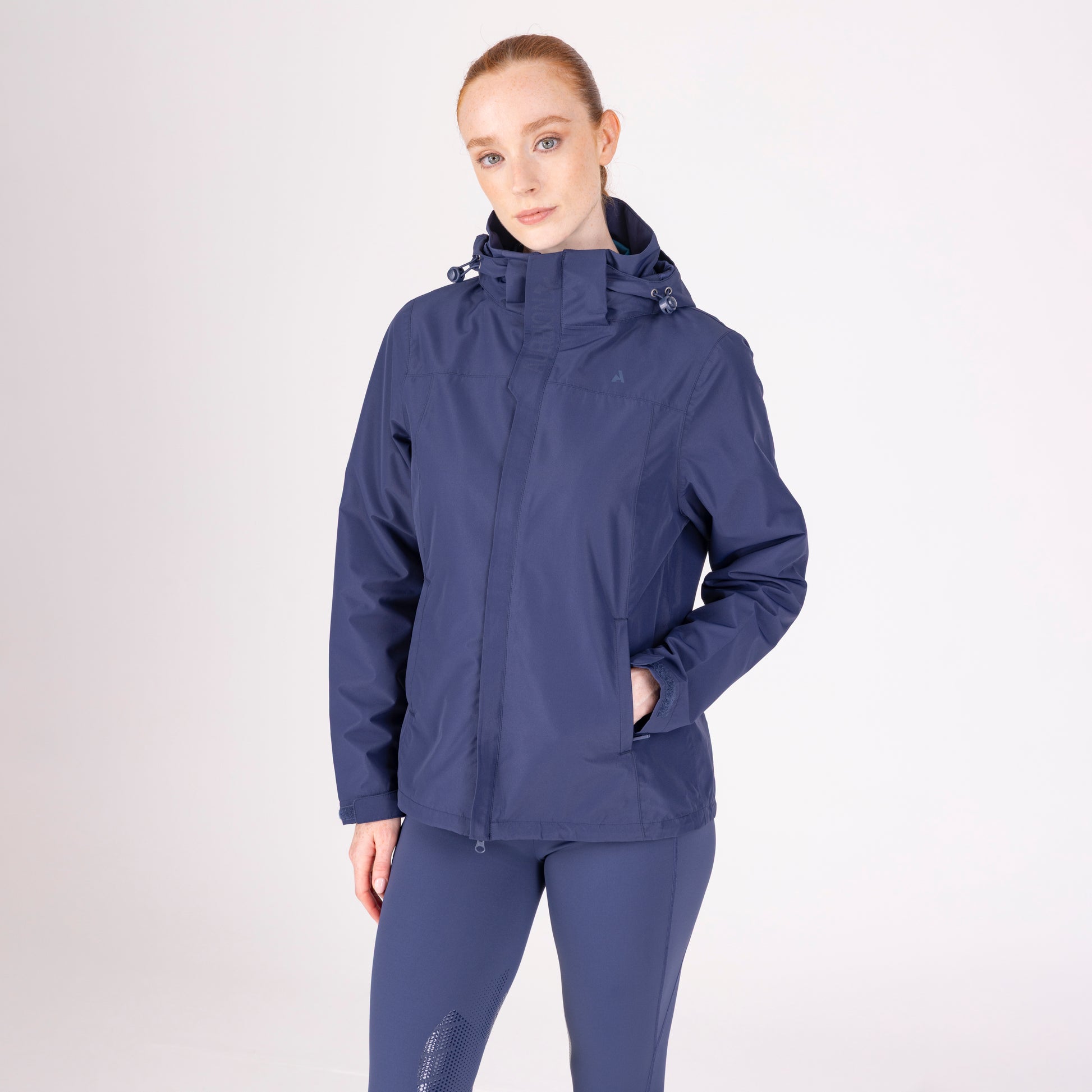 The Aubrion React coat offers high spec waterproofness and breathability with a sustainable eco-friendly finish that encourages rain to run off. The contour fit offers riders plenty of movement without restriction, the two-way zip offers space when seated. The generous hood has draw-cord adjustability and is removable according to the wearer's preference. Together with a storm flap, wrist adjusters and lower hem draw-cord, the jacket provides various wear options to suit changing weather conditions. Fully lined in monogramed satin and elegantly finished with self-colour matt prints and a perforated Aubrion logo. Key features: flattering contour fit, two-way zip, adjustable zip-on/off hood, chin guard, funnel neck, two zip pockets, wrist adjusters, fully lined, perforated brand detail, Aubrion React prints. Waterproof to 10,000mm, Breathable to 6000g/m2. Durable Waterproof Repellent (DWR) prevents saturation - water beads on the fabric and runs off. Made with Bionic-Finish® Eco: fluorine-free water repellent technology.