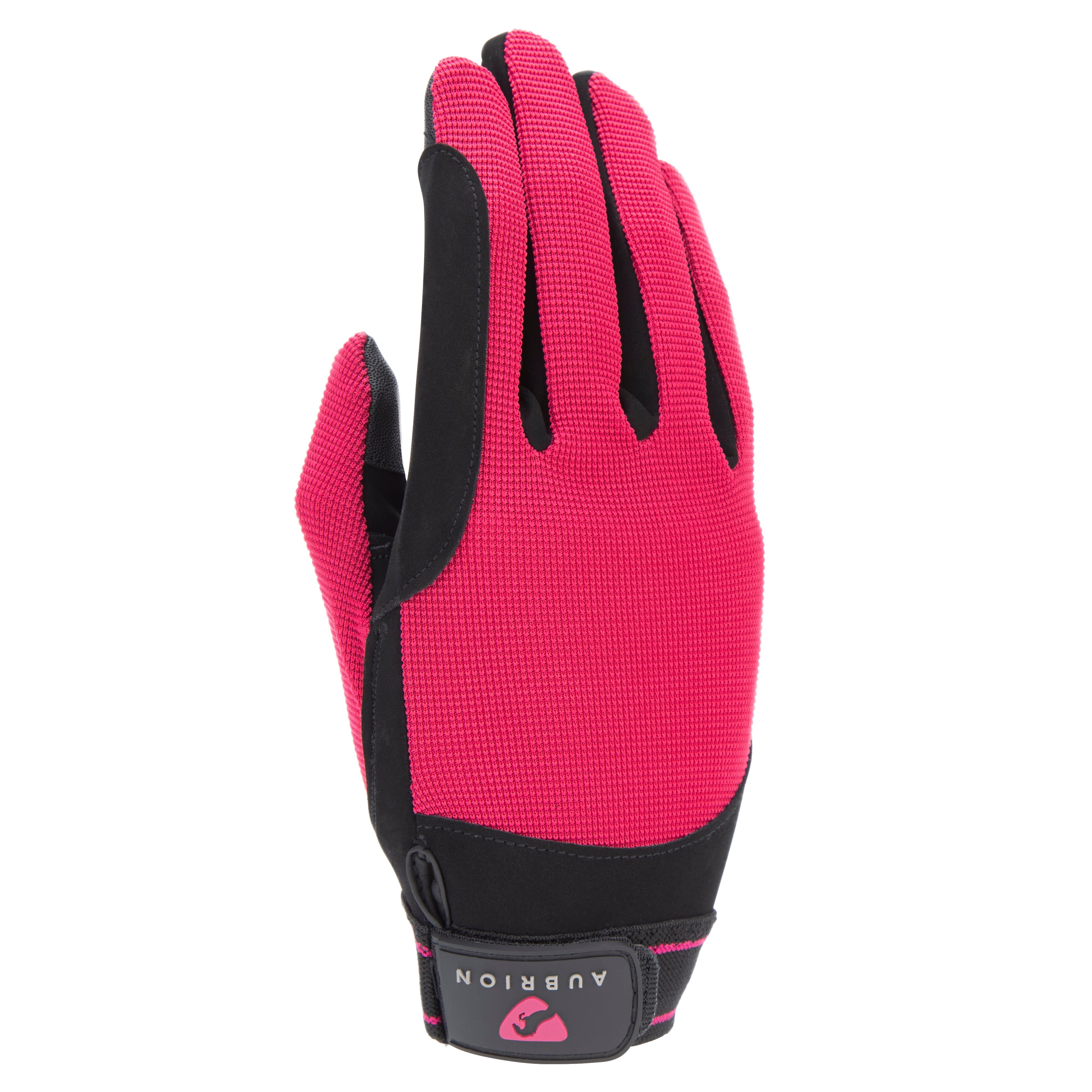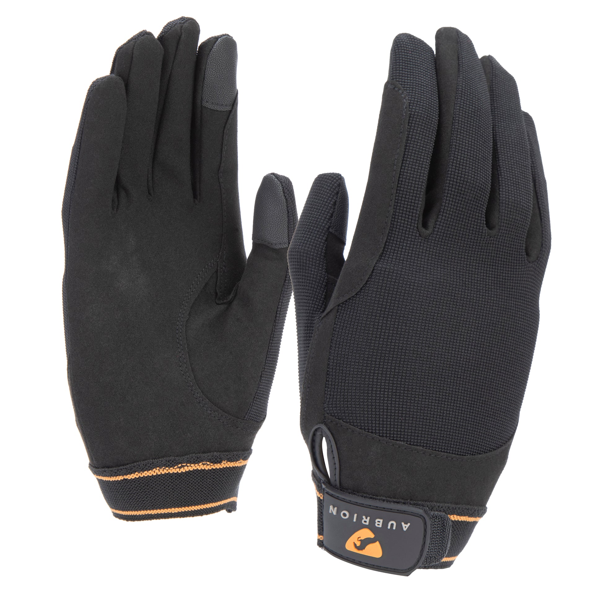 Aubrion Stratos mesh gloves offer the rider a lightweight SportActive fit with essential grip reassurance. Ideal for warmer weather, the open knit back allows heat release to keep hands feeling refreshed and dry. The wet or dry Synergy Grip synthetic suede palm and finger reinforcements offer reliable rein holding whatever the weather. Touchscreen compatible thumb and forefinger tips for use with smart devices. Well-shaped and stretchy with an articulated thumb for great comfort and fit. Stretch wrist with non-scratch touch close fastenings and Aubrion logo tab. White gloves do not feature touchscreen finger and thumb tips.