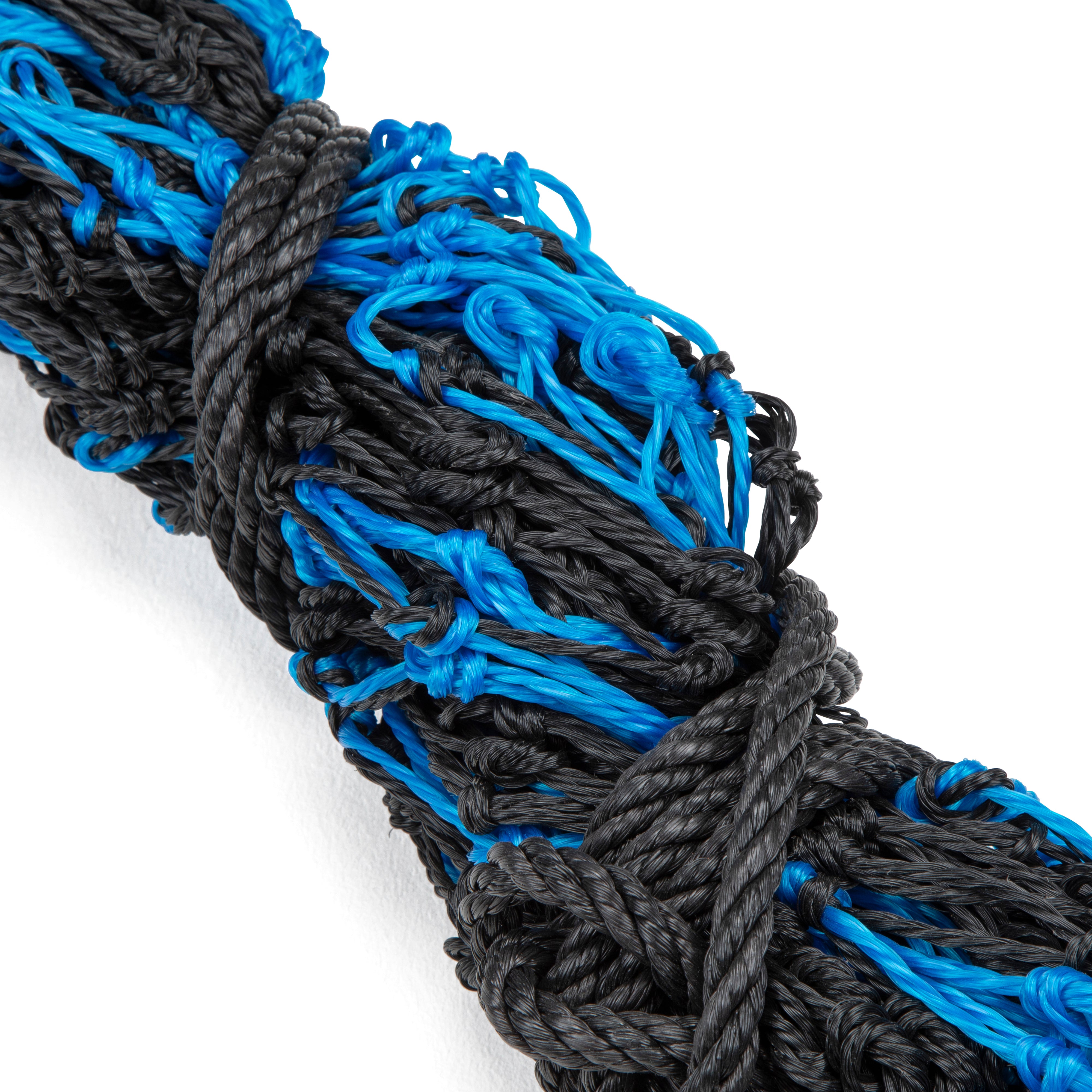 Extra strong Shires haylage net with a large ring at base, strong hanging rope and small holes to make forage last longer. Suitable for haylage or for controlled feeding of hay. Mesh Size: 4.5cm (1.75"). Small: 36" (92cm) long, capacity: 6.5kg, Large: 45" (115cm) long, capacity: 9.5kg. Mesh size can be +/- 0.5cm. Capacities are approximate and given only as a guide to the differences between haynet size.