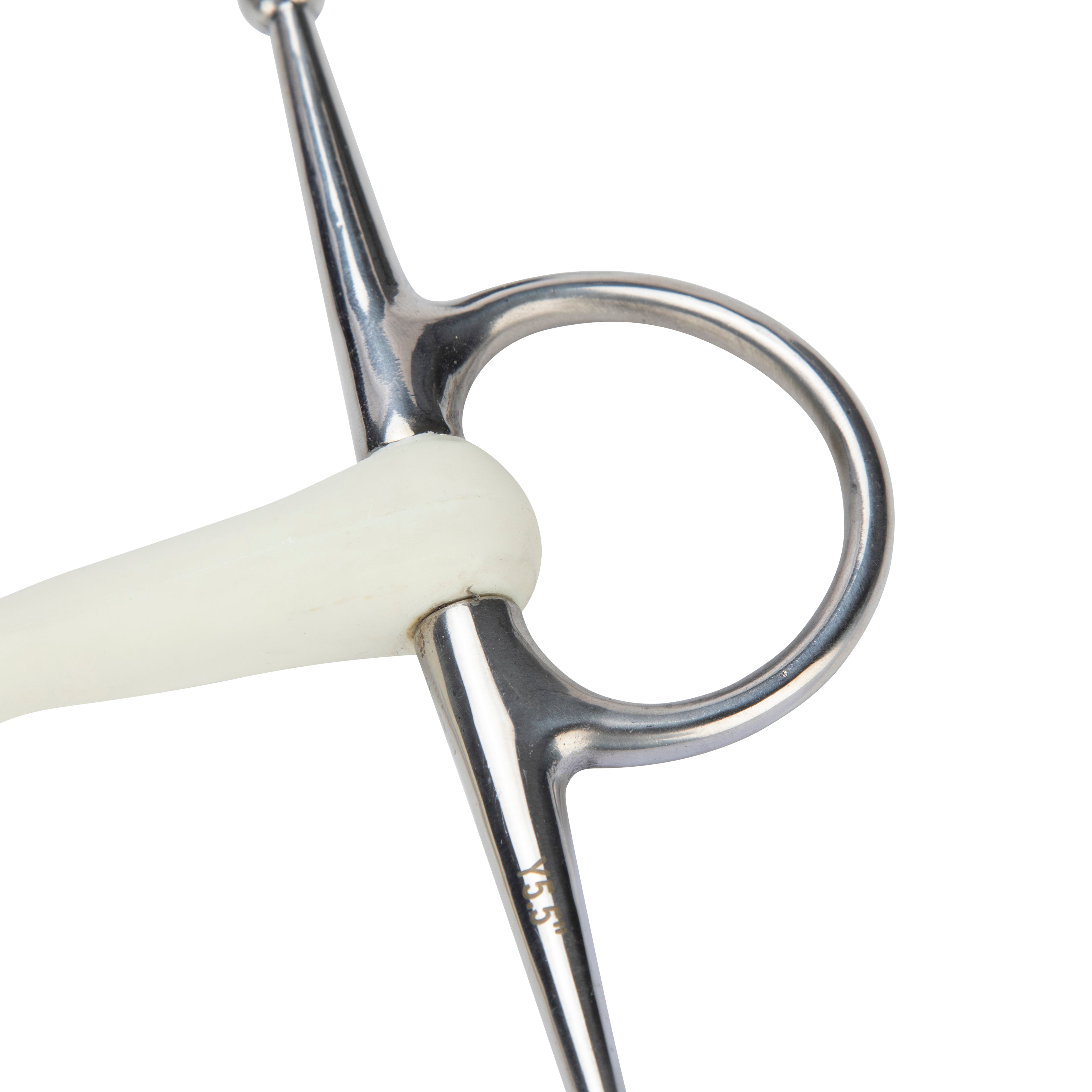 The EquiKind Softie mullen mouth bit is easily accepted, full cheeks help with steering. Mouthpiece thickness: 18mm. Cheek height: 165mm. Stainless steel with EquiKind Softie coating, offers a soft-touch lightweight mouthpiece that warms quickly to the horse's mouth. The supple mouthpiece is kinder, ideal for young horses or those who reject metal.