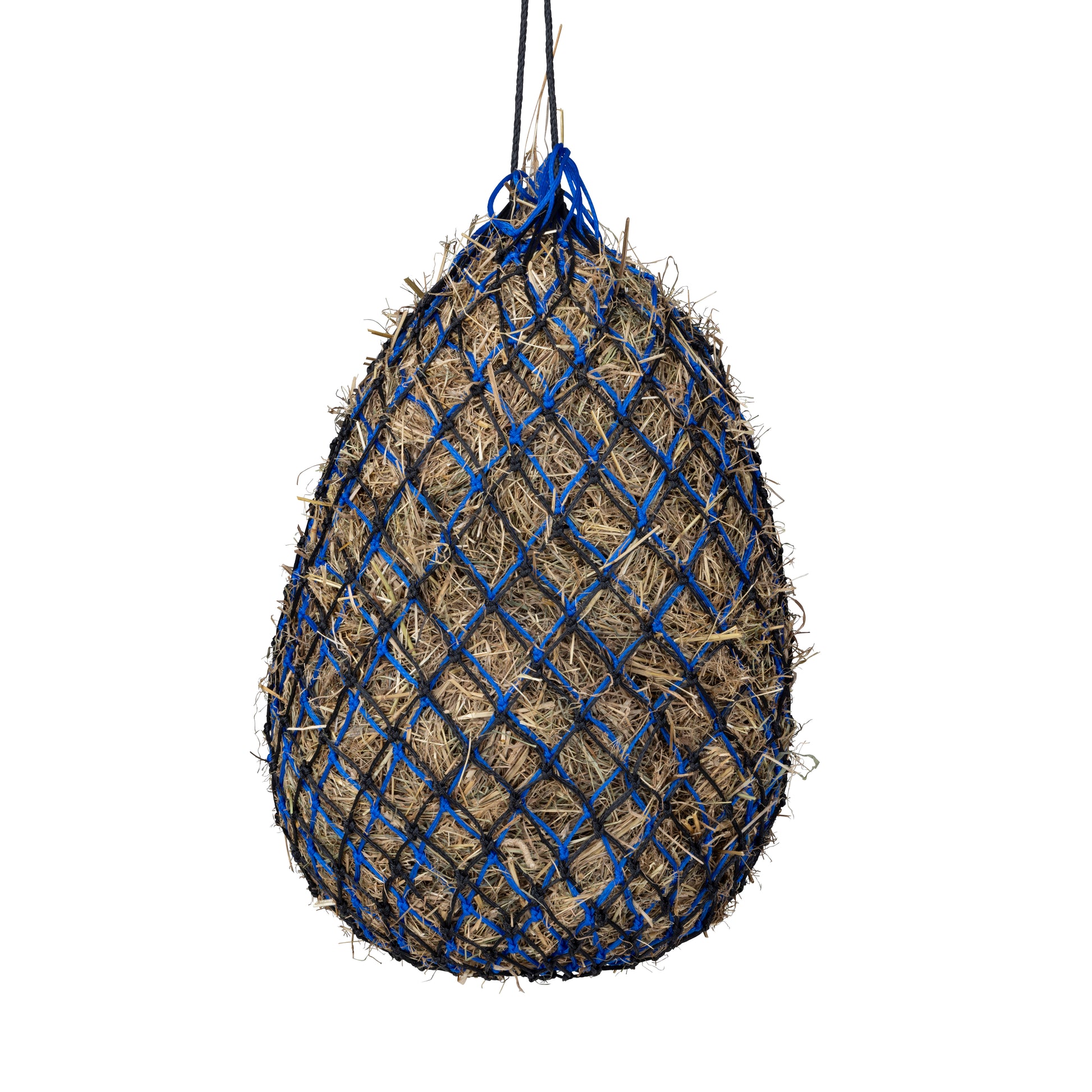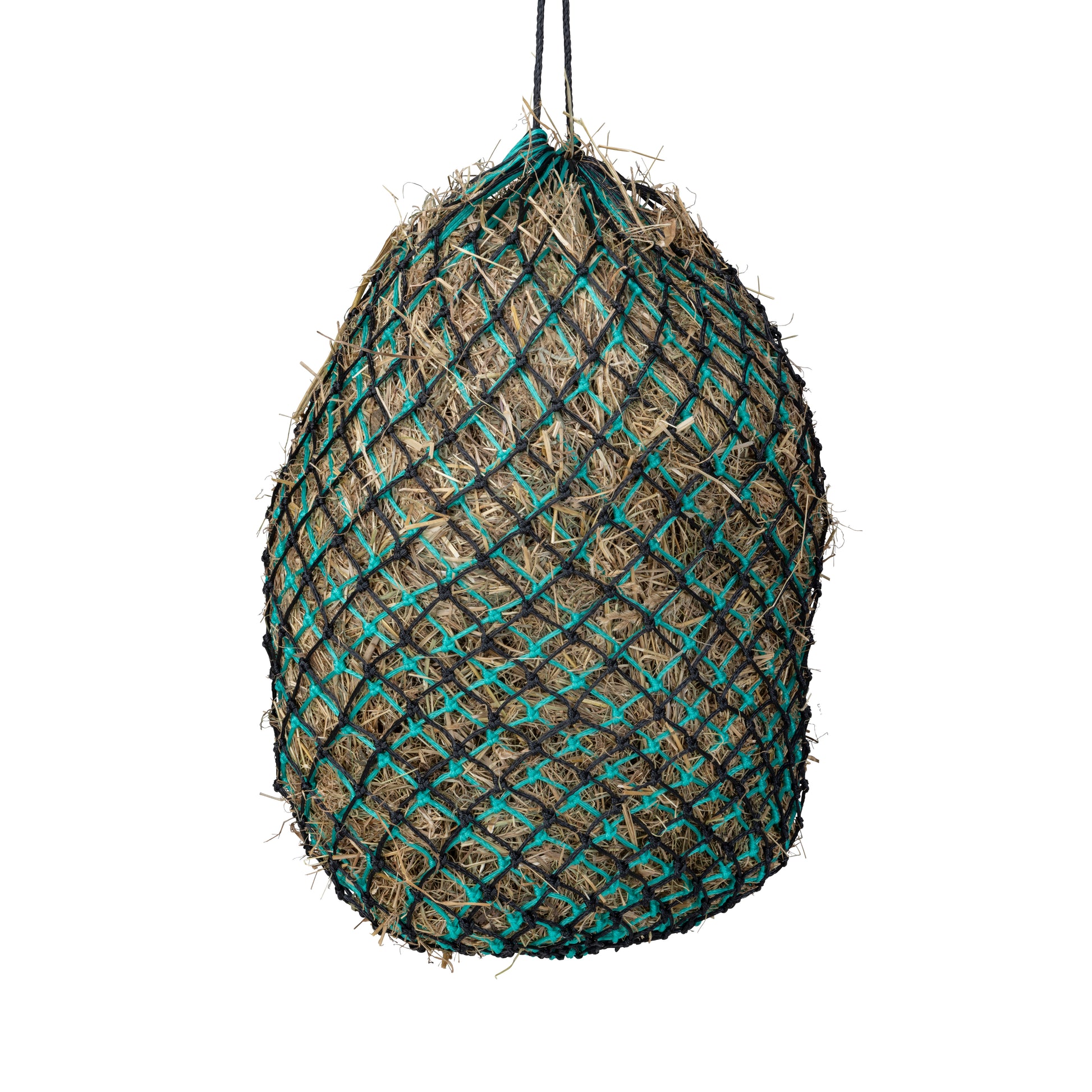 A double layer haynet, the Greedy Feeder Duo aims to increase feeding time by reducing the rate of consumption. The double layer creates a greater resistance to hay release making smaller portion size for each mouthful. Ideal for enthusiastic eaters and for keeping the stabled horse or pony busy for longer. Choose from three colour coded mesh sizes: 1"( Black/Red), 1.5" (Black/Blue) and 2" (Black/Green), depending on feed type or required restriction. Haynet size: 42" (107cm) long, 6.5kg capacity. Mesh size can be +/- 0.5cm. Capacities are approximate and given only as a guide to the differences between haynet size.