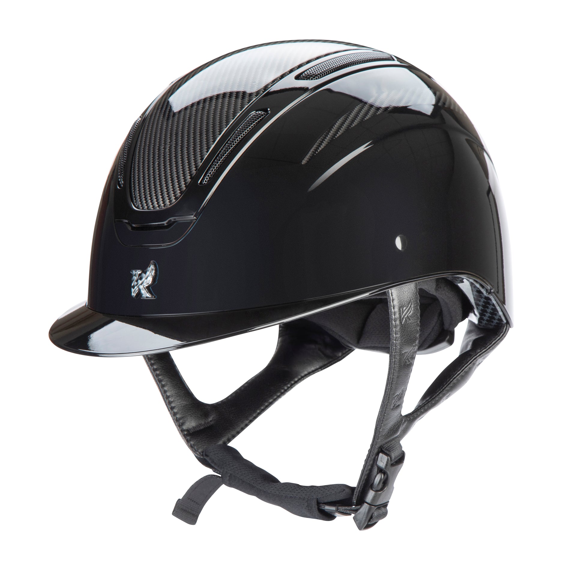 Karben Amity blends top-tier performance and safety with striking personality and style, giving every rider the perfect balance of confidence and comfort. A high gloss frame and peak meet a gloss sculpted shell, accented by the centred Karben insignia – the hallmark of modern safety. ELMT features a graphic print to the centre panel and insignia, finished in high gloss for a unified aesthetic. The AIR-XC System of six outer and ten inner vents work, promote air exchange, removing warm moist air and drawing in fresh air to keep the head comfortable through any ride. Karben hats are thoroughly tested to the latest certifications for horse riding and feature carefully thought through safety and comfort measures to benefit the rider. Finer detail: BESPOKE FIT Micro Adjustable Dial System. PASSIVE AIR-XC SYSTEM channels heat release and ventilation. SHOCK ABSORBING expanded polystyrene inner shell engineered with 10 targeted ventilation shafts. Flexible fixed peak for impact energy absorption. Deeply padded COMFORT LUXE LINER with CoolDryTM headband and THERMOREGULATING 3D mesh crown. Fully adjustable 4-point harness in stretch resistant web with embossed soft faux leather wrapped sides. Quick release buckle. Removable anti-rub chin guard. Machine washable linings. Reusable drawstring storage bag. Amity hats meet the safety requirements of PAS015:2011 and BS EN 1384:2023 with the CE mark and BSI Kitemark.