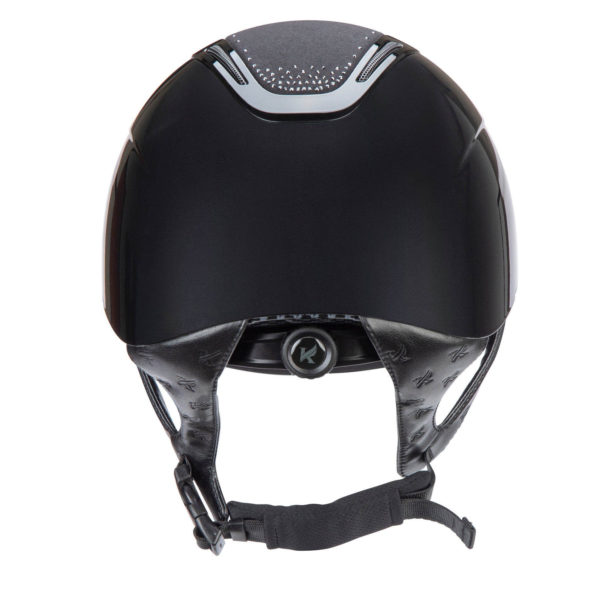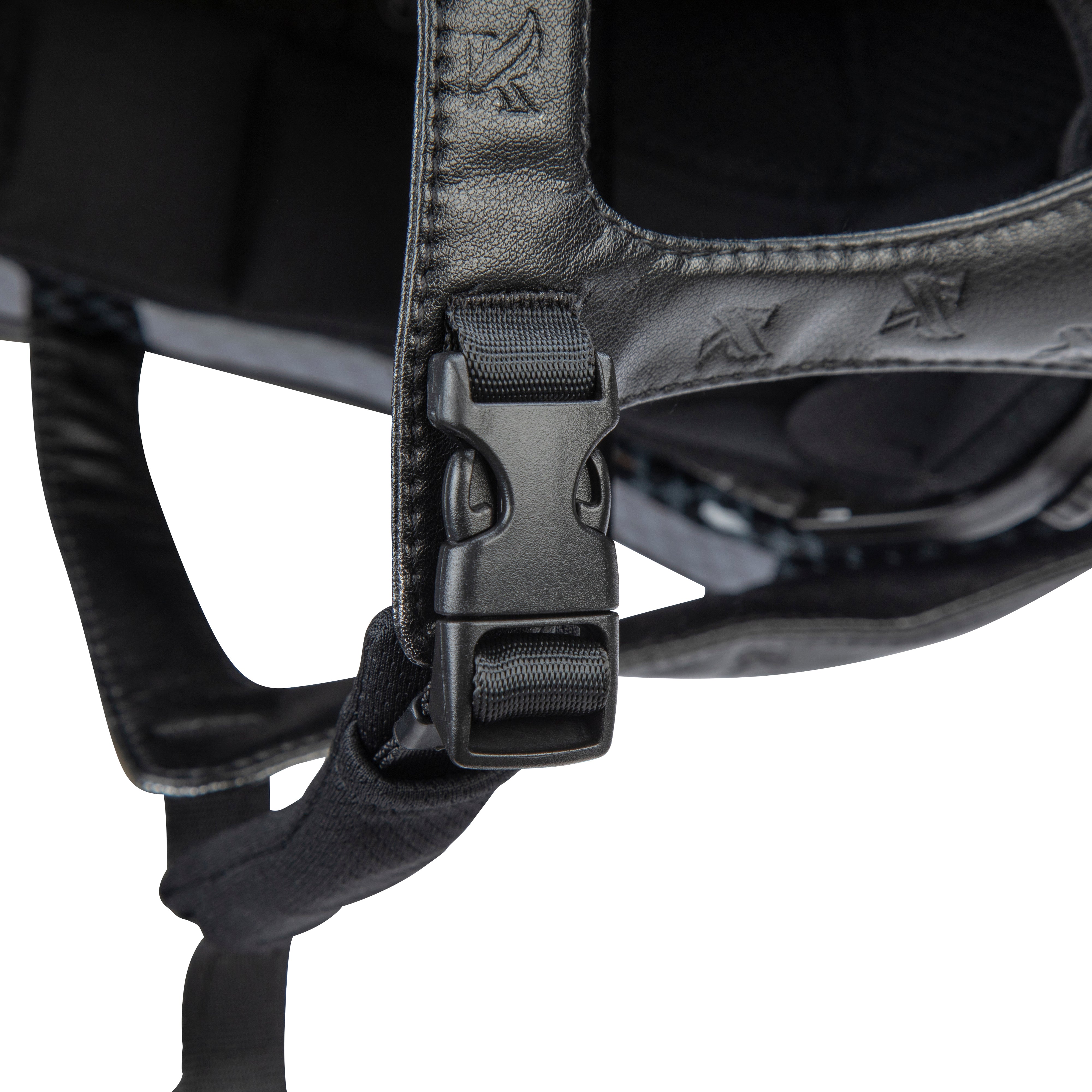 Karben Amity blends top-tier performance and safety with striking personality and style, giving every rider the perfect balance of confidence and comfort. A high gloss frame and peak meet a gloss sculpted shell, accented by the centred Karben insignia – the hallmark of modern safety. SPKL features tonal diamante detail at the crown, perfectly set off by the matt microfibre crown and followed through in the insignia for extra glitz. The AIR-XC System of six outer and ten inner vents work, promote air exchange, removing warm moist air and drawing in fresh air to keep the head comfortable through any ride. Karben hats are thoroughly tested to the latest certifications for horse riding and feature carefully thought through safety and comfort measures to benefit the rider. Finer detail: BESPOKE FIT Micro Adjustable Dial System. PASSIVE AIR-XC SYSTEM channels heat release and ventilation. SHOCK ABSORBING expanded polystyrene inner shell engineered with 10 targeted ventilation shafts. Flexible fixed peak for impact energy absorption. Deeply padded COMFORT LUXE LINER with CoolDryTM headband and THERMOREGULATING 3D mesh crown. Fully adjustable 4-point harness in stretch resistant web with embossed soft faux leather wrapped sides. Quick release buckle. Removable anti-rub chin guard. Machine washable linings. Reusable drawstring storage bag. Amity hats meet the safety requirements of PAS015:2011 and BS EN 1384:2023 with the CE mark and BSI Kitemark.