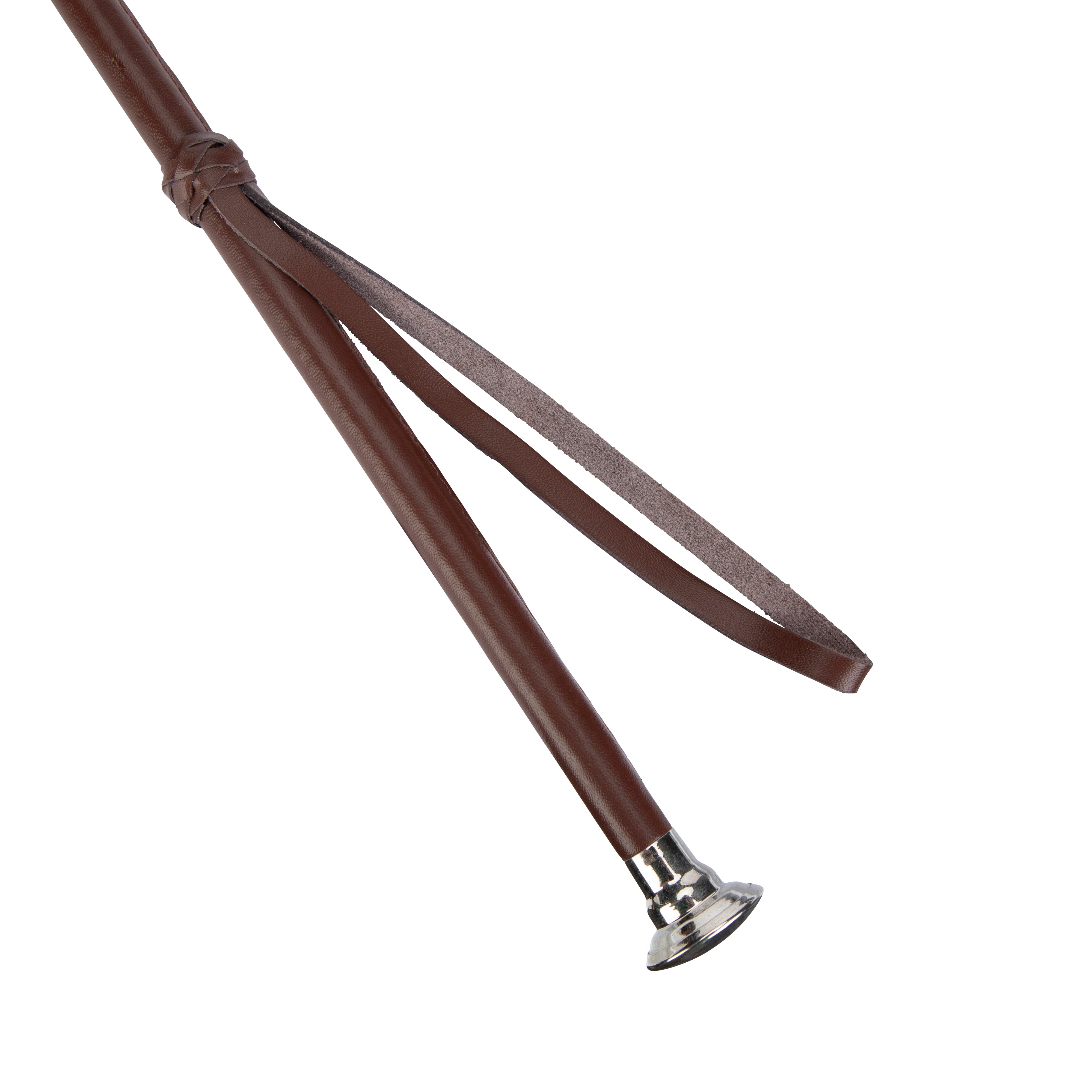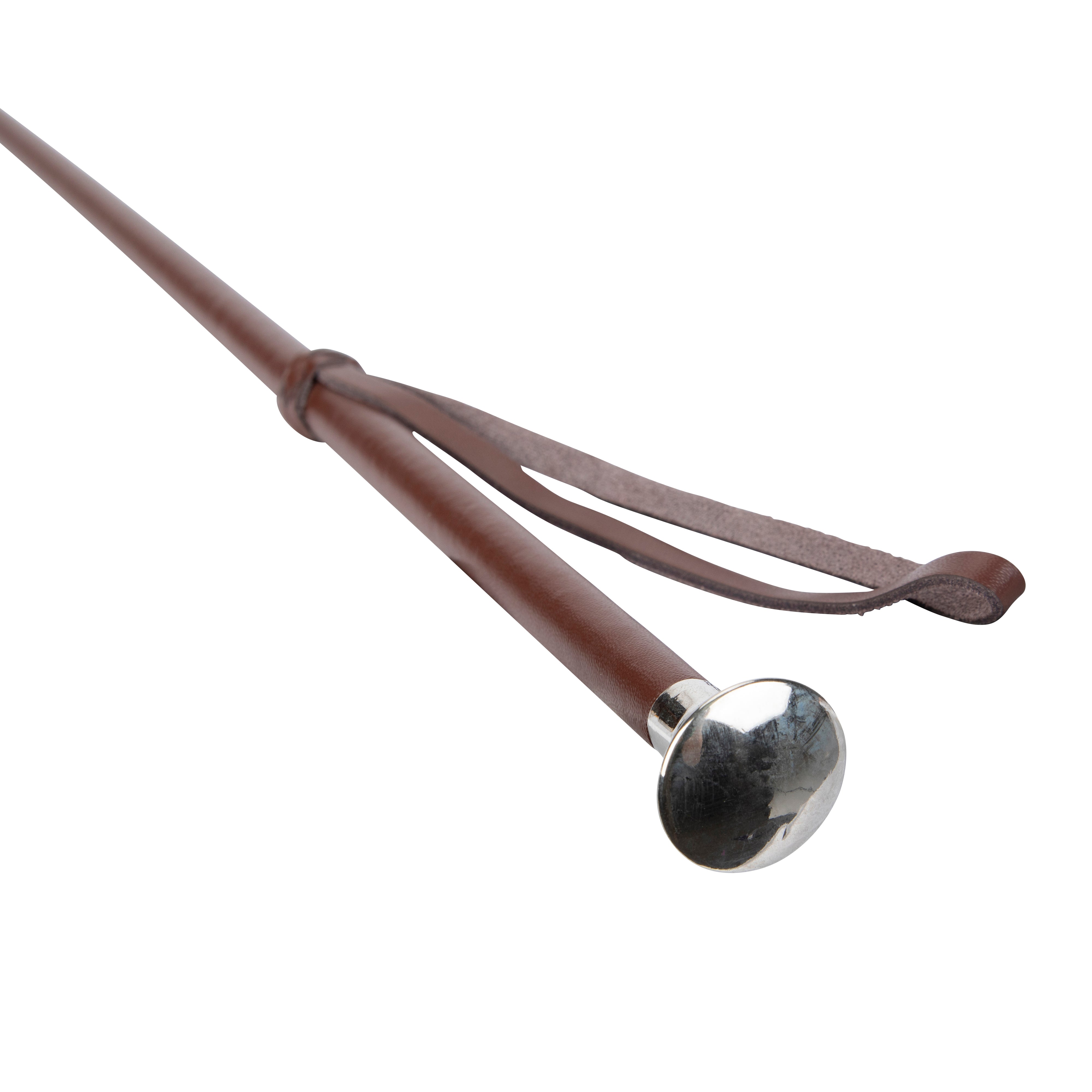 Quality leather covered whip, smart looking for the show ring. Topped with a silver coloured mushroom cap and leather wrist loop. Length: 24" (60cm).