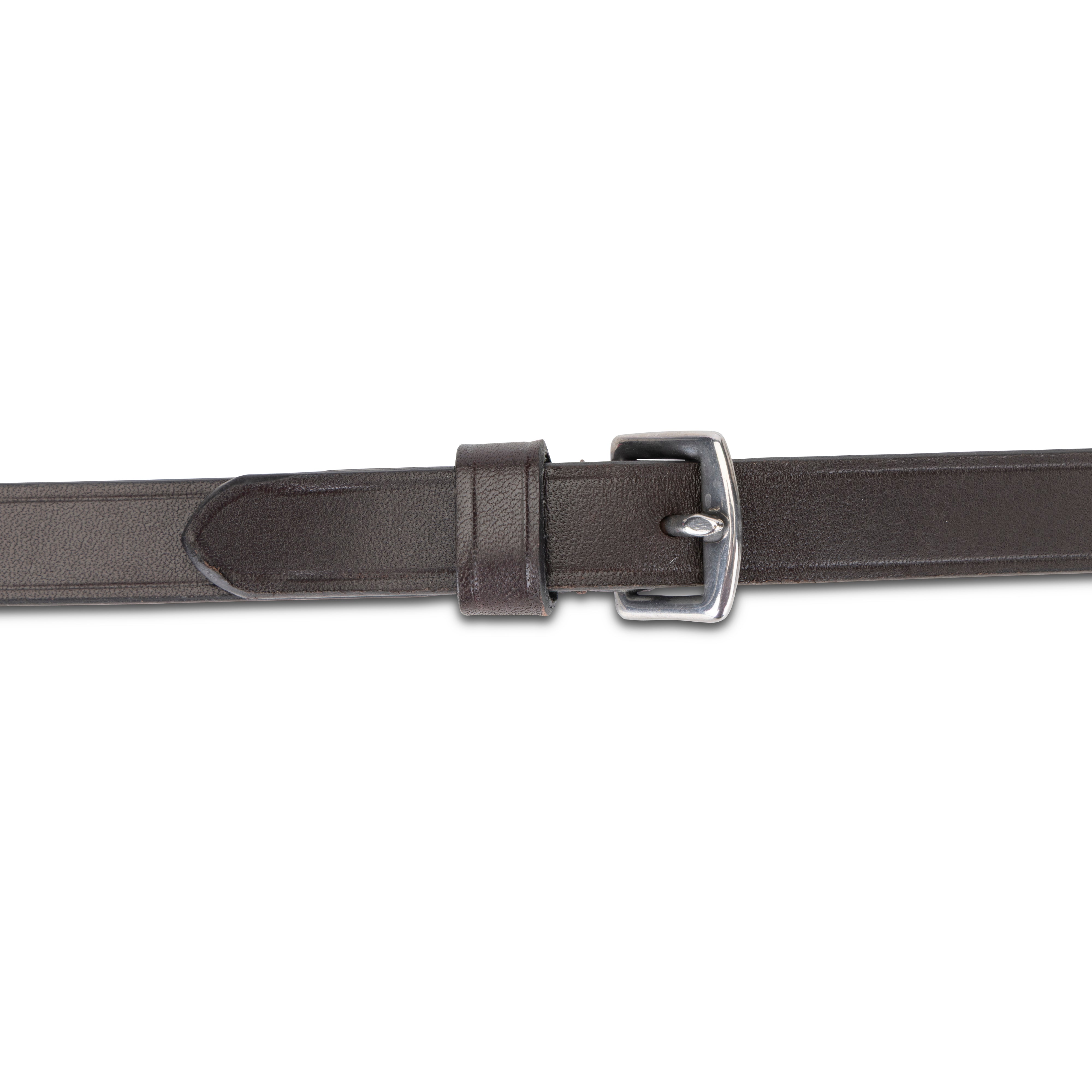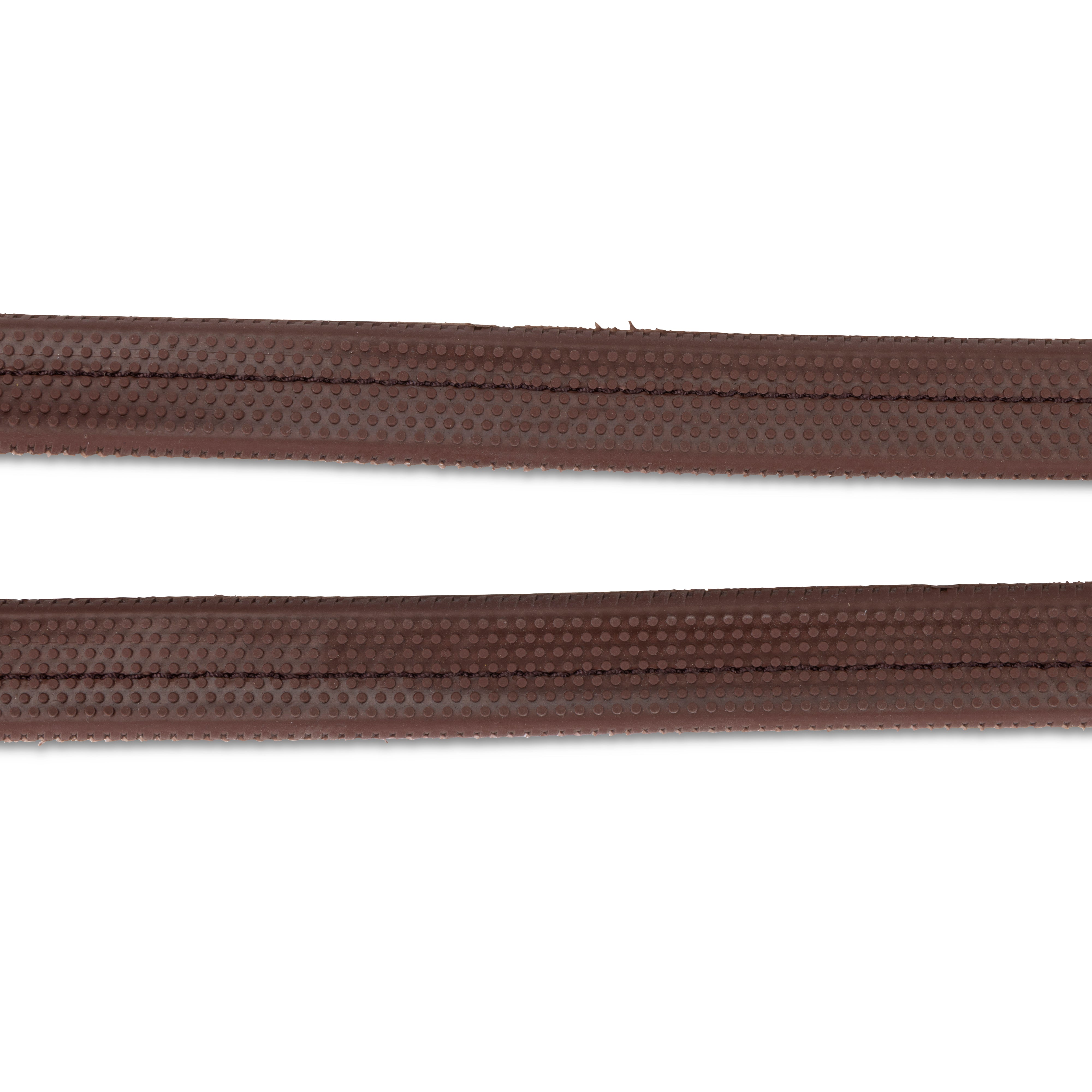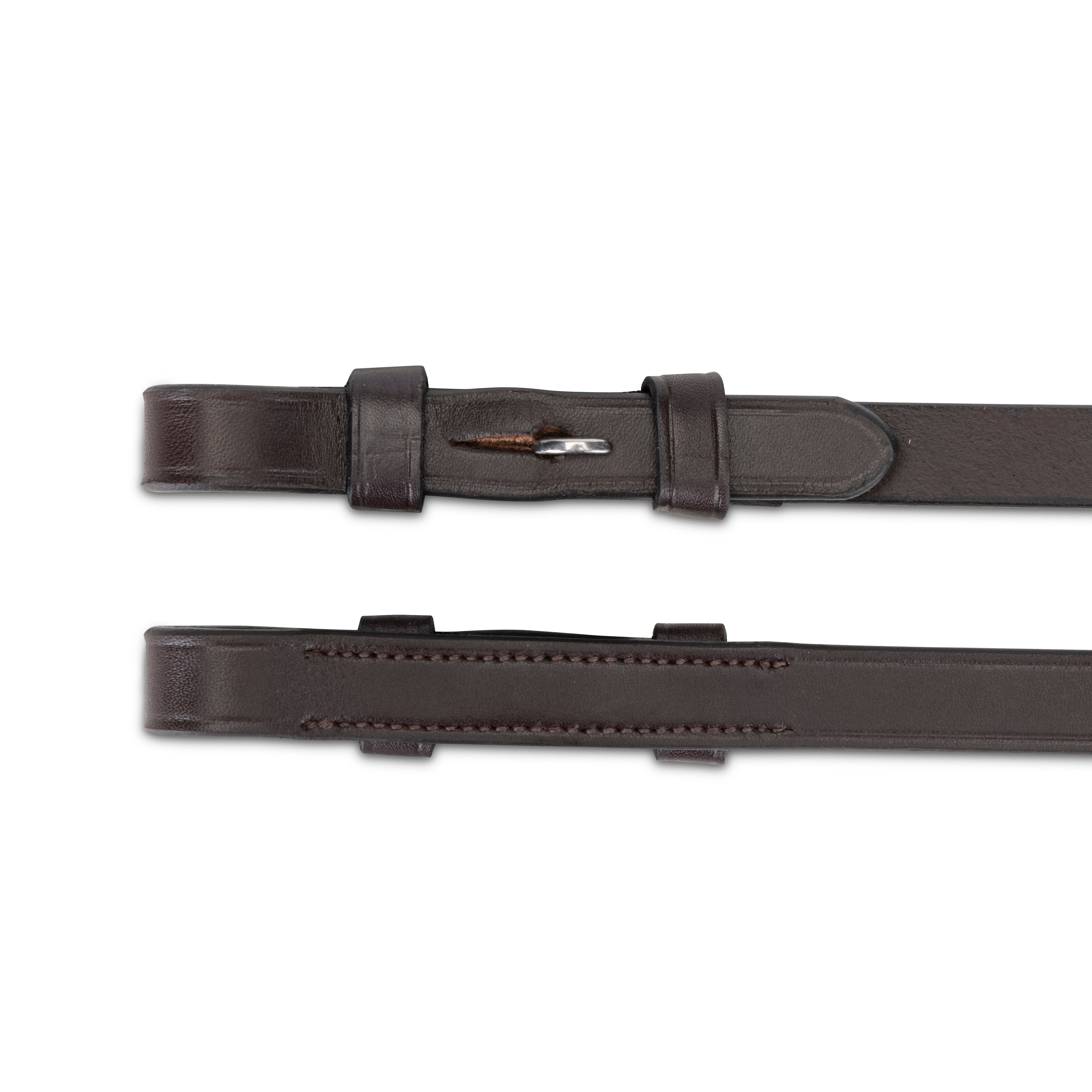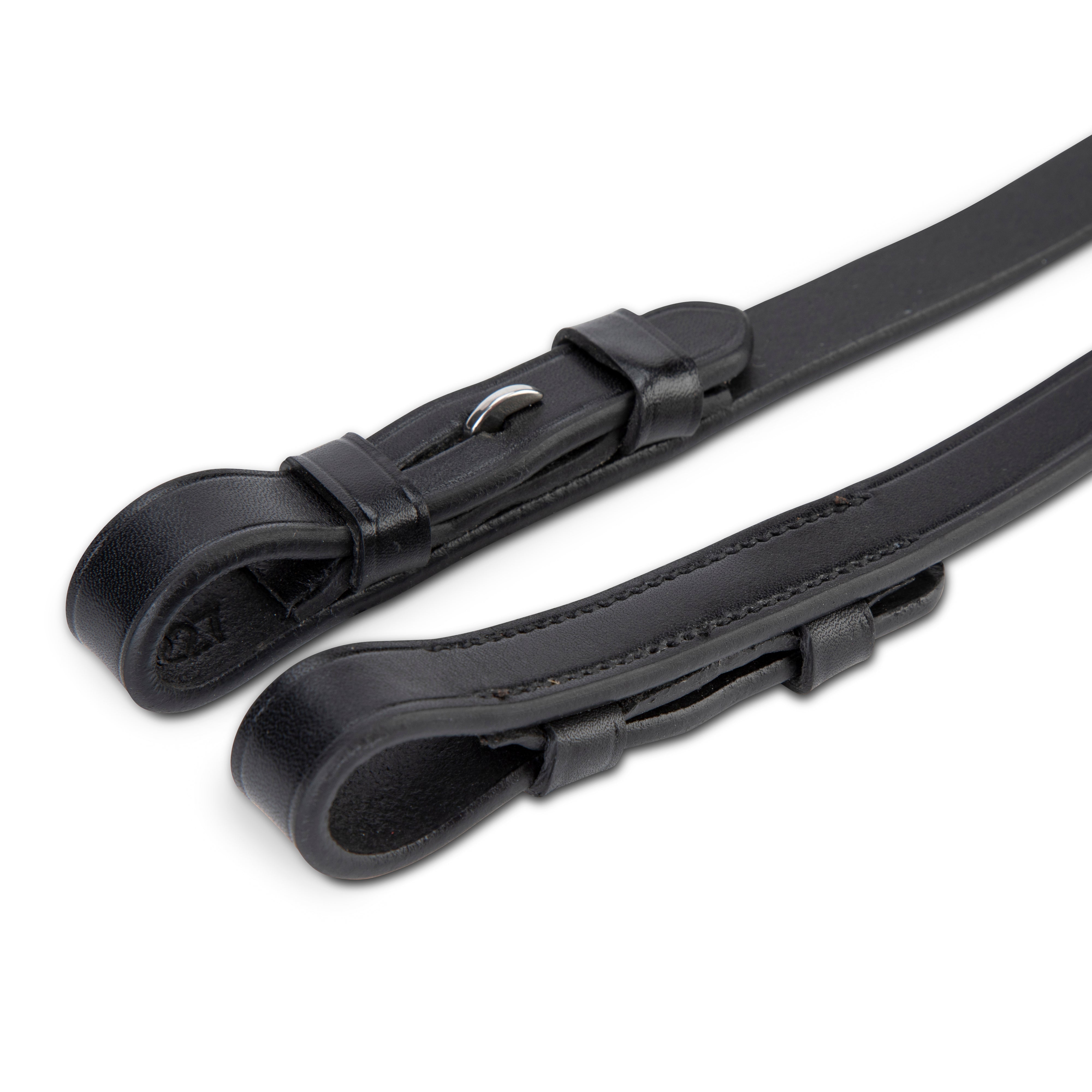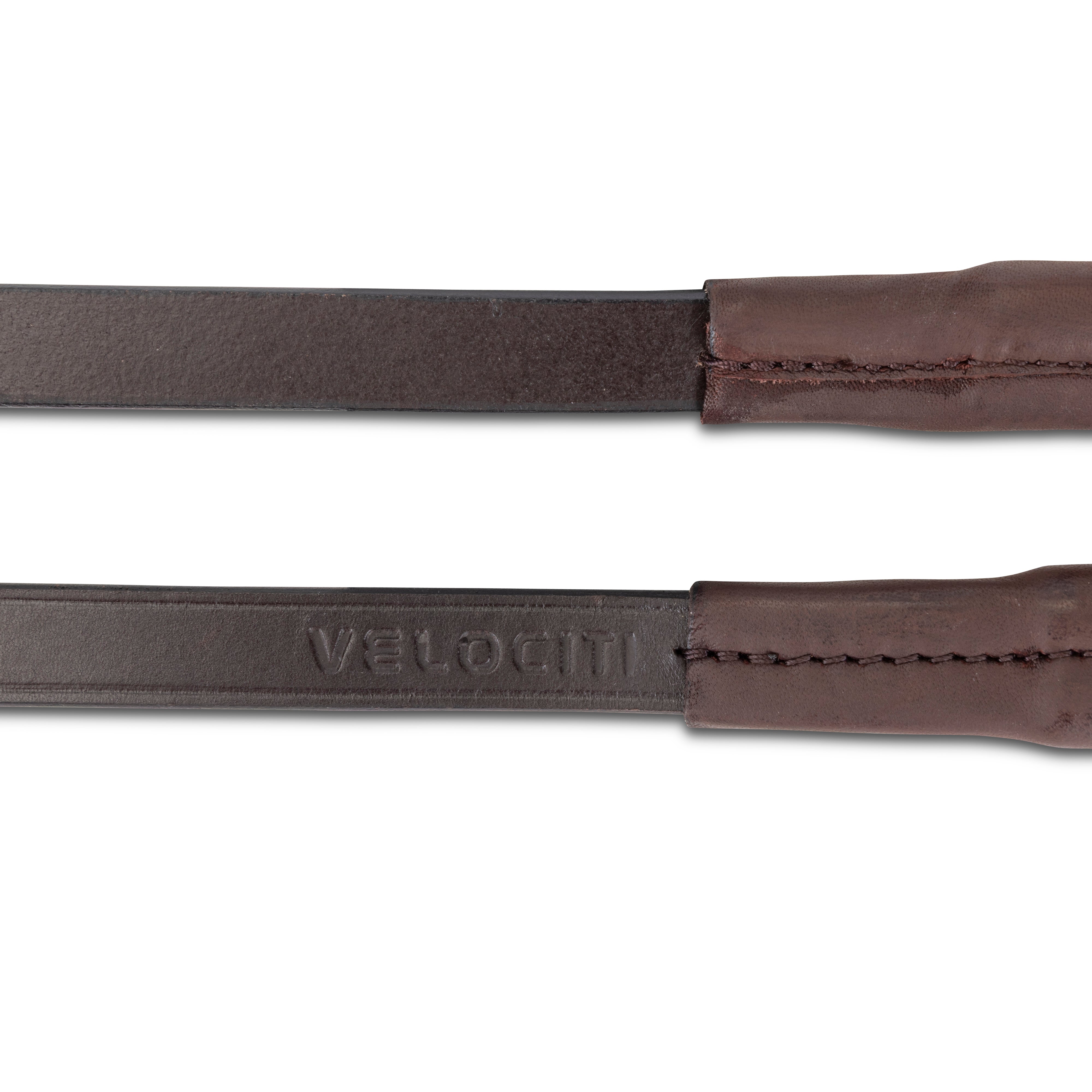 Velociti LUSSO reins feature textured rubber grips for anti-slip security. Non-stretch nylon web runs through the grips for strength and a flexible feel in the hand. Style detail: Strength enhanced at the double layer bit ends. Designed with sensitivity and precision engineered, Velociti's Pro Series Luxe LUSSO bridlework is the perfect partner for the next level equestrian. Leatherwork is carefully crafted in selected European leather for beautifully supple, reliable bridlework that features the latest design advancements and reassuring comfort for your horse. High shine stainless steel hardwear. Eco-friendly vegetable tanned polo leather, hand-stitched in self-colour thread. Punched Velociti stamp. Hook stud billets.