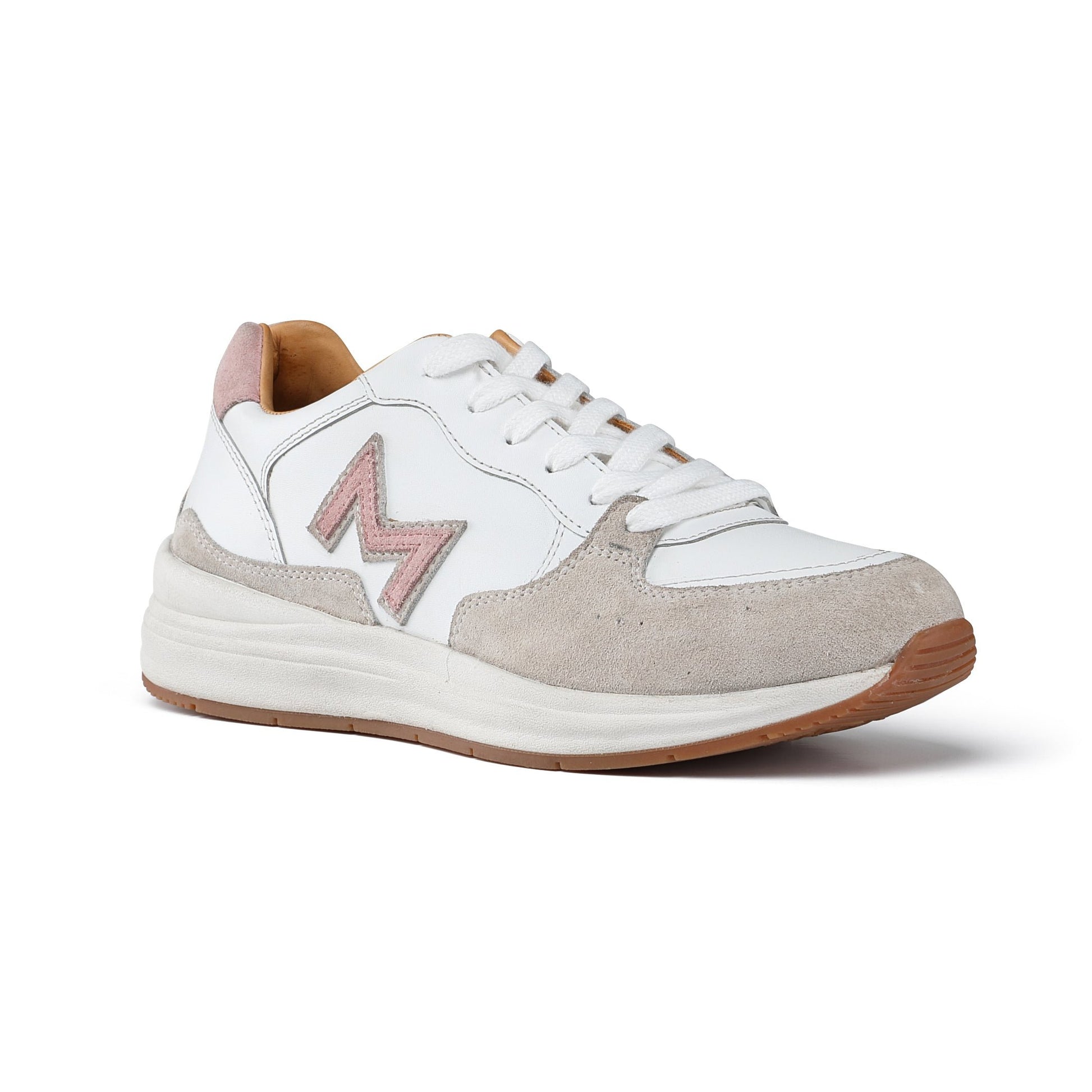 Sporty comfort with sleek styling, the Alegra trainers are versatile and comfortable. Crafted from genuine leather with full leather linings and insoles for enhanced comfort. Choose pristine all leather white or leather trimmed with pink and mushroom suede detail. Key features: Leather uppers. Italian suede trims. Full leather linings. Leather comfort insoles. Shock absorbing wedge soles. Moretta monogram stud.