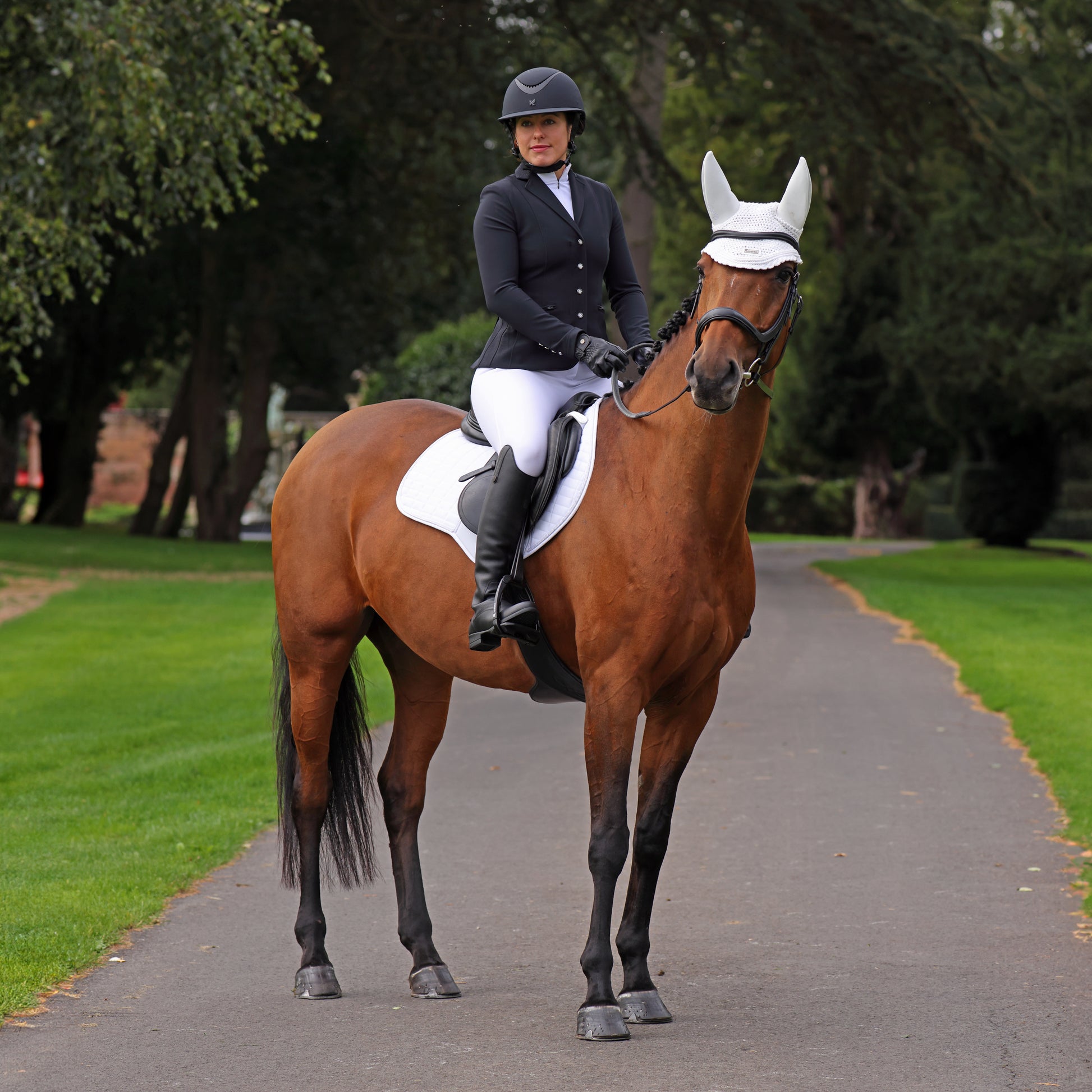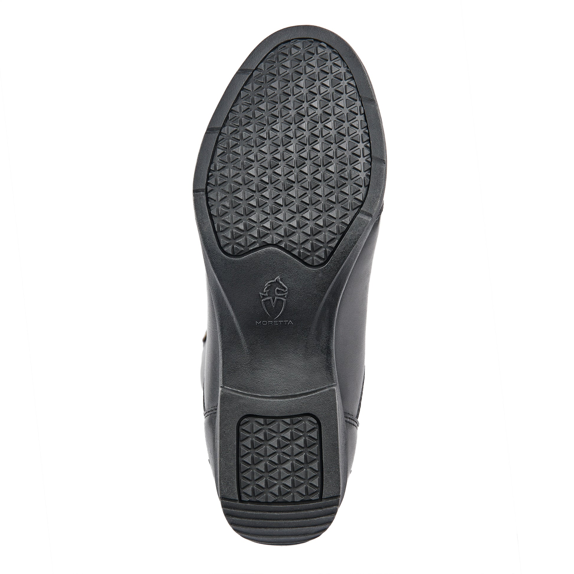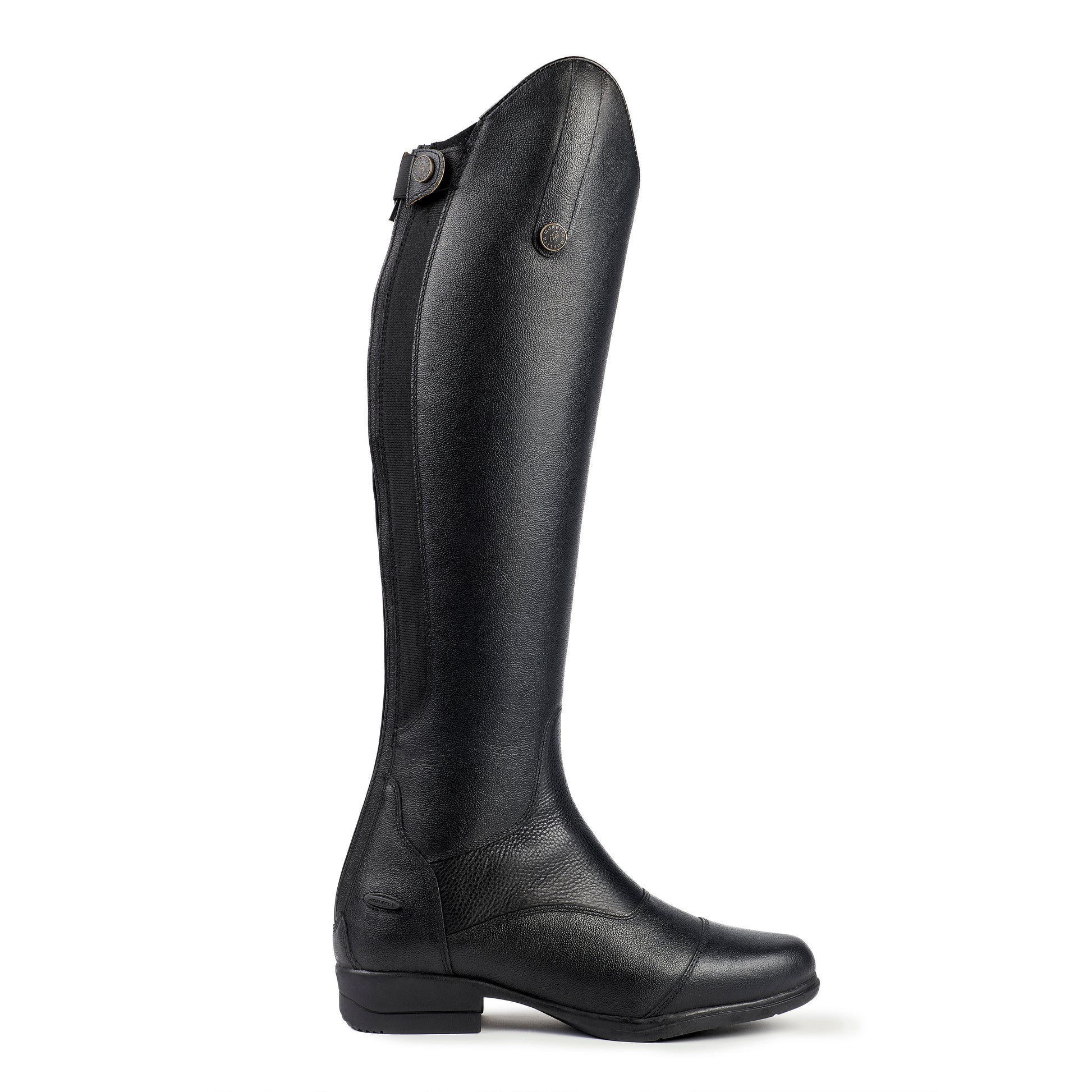 A classy milled leather outer panel is combined with a nubuck inner calf for elegant looks with enduring appeal. The Moretta Carla long riding boot design is based on the popular Albina boots but with a sleeker front section. Full length stretch inserts achieve a neat leg fit and legs are kept comfortable thanks to the moisture control fabric linings. Supportive insoles and shock absorbing soles ensure feet stay energised in the stirrup. Key features: Milled leather. WickAway stay dry lining. Soft piqued leather inner trim. Nubuck calf grip. Dressage cut top. UltraFit leg panel. YKK zips. Upper leather zip security tab. Non-slip spur rest. ActiveFlex insole with Impact Support System. Moretta shock absorbing rubber outsole. Steel shanks.