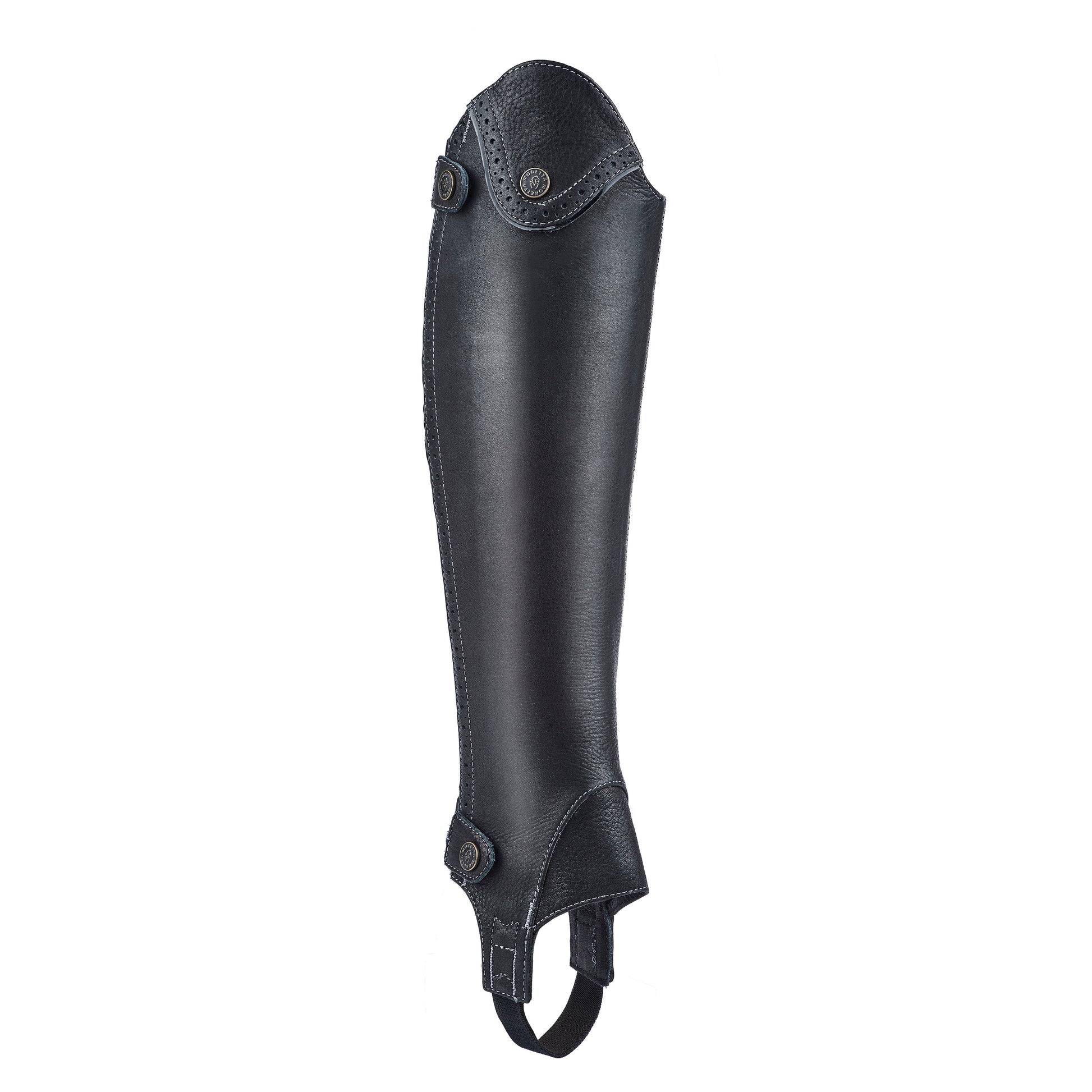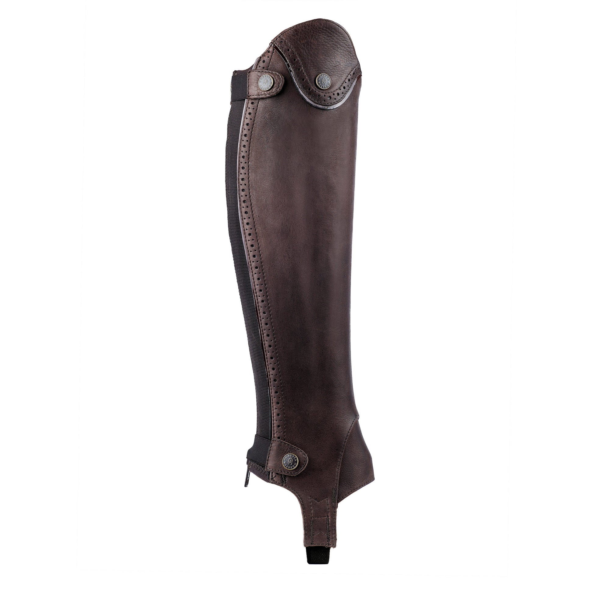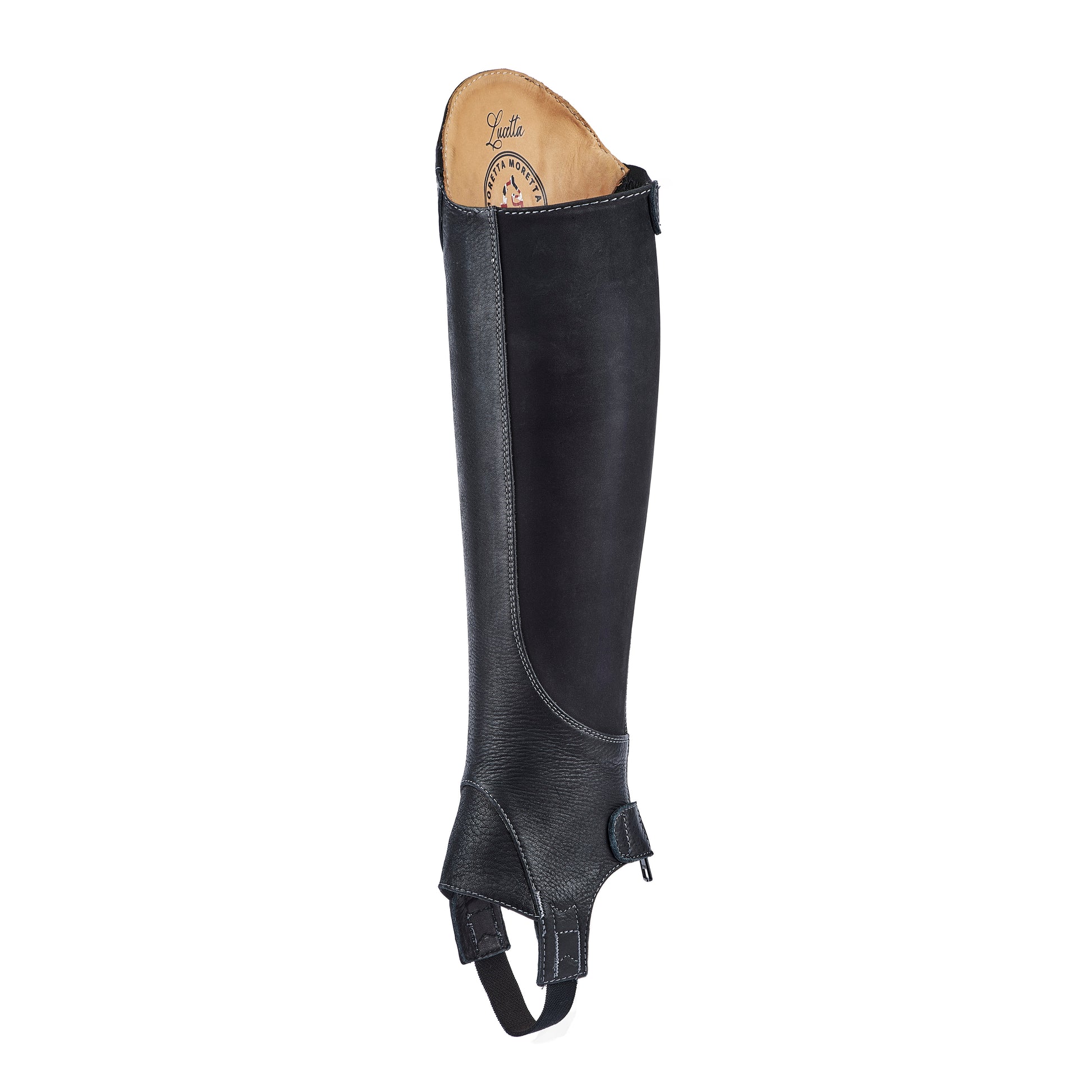 Fine quality Moretta Lucetta leather gaiters feature brogue and patent detail for style. Crafted from soft, full grain leather and unlined for a non-slip fit, stretch inserts ensure a refined fit. Key features: Dressage cut tops. Nubuck inner calves. UltraFit leg panels. Full length YKK zip. Elastic foot stirrup. Team with matching Moretta Martina paddock boots or any jodhpur boots.