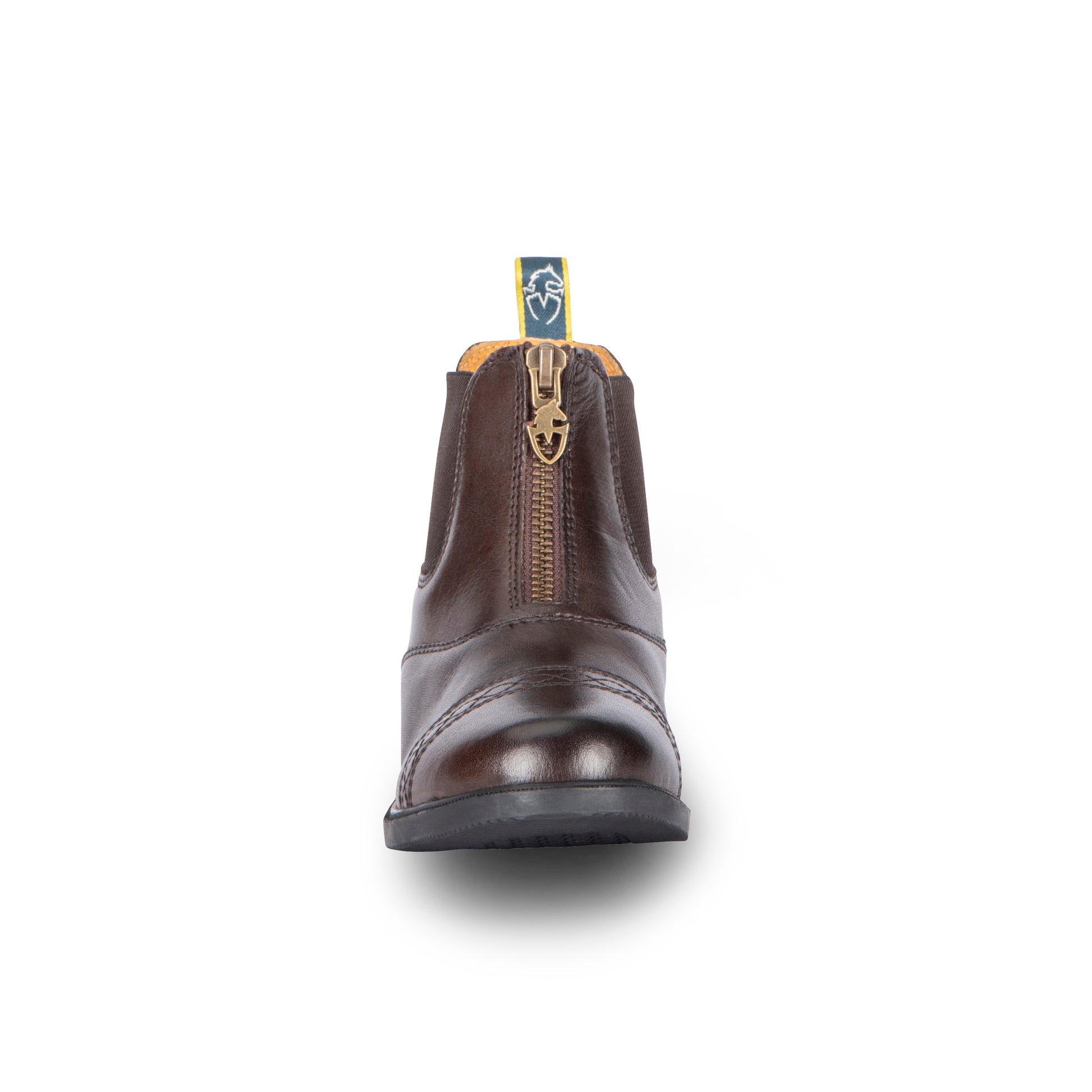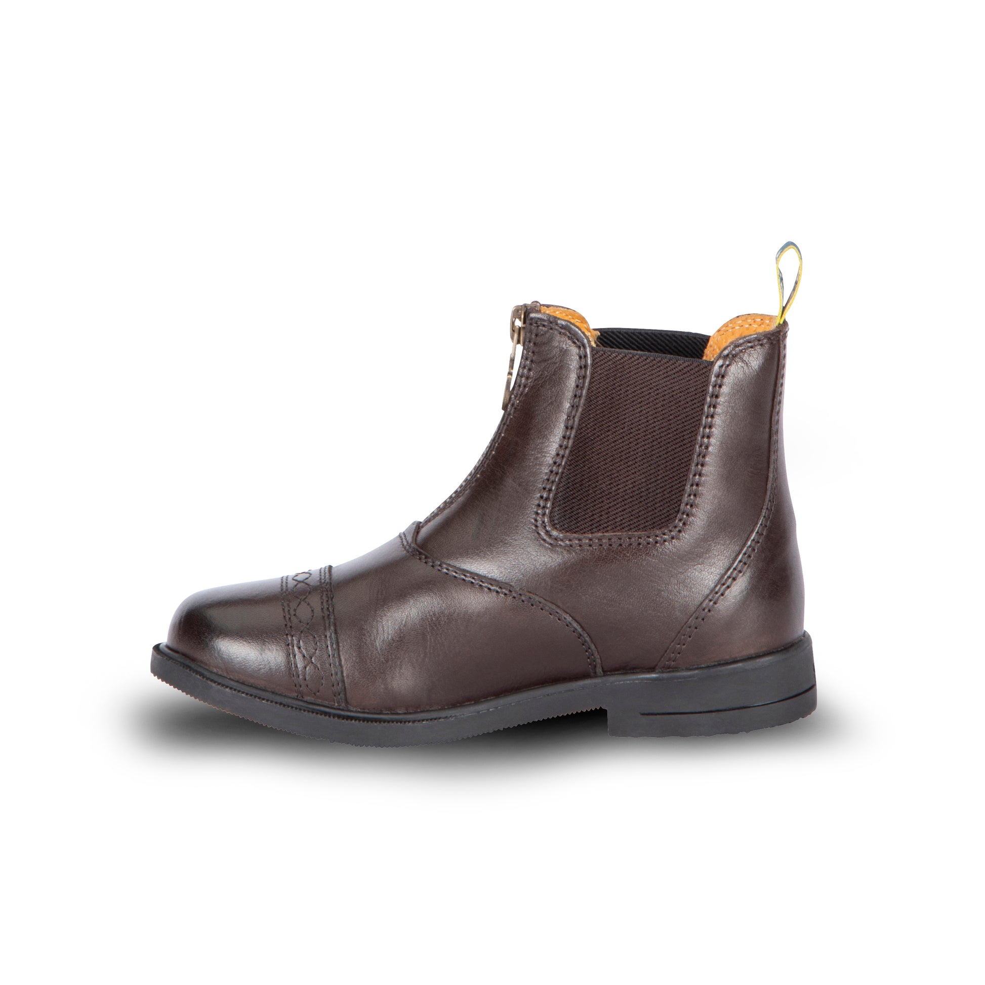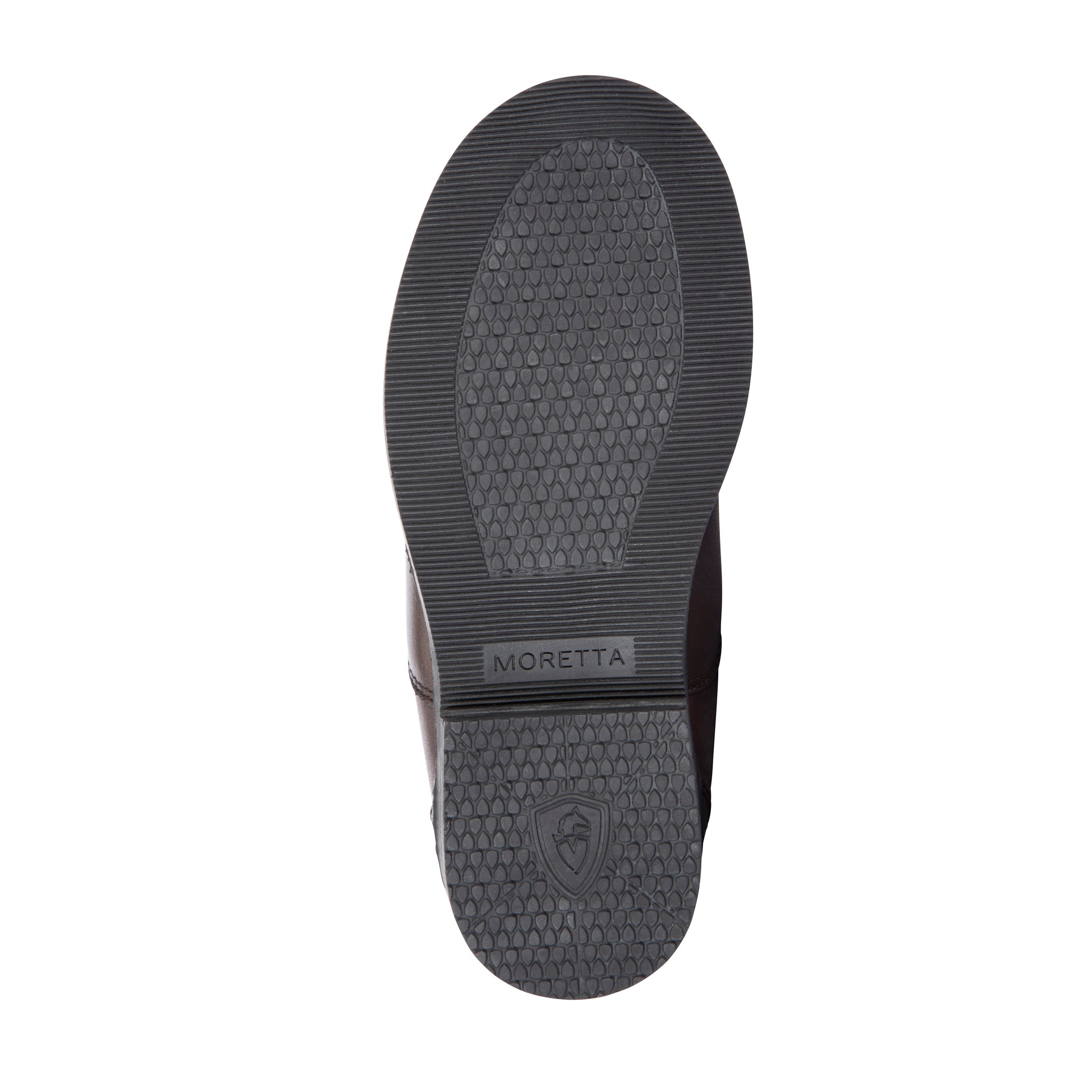 Smarten up for pony riding, Moretta Materia leather paddock boots are suitable for all riders, and offer a great balance between comfort and stability. The zip fronts are easy to fit, the boots have a rounded toe for plenty of space. Brogue stitching detail looks smart and the high shine polished finish resists water stains and a quick polish will restore any wear and tear. Key features: Full grain leather. WickAway stay dry lining. UltraFit ankle insert. Stabilising footbed. Moretta shock absorbing rubber outsole.