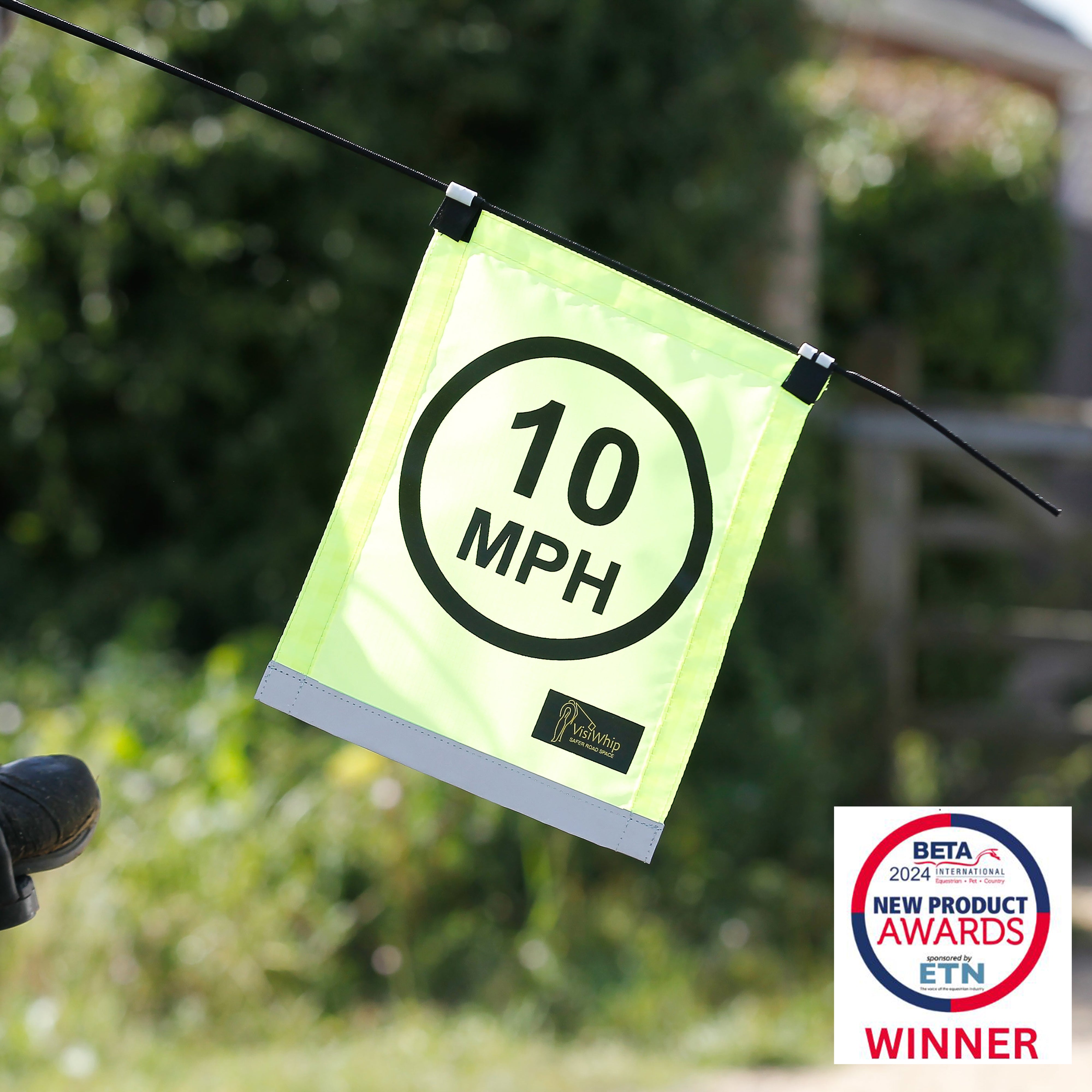 The award winning VisiWhip flag increases road user’s awareness of horse and rider. The high-quality flag attaches easily to most whips, to hang down at driver eye level, allowing drivers to see horse and rider sooner and encouraging them to pass wide and slow. The bright eye-catching colours, reflective material, and the motion created by the horse’s movement maximises visibility. The flag is easily removable so you can store it whilst using the whip for schooling or roll it up when off the road. The VisiWhip flag can also be used in groundwork e.g. for natural horsemanship and horse desensitisation. Durable, lightweight ripstop material ensures it won’t tear or fray. VisiWhip won the BETA Product of the Year Safety Award in 2024. Judges commented: ‘Innovative product for road safety and horse training. Good price point.’